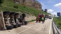 El camión hormigonera que conducía se ha salido de la calzada por la que transitaba y volcaba posteriormente ha volcado.