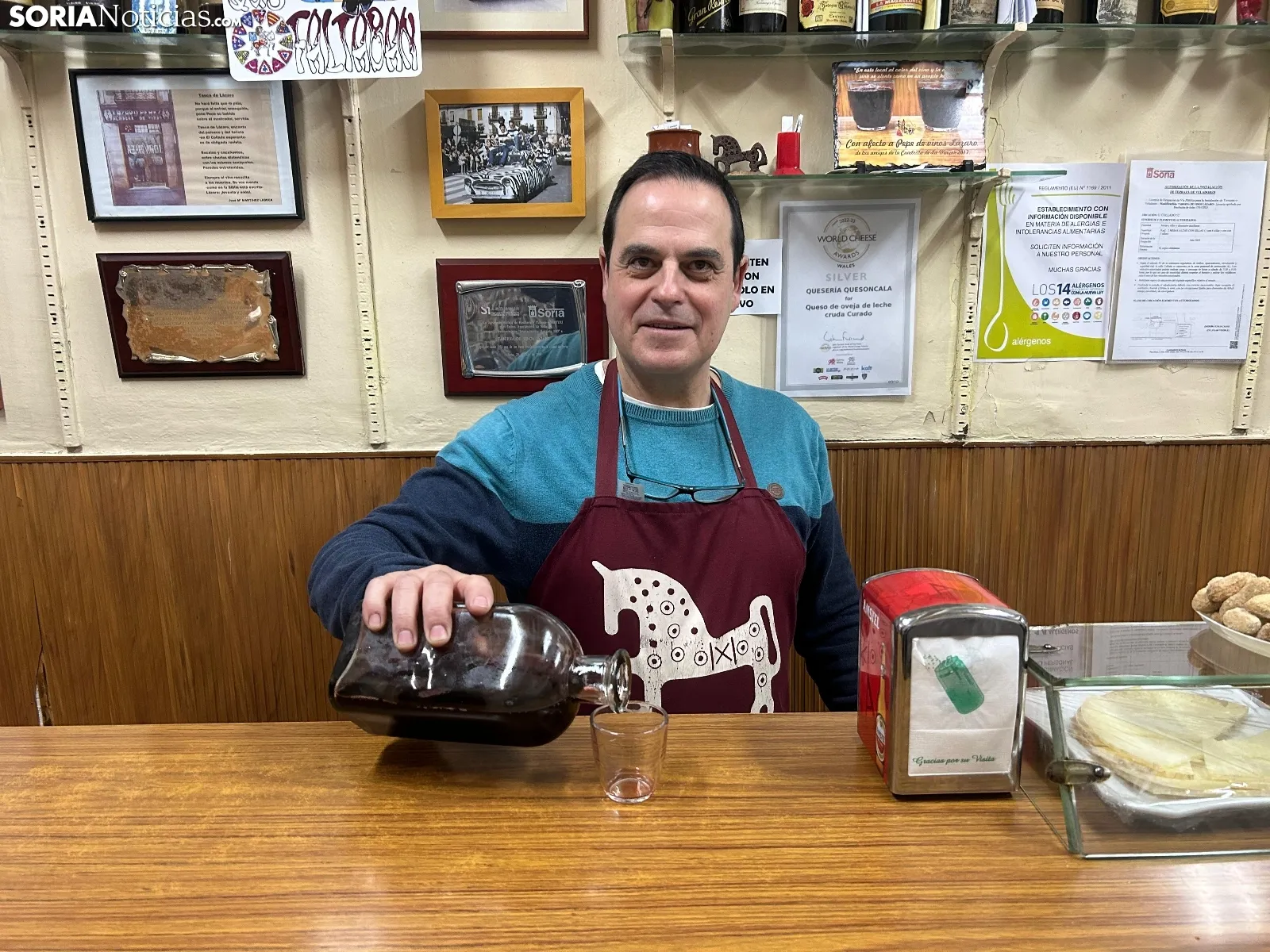 Semana Santa también es sinónimo de gastronomía en Soria. Uno de los productos típicos de estas fechas en la provincia es sin duda la limonada. En Vinos Lázaro, mítico establecimiento de El Collado, llevan haciendo esta elaboración desde hace décadas. “He heredado la tradición de mi abuelo, Lázaro, de mis tíos y de mis padres”, explica ‘Pepito’ Pérez el actual regente del bar.