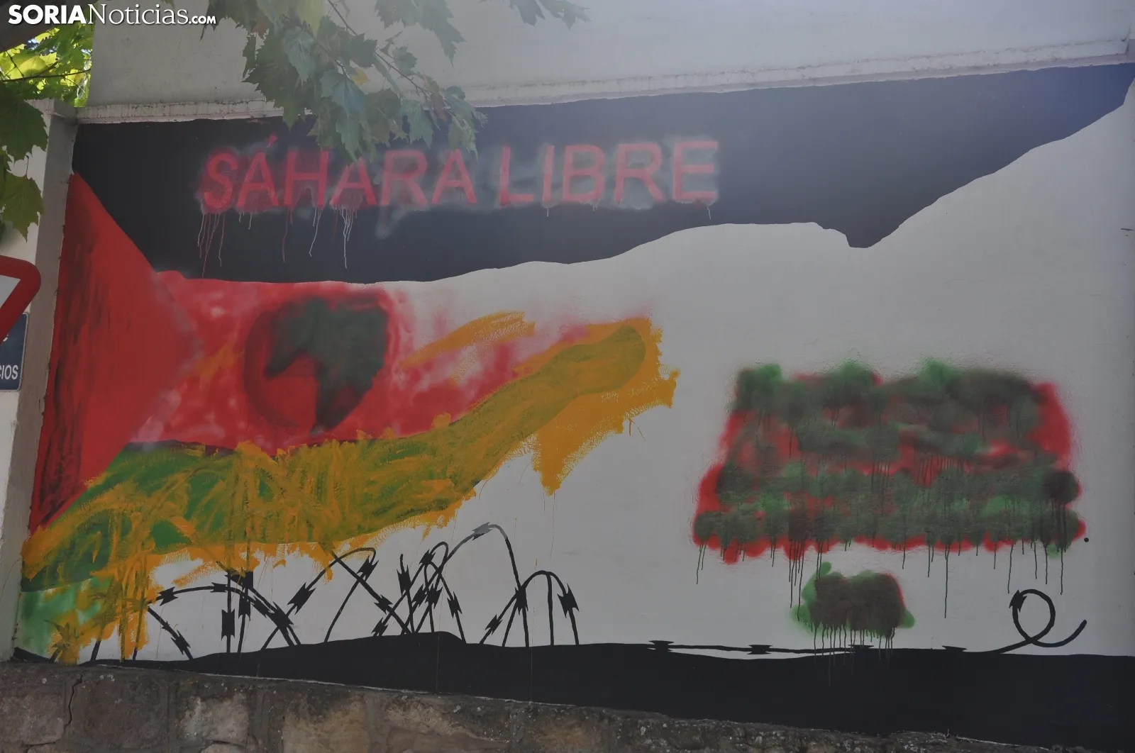 El mural 'Sáhara Libre' que adornaba el Polideportivo San Andrés de la capital a la altura del Alto de la Dehesa ha sido vandalizado. En él, además de su consigna principal, se podía leer "el pueblo saharaui lleva 43 años de opresión y repersión esperando en el desierto".