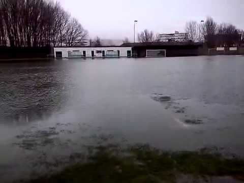 La totalidad del campo estaba cubierta por una balsa de agua, provocando la suspensión de los partidos que debían disputarse este pasado fin de semana.