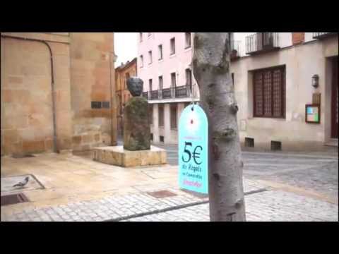 La ciudad ha despertado hoy con cientos etiquetas colgando de los diversos elementos del mobiliario urbano como marquesinas de autobús, vallas, farolas, árboles? Se trata de etiquetas similares a las que se utilizan normalmente para indicar el precio en las prendas textiles pero que, en este caso, tienen un tamaño bastante superior y la cifra que indican, cinco euros, lejos de ser un precio parece ser un regalo.