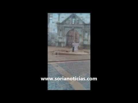 La imagen que presentaba esta tarde la localidad soriana de Santa María de Huerta es la de un municipio inundado, debido a las fuertes lluvias que desde la pasada noche han estado cayendo.