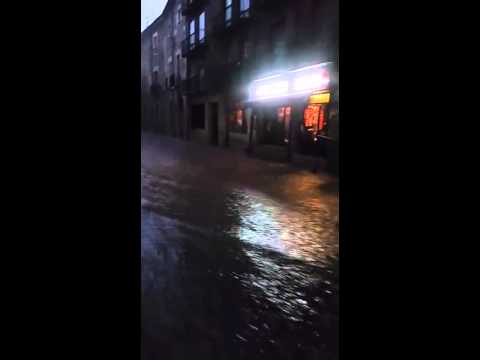 El agua ha caído con tal fuerza y abundancia que algunas calles, como la Mayor, tal y como se aprecia en el vídeo, se ha visto anegada, entrando el agua en algunos establecimientos que se encontraban abiertos a esas horas.