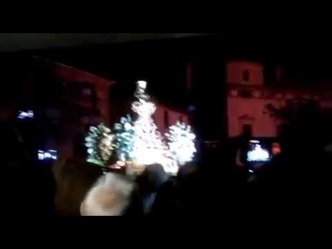 Una fuerte traca volvió a inundar la noche de Almazán, al paso de la imagen del Nazareno por la plaza Mayor. El público de forma intensa tras la finalización del estruendo y los fuegos artificiales.