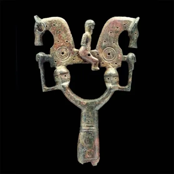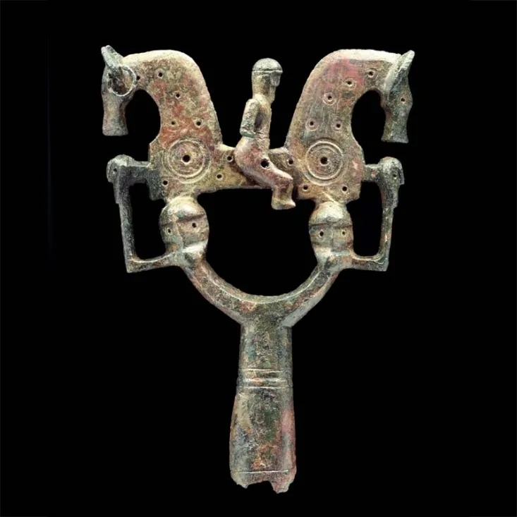 Una placa con grabados de caballos y cabras de Barranco Hondo (Villalba, Soria), la vasija de los caballos (Ciadueña), un báculo de bronce de la necrópolis celtibérica de Numancia y un pectoral celtibero de Carratiermes se suman a piezas de otros 70 museos, instituciones y colecciones