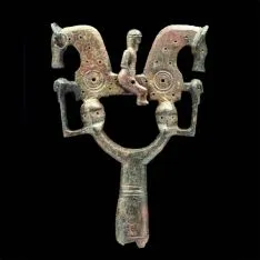 Pectoral celtibero de Carratiermes (Soria) / S. VI-V a. C. / Pectoral de bronce con decoración incisa y colgantes cónicos. Altura 16,3 cm (aguja plegada detrás de la placa: 8 cm); anchura 11,2 cm; grosor 0,7 cm.