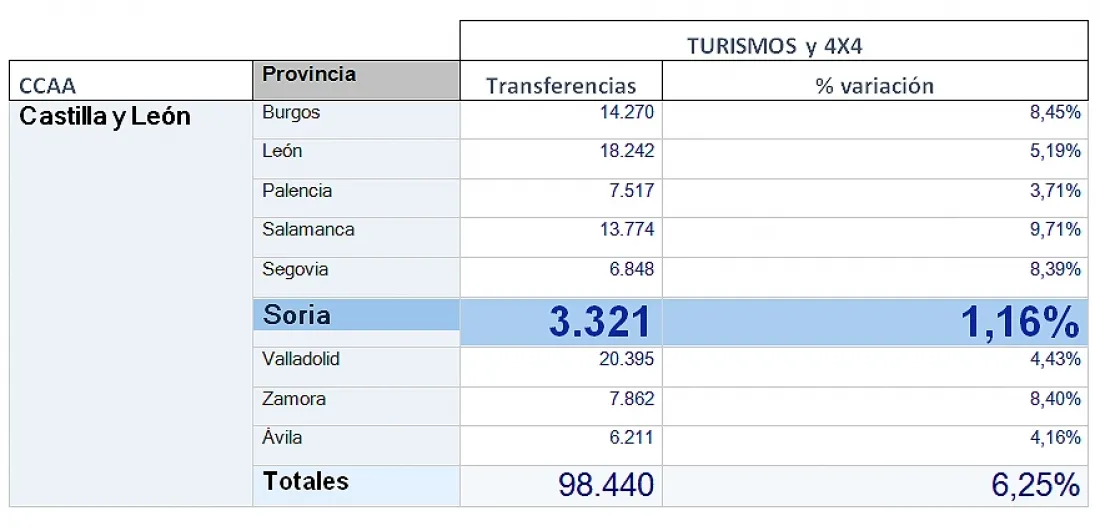 Las transferencias de turismos y todoterrenos usados crecieron un 1,16% en la provincia de Soria, mientras que la subida media fue del 6,2% en 2017 en Castilla y León, con respecto a las cifras obtenidas en 2016, hasta situarse en las 3.321 unidades en la provincia frente al total de 98.440 vehículos en la región, según datos de la consultora MSI para la patronal de los concesionarios Faconauto.