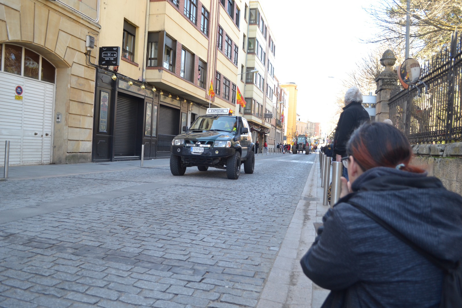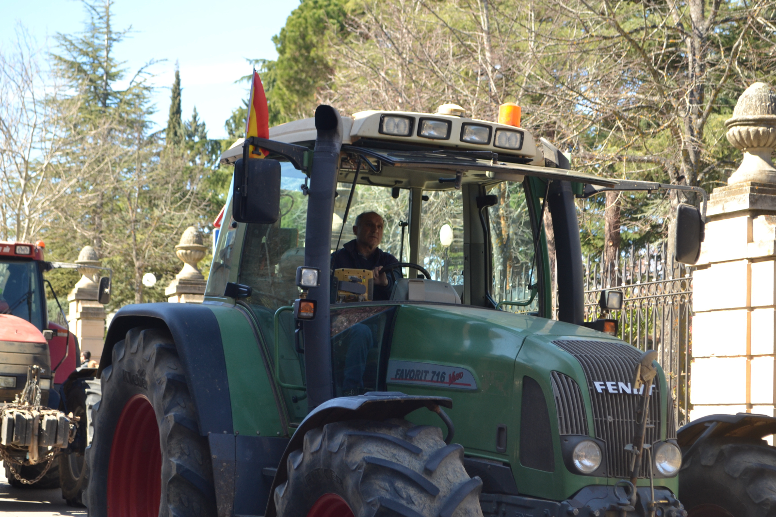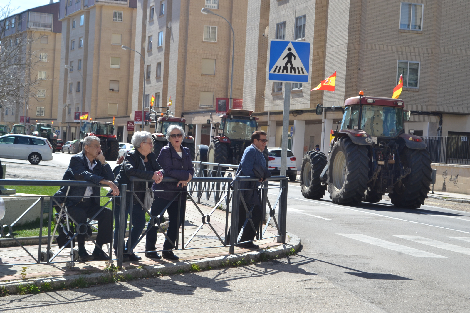 En perfecto orden, la comitiva ha llegado hasta las inmediaciones de la sedes de Subdelegación y Junta haciendo sonar sus bocinas y enarbolando banderas de España, en las que con un lazo verde, también se incluía la defensa del campo soriano.