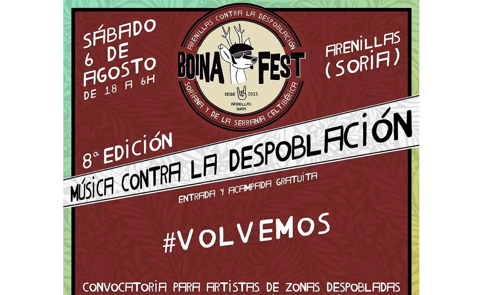 A partir de hoy, y hasta el 27 de mayo, se encuentra abierto el plazo de inscripción en boinafest.es/tocar. Podrán cursar su participación todos aquellos artistas residentes o con orígenes en los municipios situados en la Serranía Celtibérica. Dicho territorio recorre zonas de Soria, Teruel, Guadalajara, Cuenca, Segovia, Burgos, La Rioja, Castellón, Valencia y Zaragoza, y, aún duplicando el tamaño de Bélgica, en él, apenas viven menos de 500.000 habitantes, en un áreca cuya densidad de población es menor a los 8 habitantes por kilómetro cuadrado.