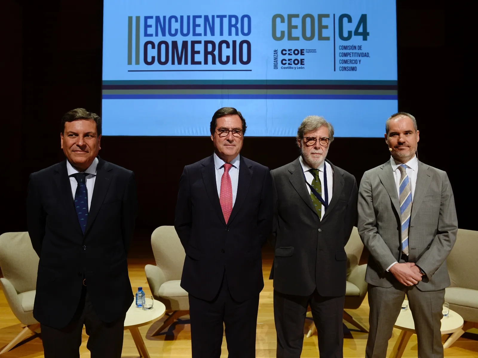 Representantes de las principales organizaciones y empresas del comercio a nivel nacional analizan su situación y los retos de futuro en el II Encuentro Comercio C4- CEOE. En la inauguración de la jornada han participado Carlos Fernández Carriedo, consejero de Economía y Hacienda de la Junta de Castilla y León; Antonio Garamendi, presidente de CEOE; Santiago Aparicio, presidente de CEOE Castilla y León; y Ricard Cabedo, presidente de la Comisión de Competitividad, Comercio y Consumo - C4 de CEOE.