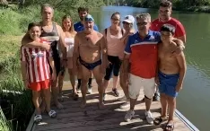 El primer segmento de natación, con unos 300 metros de recorrido, lo realizaron García y su amigo y familiar Félix Rubio, soriano afincado en Tenerife. Las aguas del Duero a la altura del peñón, más cálidas que en otras ocasiones dado el caluroso verano de este año, fueron el escenario de estos primeros y refrescantes metros.