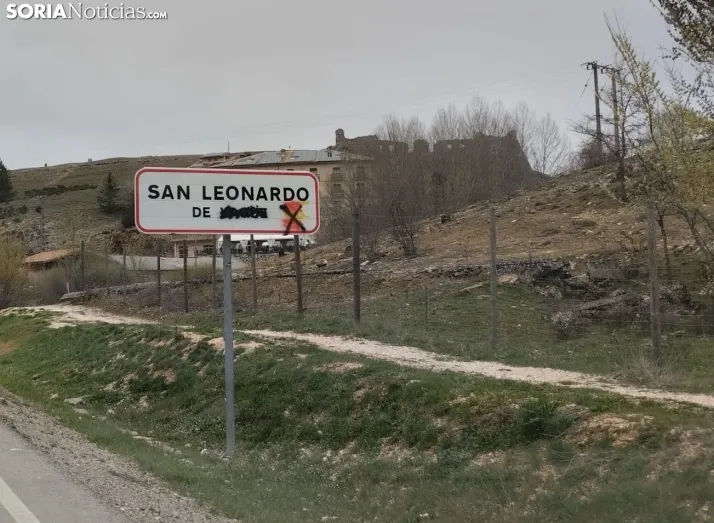Unas pintadas afectan desde hace días a varios de los carteles más significativos de San Leonardo de Yagüe, los que dan la bienvenida y despiden a los que visitan la localidad. Todo apunta a que alguien ha decidido tomarse la justicia por su mano y cumplir, de una forma nada ortodoxa, con la Ley de Memoria Democrática suprimiendo el apellido que hace referencia al general franquista Juan Yagüe, conocido como el 'Carnicero de Badajoz'.