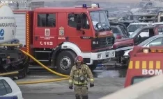 El 1-1-2 recibía el aviso poco antes de las dos y media de la tarde de este jueves un siniestro en el que el fuego ha afectado a centenares de vehículos.