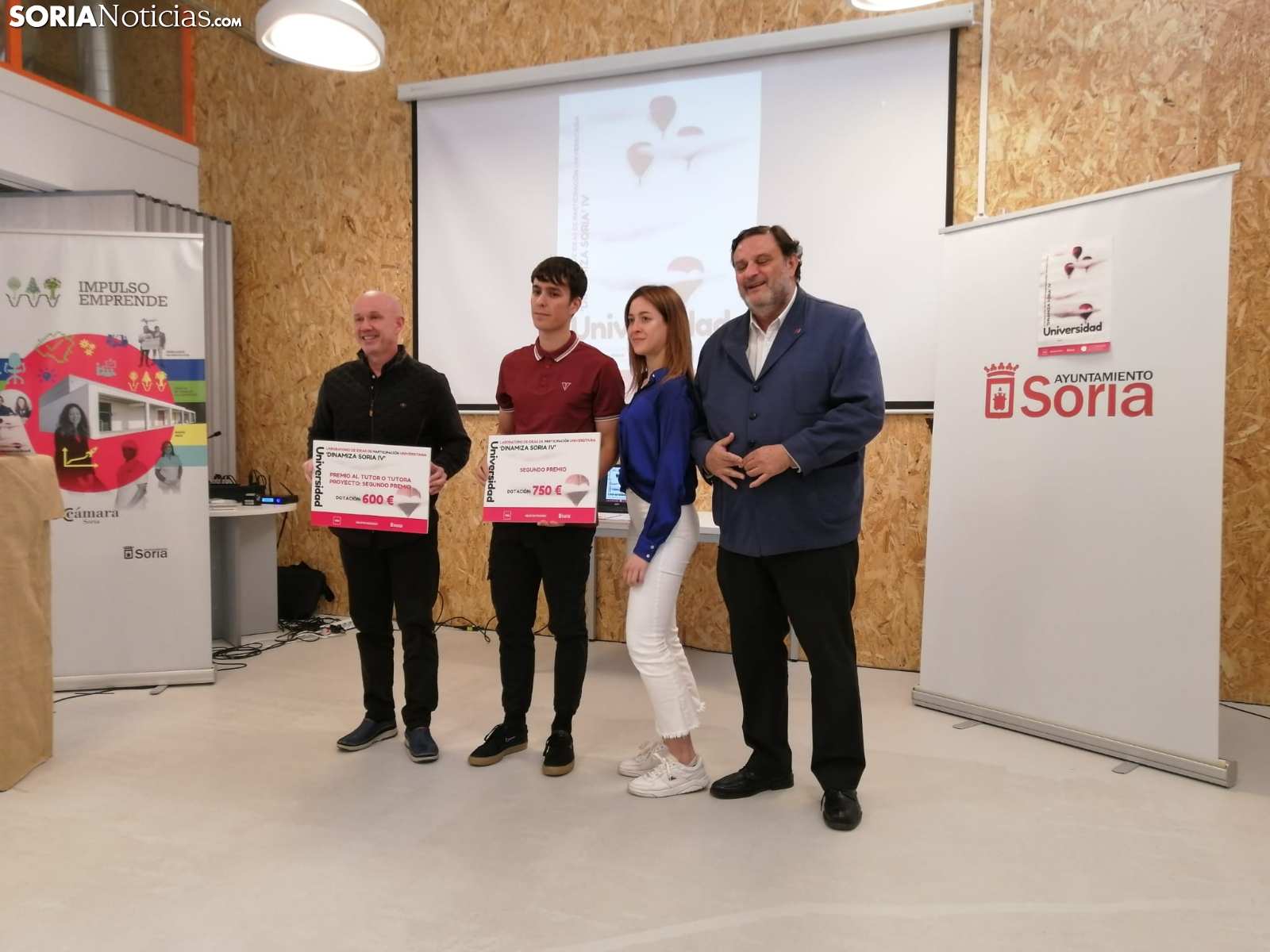 El proyecto ‘Centro de investigación y formación’ ha sido el ganador de la IV edición de los Premios del Programa Dinamiza Soria, el cual consiste en la creación de una empresa de análisis clínico en la que tiene como objetivo implementar grados superiores de formación con el fin de otorgar desarrollo e innovación a la ciudad. Ha sido creado por los estudiantes Yolanda Simancas y Gabriel Vela de la facultad de Ciencias de la Salud Fisioterapia y quiénes han sido galardonados con 1.500€. La idea la elaboraron debido a que ambos proceden de provincias españolas que sufren, al igual que Soria, la despoblación y con la motivación de aportar su granito de arena en áreas tan importantes como la salud o la educación. Por su parte, su tutora, Claudia Ollauri ha recibido 1.000€.