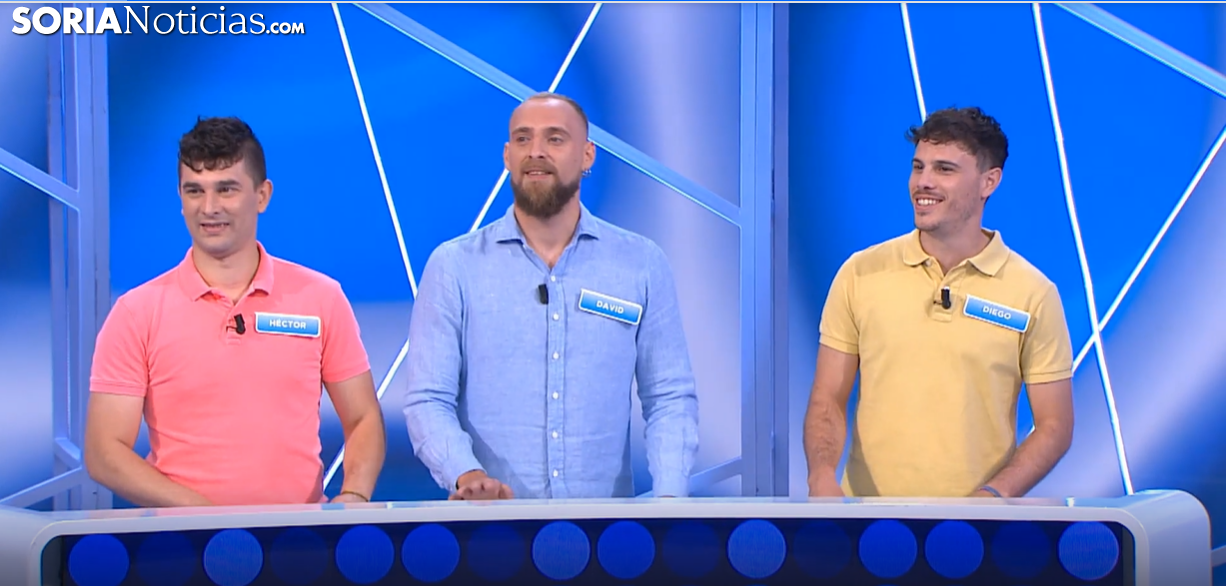 Acertaba Diego y daban pista Héctor y David. Comenzaban con mal pie al responder el diminutivo “muñequita” a lo que era “muñeca”. La siguiente tampoco fue bien. La palabra era “mudanza” y contestó “mudancero”. Ante esto Ion le dijo a Diego, “estás adornando mucho las palabras. Pero, no pasa nada porque hay que seguir intentándolo ya que en este momento no se resta”. A partir de ahí la cosa tomó mejor rumbo con cinco aciertos seguidos. Hubo un fallo pero volvieron a encaminarse. Lo sorprendente fue la última palabra cuando tan solo tenían dos segundos para adivinar “aspas”. Gracias a la destreza de sus compañeros, haciendo referencia a un amigo suyo, lograron sumar un tanto más dejando un marcador de 7 aciertos y dejándose complicado a los ‘Mozos de Arousa’, quiénes tenían que hacer 8 aciertos. Sin embargo, salió a relucir la experiencia de sus rivales, quiénes deslumbraron con 11 tantos, lo que hizo imposible que los sorianos pasaron a la ronda final.