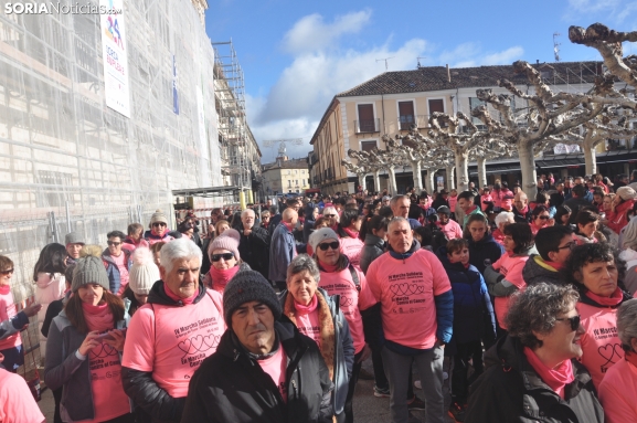 La Villa Episcopal ha celebrado esta mañana su IV Marcha Solidaria contra el Cáncer. A pesar del frío, entorno a 800 personas se han dado cita para participar en esta causa solidaria y reivindicativa y convertirse en una marea rosa que ha inundado las calles de El Burgo. Después de guardar un minuto de silencio por los fallecidos a causa de esta enfermedad, la marcha ha partido de la plaza Mayor a las 11:00 horas y ha regresado al mismo punto tras pasar por la Catedral y algunos de los grandes monumentos de la localidad. Esta mañana en la Villa han estado presentes representantes de la AECC, el Consistorio burgense, la Diputacion de Soria y la Junta de Castilla y León.