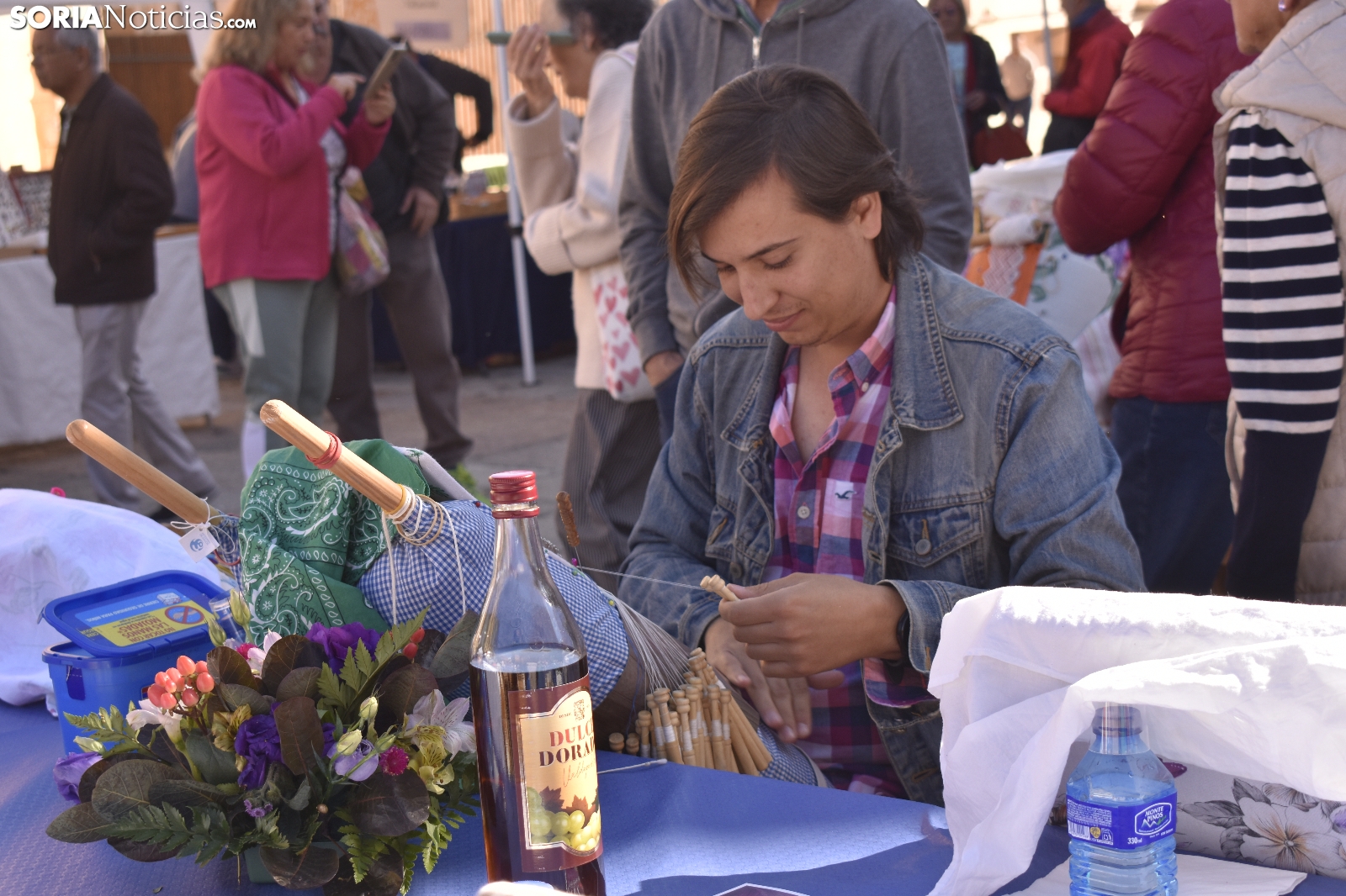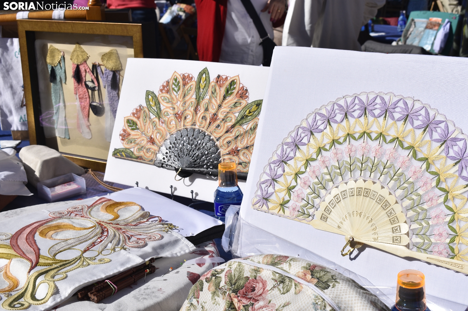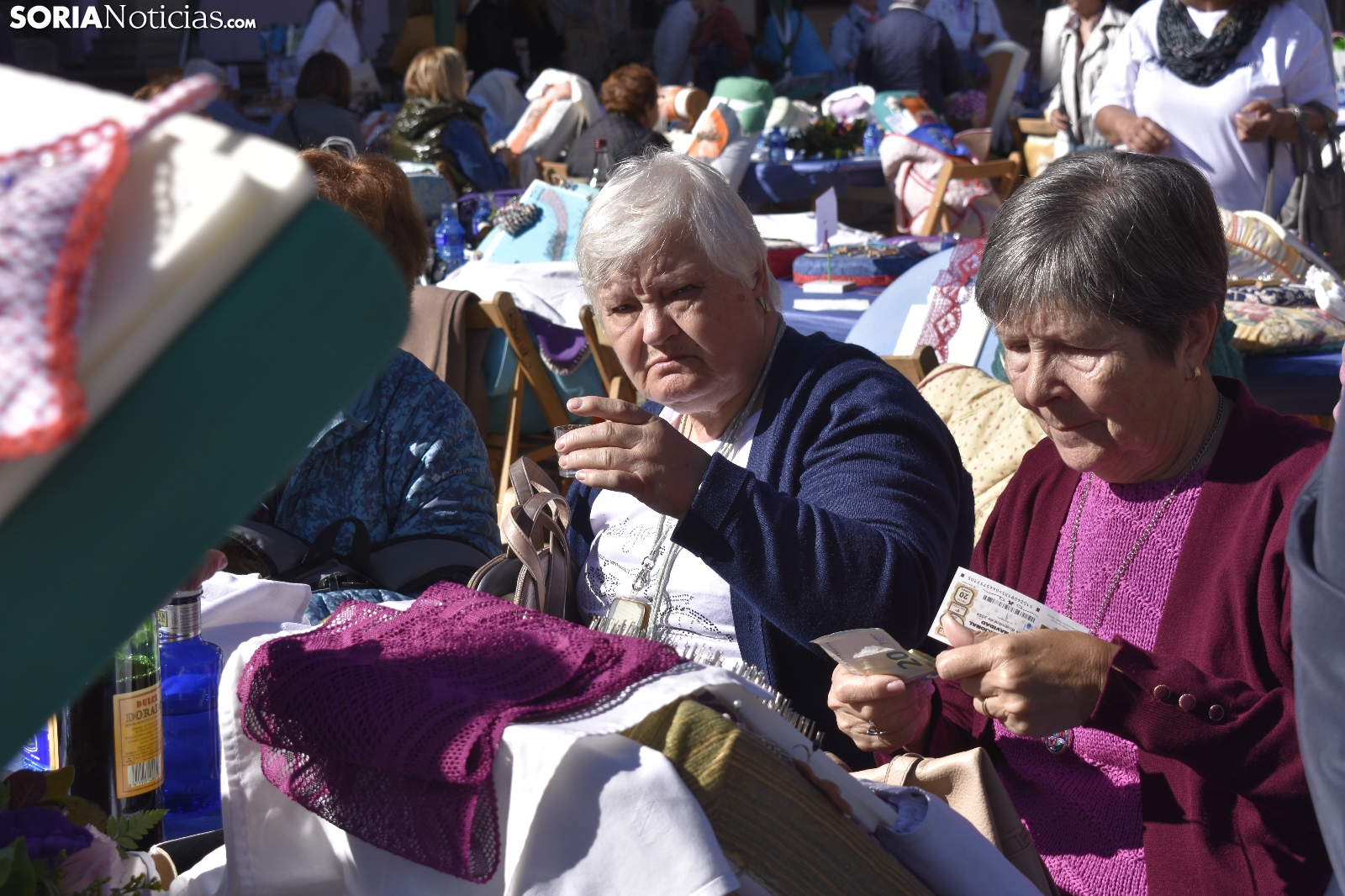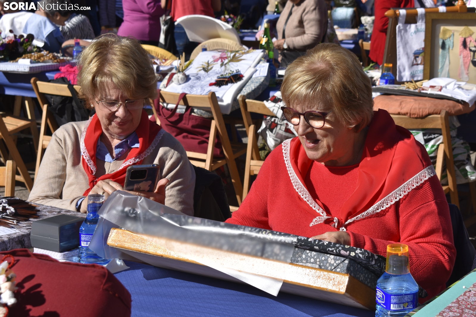 Los bolillos y la plaza Mayor de Soria encajan perfectamente. Se entienden. Gracias a las manos más que habilidosas de decenas de encajeras, se han trenzado a la perfección durante la jornada soleada de este domingo, 29 de septiembre. En el XVI Encuentro de Encajeras de Bolillos, organizado por la Asociación Cultural Encajeras Leonor de Soria, se constituyen auténticas “obras de arte”. No obstante, lo más importante del día es la convivencia porque, según nos cuentan algunas participantes, aquí se viene a "hablar y a compartir".