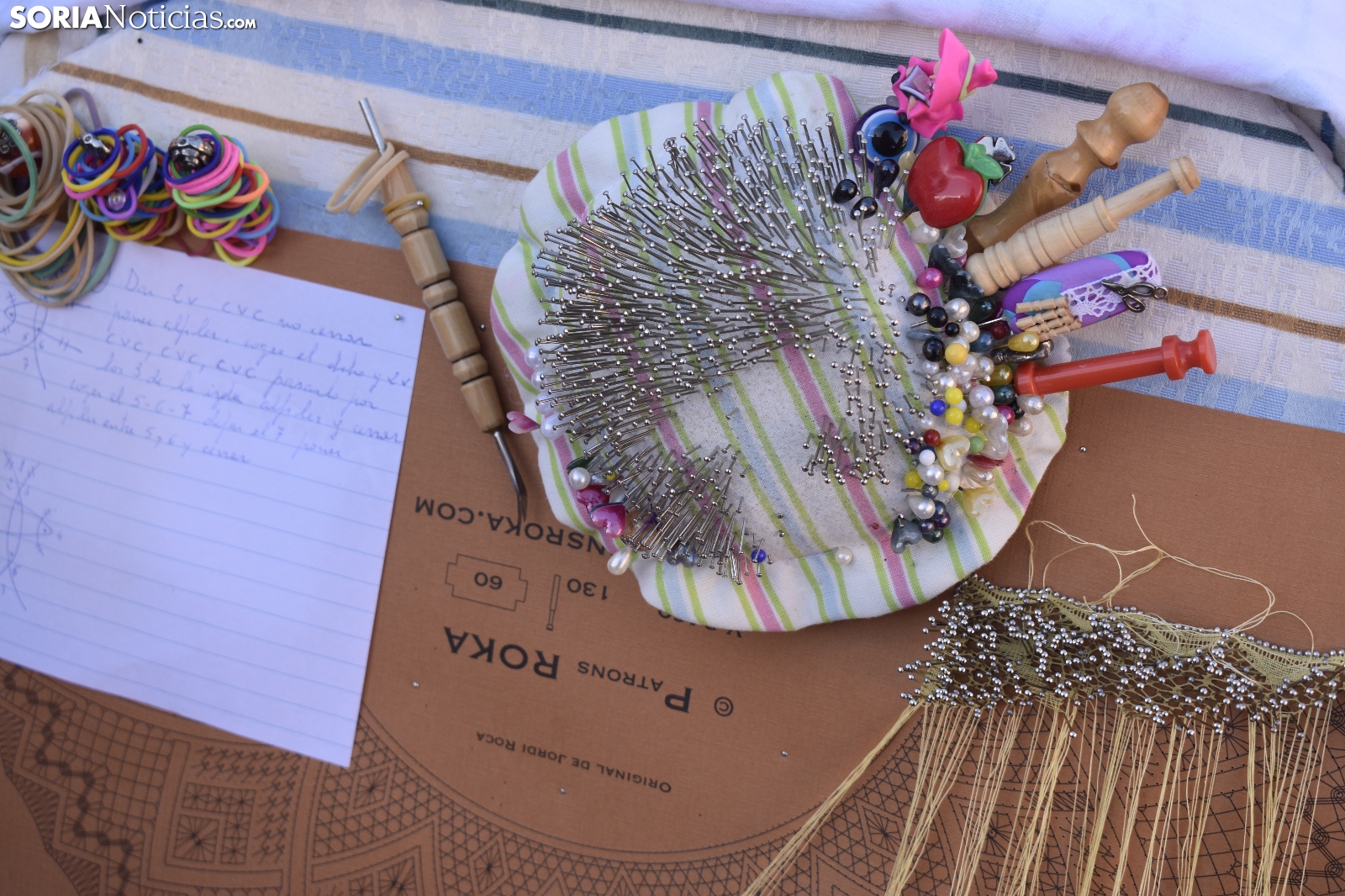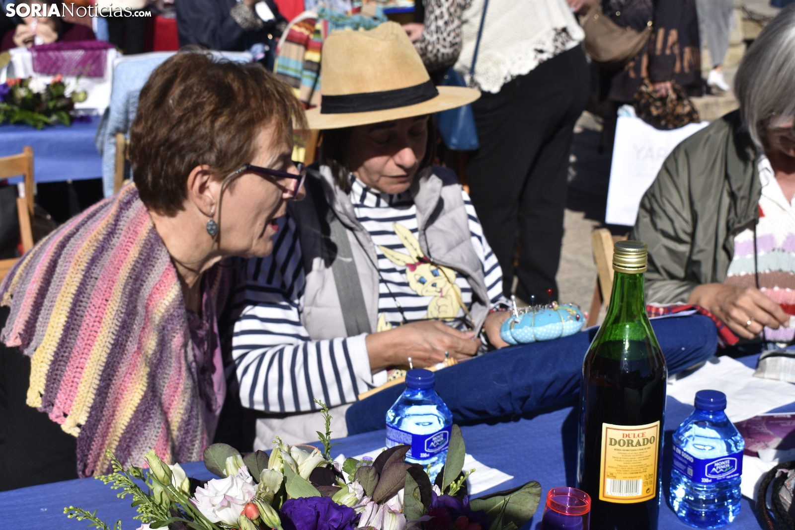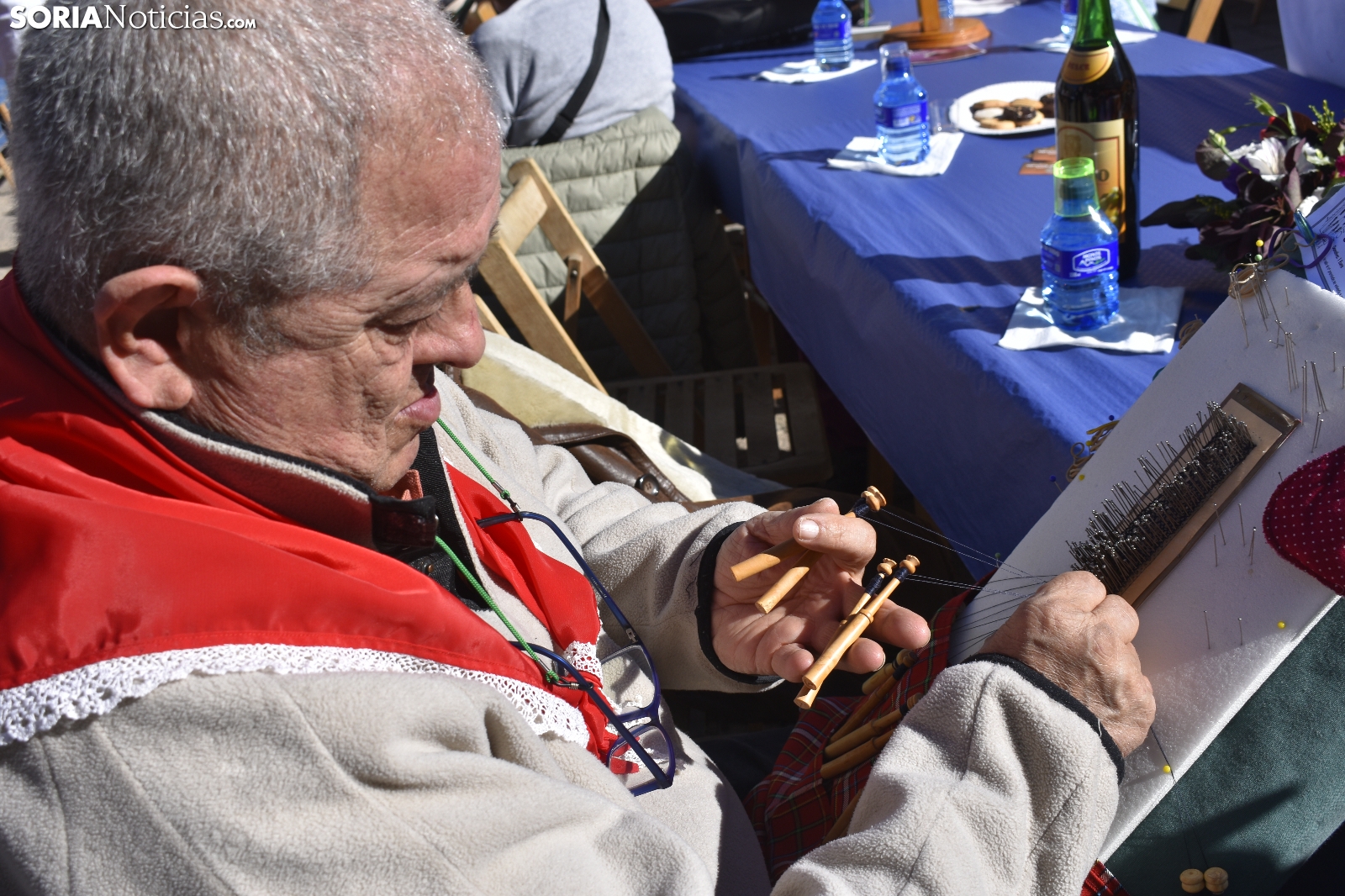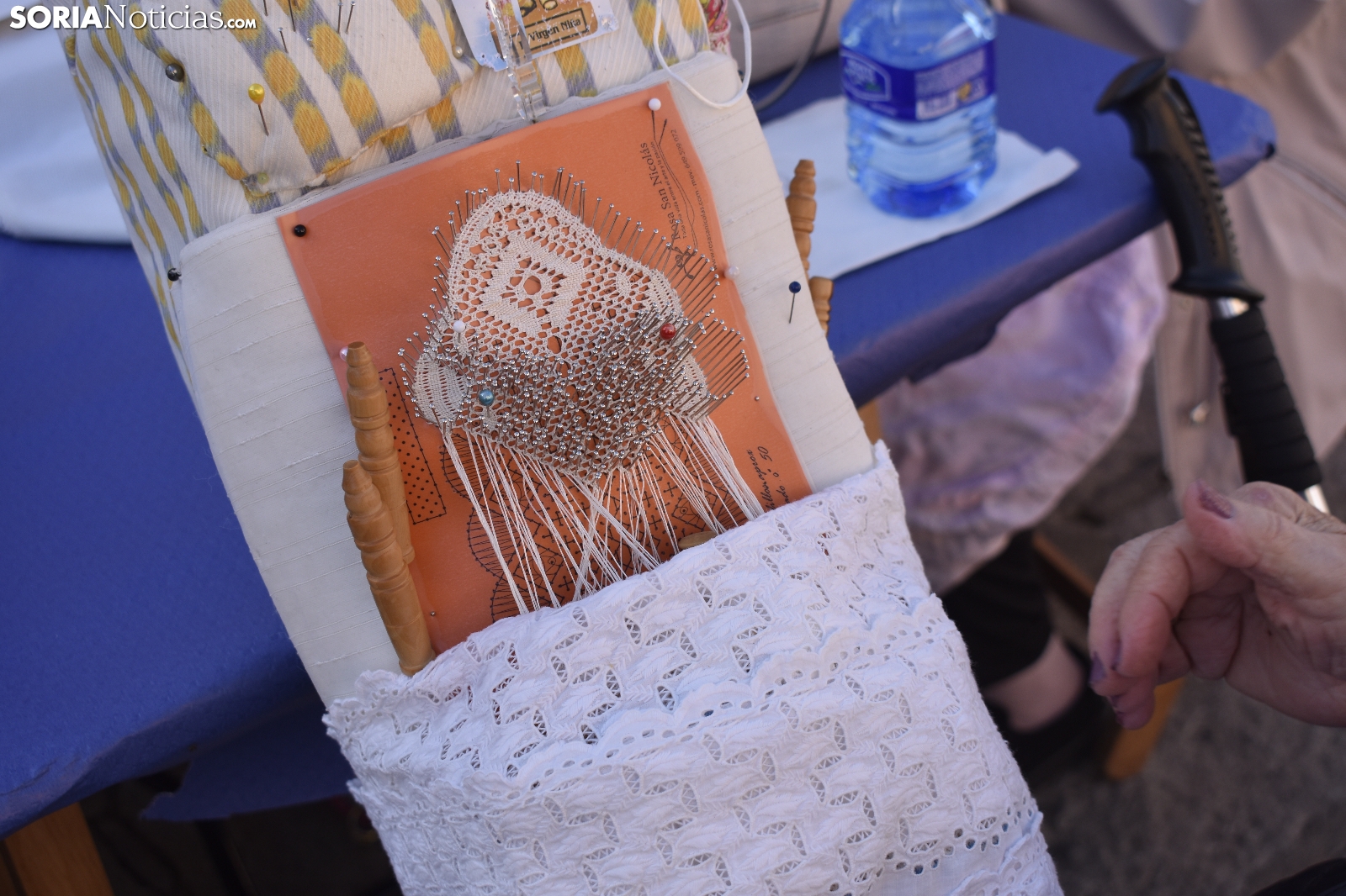 Los bolillos y la plaza Mayor de Soria encajan perfectamente. Se entienden. Gracias a las manos más que habilidosas de decenas de encajeras, se han trenzado a la perfección durante la jornada soleada de este domingo, 29 de septiembre. En el XVI Encuentro de Encajeras de Bolillos, organizado por la Asociación Cultural Encajeras Leonor de Soria, se constituyen auténticas “obras de arte”. No obstante, lo más importante del día es la convivencia porque, según nos cuentan algunas participantes, aquí se viene a "hablar y a compartir".