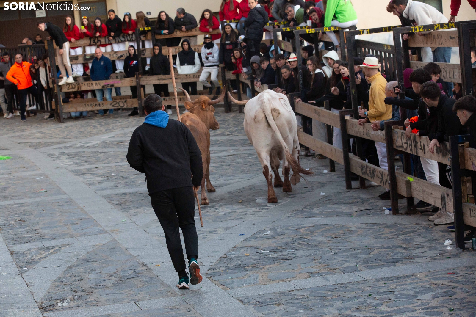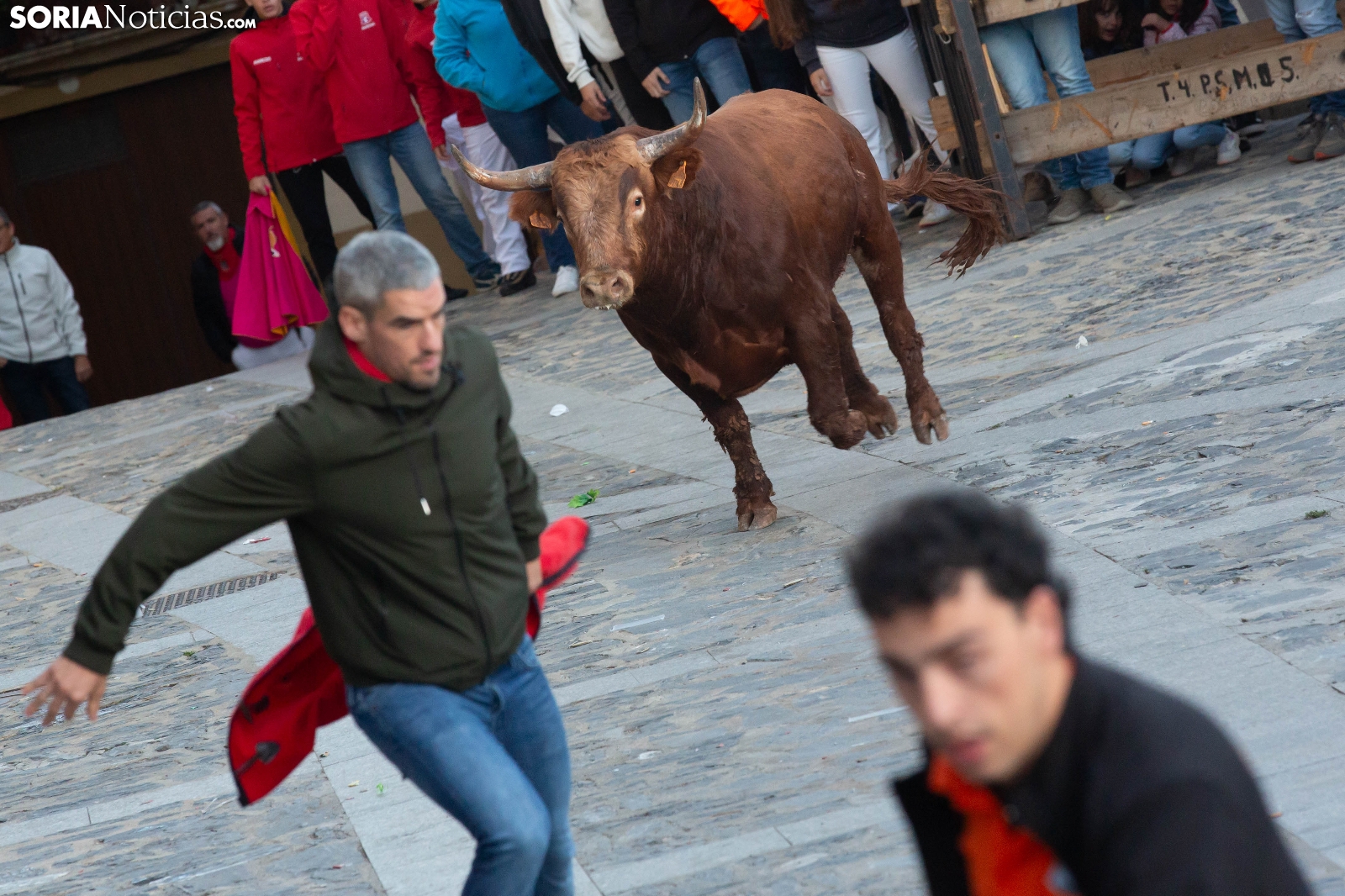 Ágreda ha comenzado el domingo de la mejor manera posible. Ha madrugado para correr el primer encierro de las fiestas de San Miguel, una cita donde los protagonistas han sido los mozos del pueblo y las reses bravas de la ganadería ‘Hermanos Oro Vela’. Se ha dado de esta forma el pistoletazo de salida a un día intenso en el que habrá actos para todos.