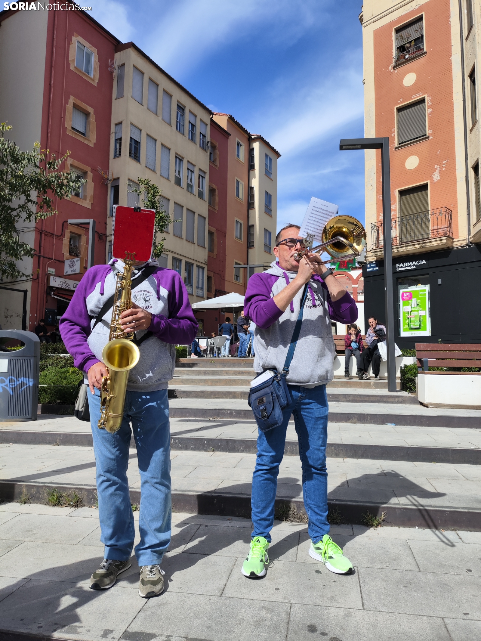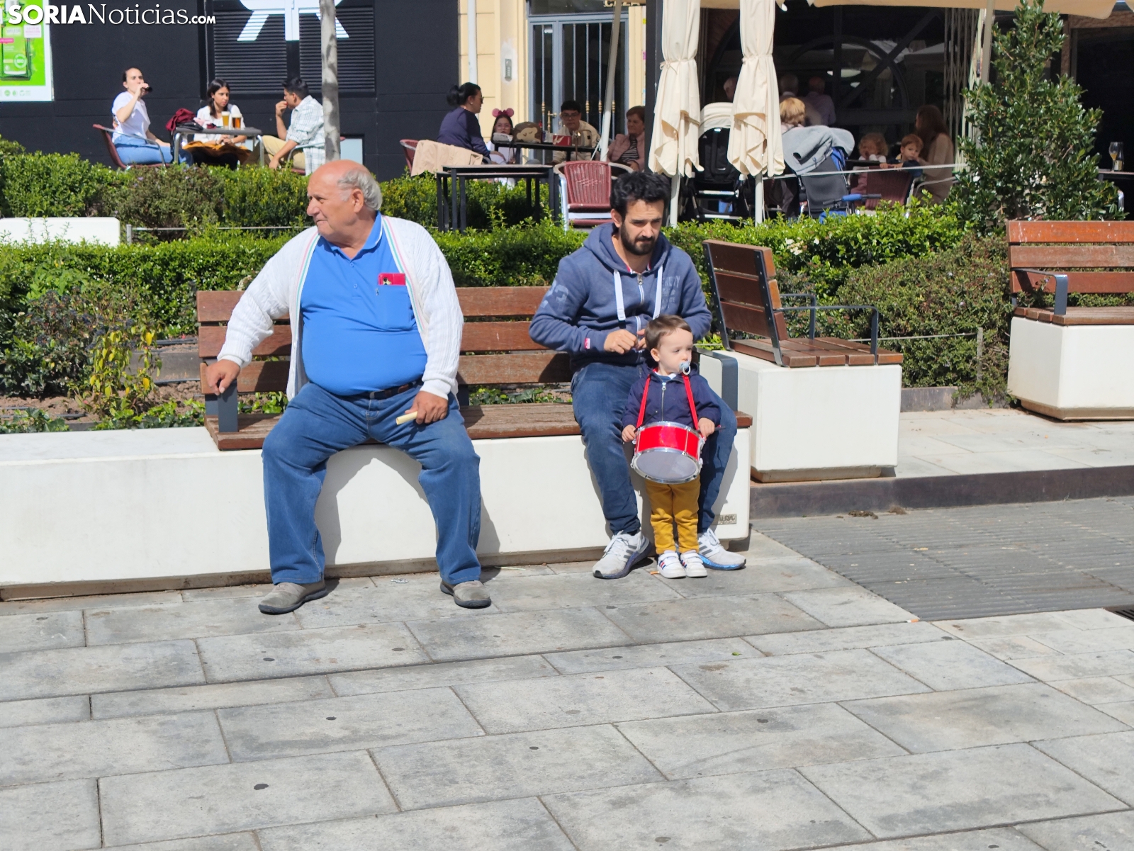 Desde los más pequeños a los mayores, cientos de sorianos (los que no han trabajado hoy) han disfrutado de una mañana festiva en la capital. La programación de San Saturio ha llenado el collado, el casco viejo y el tubo de carreras, acordes y ritmo. Con caramelos o con cervezas, los sorianos han disfrutado de una jornada al más puro estilo soriano; frío en la sobra y calor al sol. La Comparsa de Gigantes y Cabezudos, la Banda Municipal y su concierto de pasodobles y la charanga Tripatriste amenizando el vermú en el tubo ancho han amenizado el mediodía de este 4 de octubre.