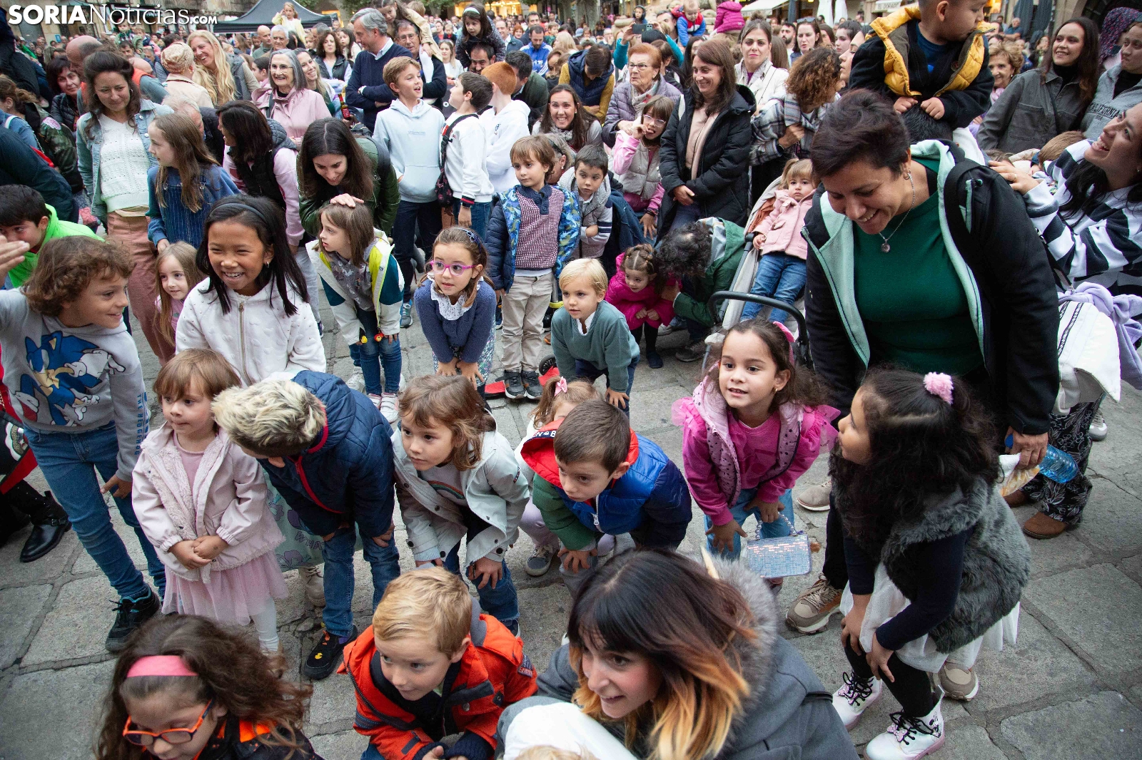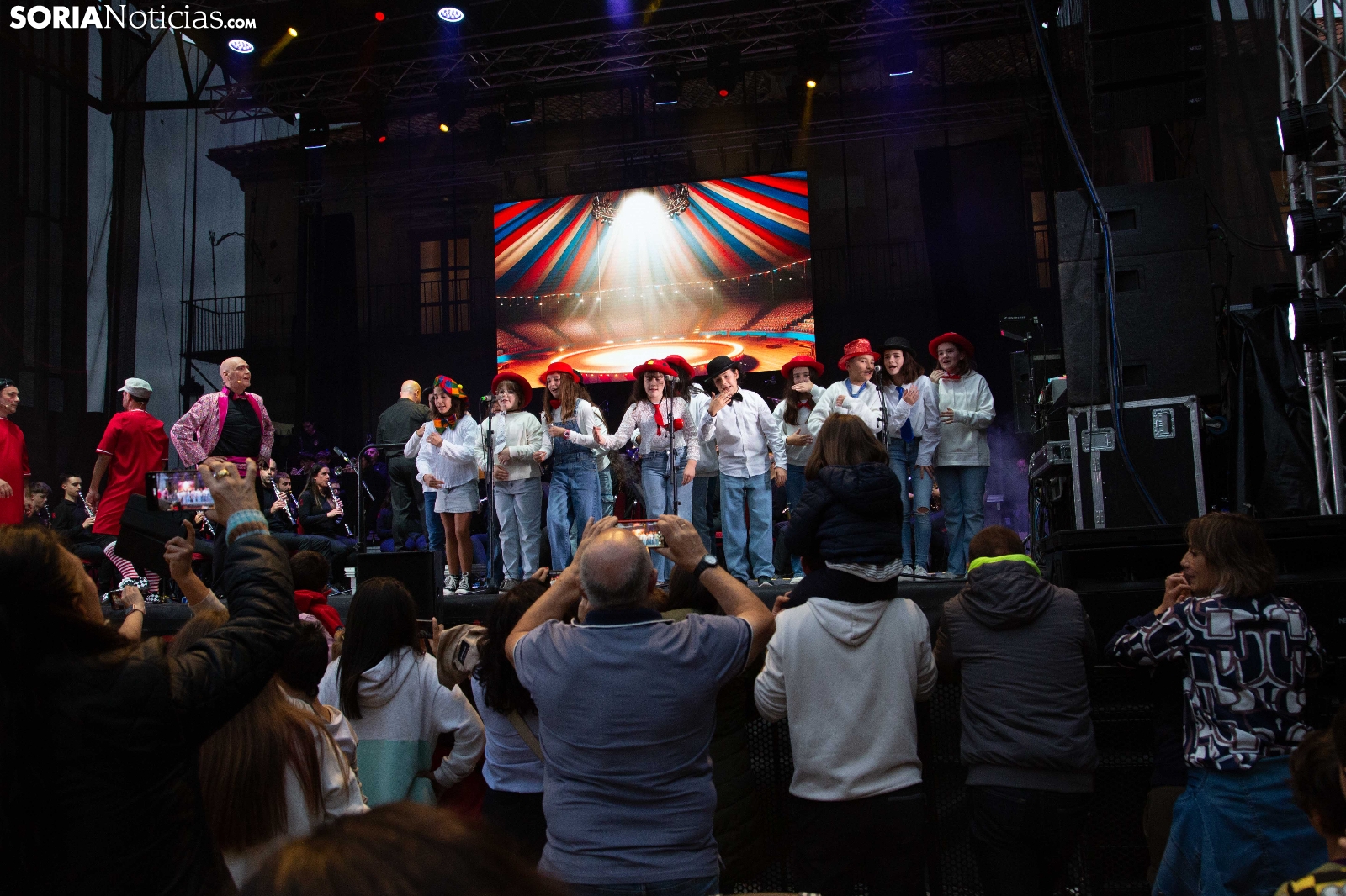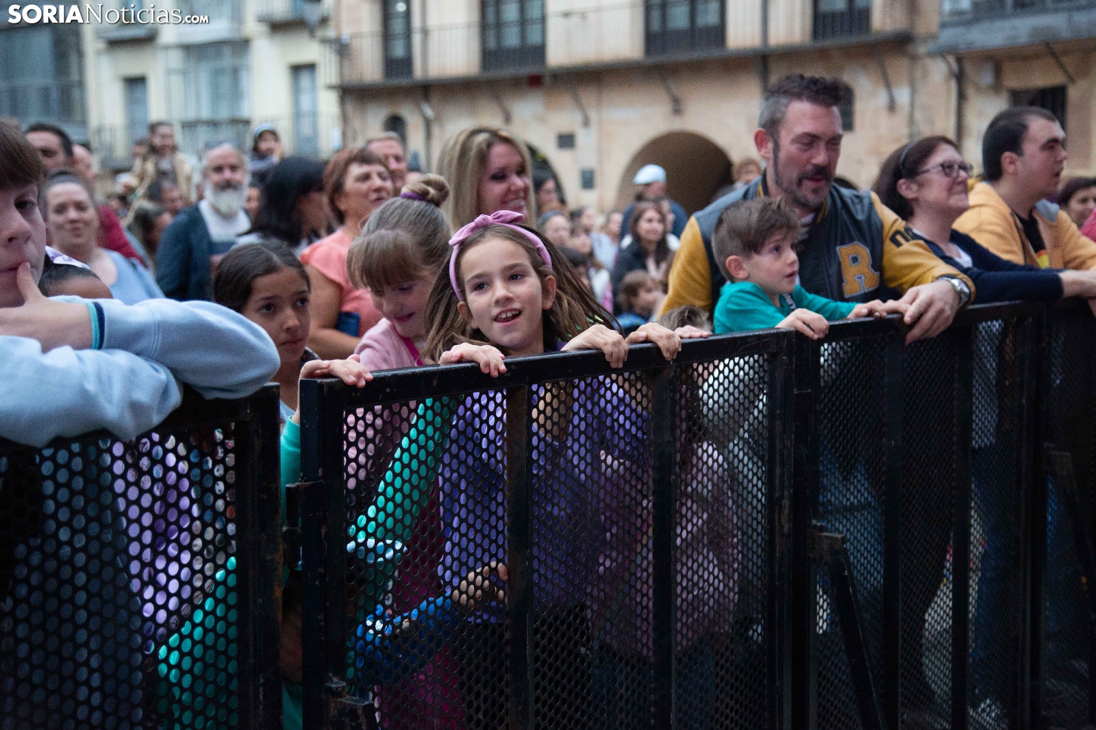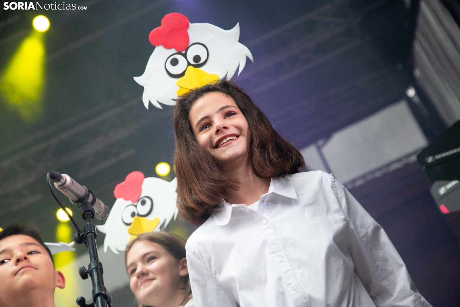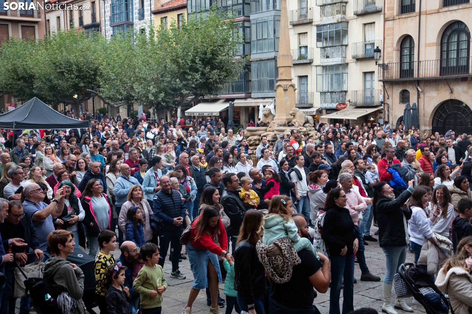 La Banda Municipal de Soria, junto con los cantantes, Ángel Bellido, Kiko Martínez y Enric Puig, y voces de sexto curso del CIP Fuente del Rey y su profesora, Ana Isla, ha interpretado el concierto familiar 'Vivan los payasos' en la Plaza Mayor de Soria. La agrupación soriana ha tocado varias canciones que han trasladado a los más mayores del lugar a su infancia con temas como 'Susanita tiene un ratón', 'La gallina turuleca' u 'Hola Don Pepito'. Los más jóvenes de la ciudad también han disfrutado de una actuación que ha sacado una sonrisa a más de uno.