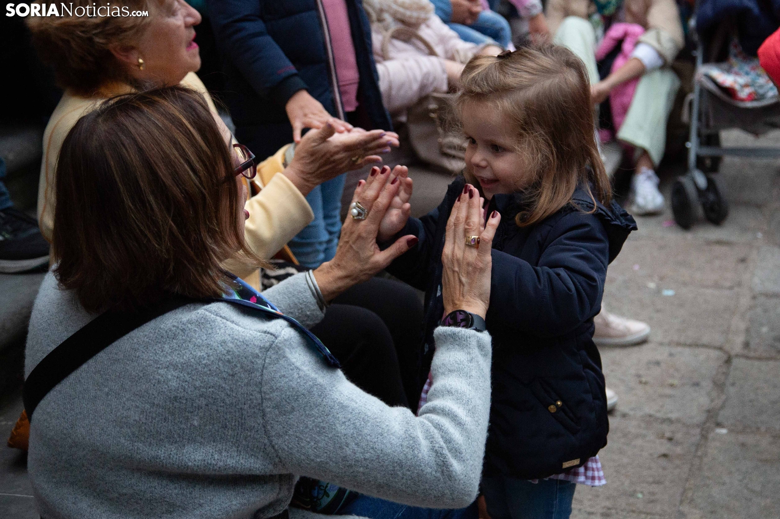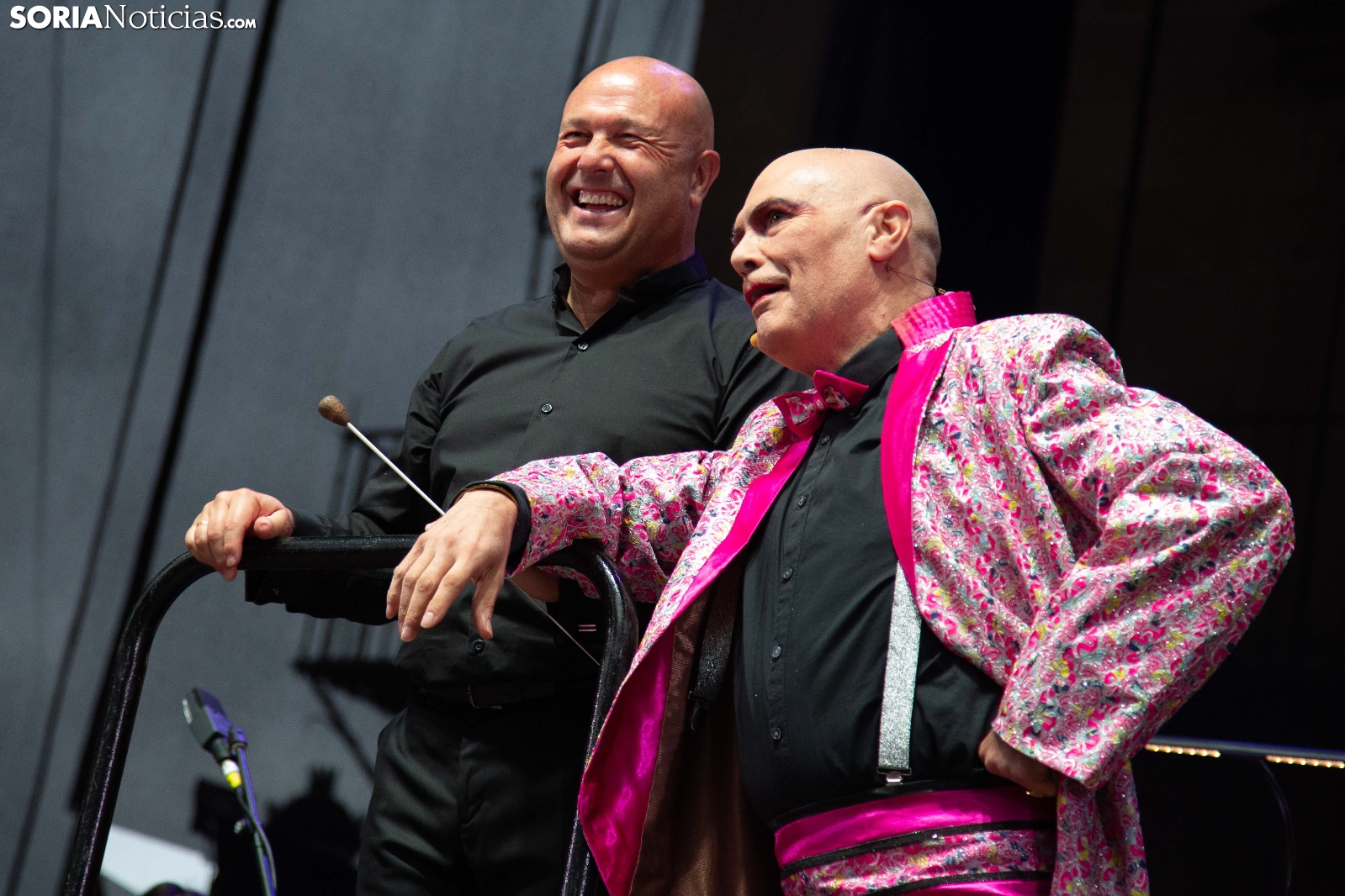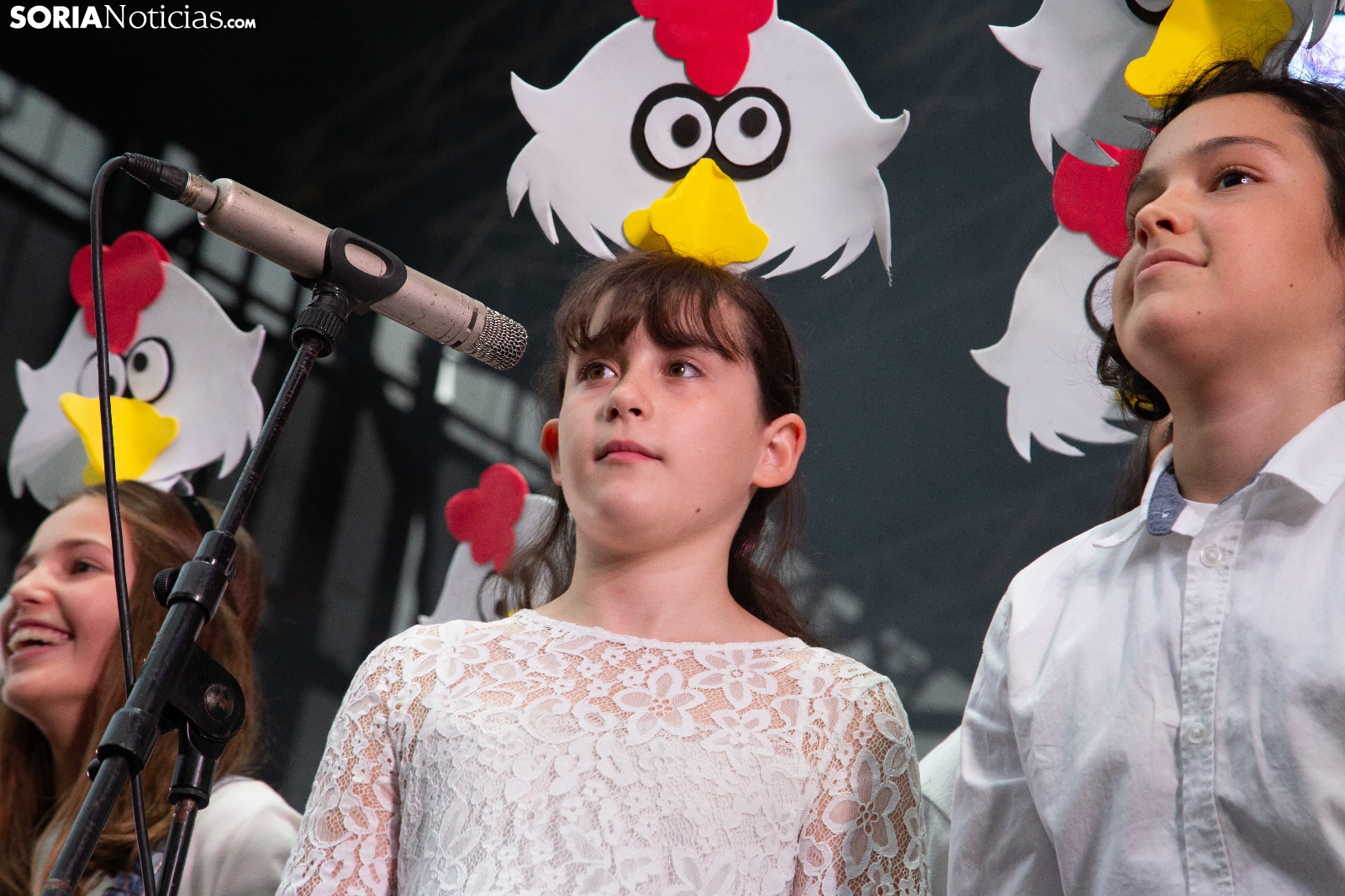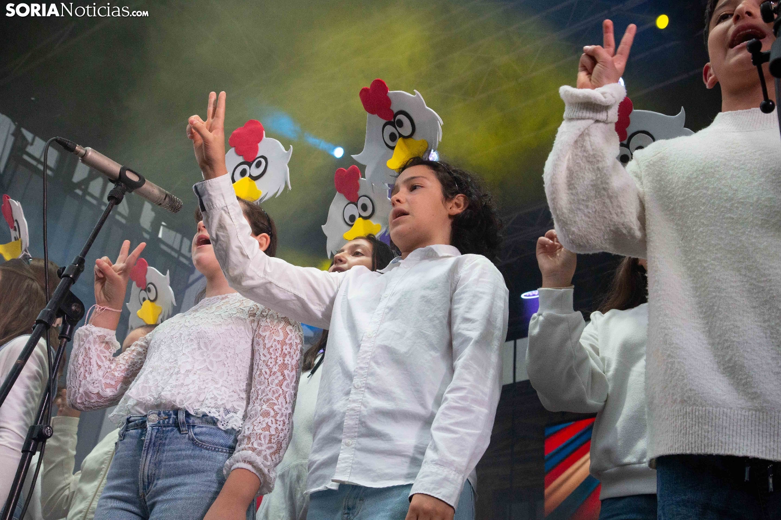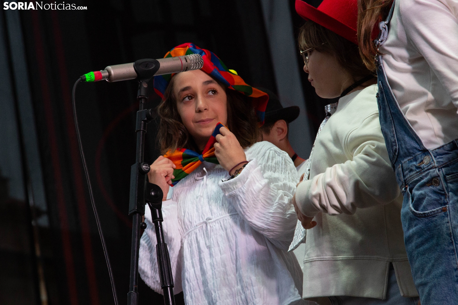La Banda Municipal de Soria, junto con los cantantes, Ángel Bellido, Kiko Martínez y Enric Puig, y voces de sexto curso del CIP Fuente del Rey y su profesora, Ana Isla, ha interpretado el concierto familiar 'Vivan los payasos' en la Plaza Mayor de Soria. La agrupación soriana ha tocado varias canciones que han trasladado a los más mayores del lugar a su infancia con temas como 'Susanita tiene un ratón', 'La gallina turuleca' u 'Hola Don Pepito'. Los más jóvenes de la ciudad también han disfrutado de una actuación que ha sacado una sonrisa a más de uno.
