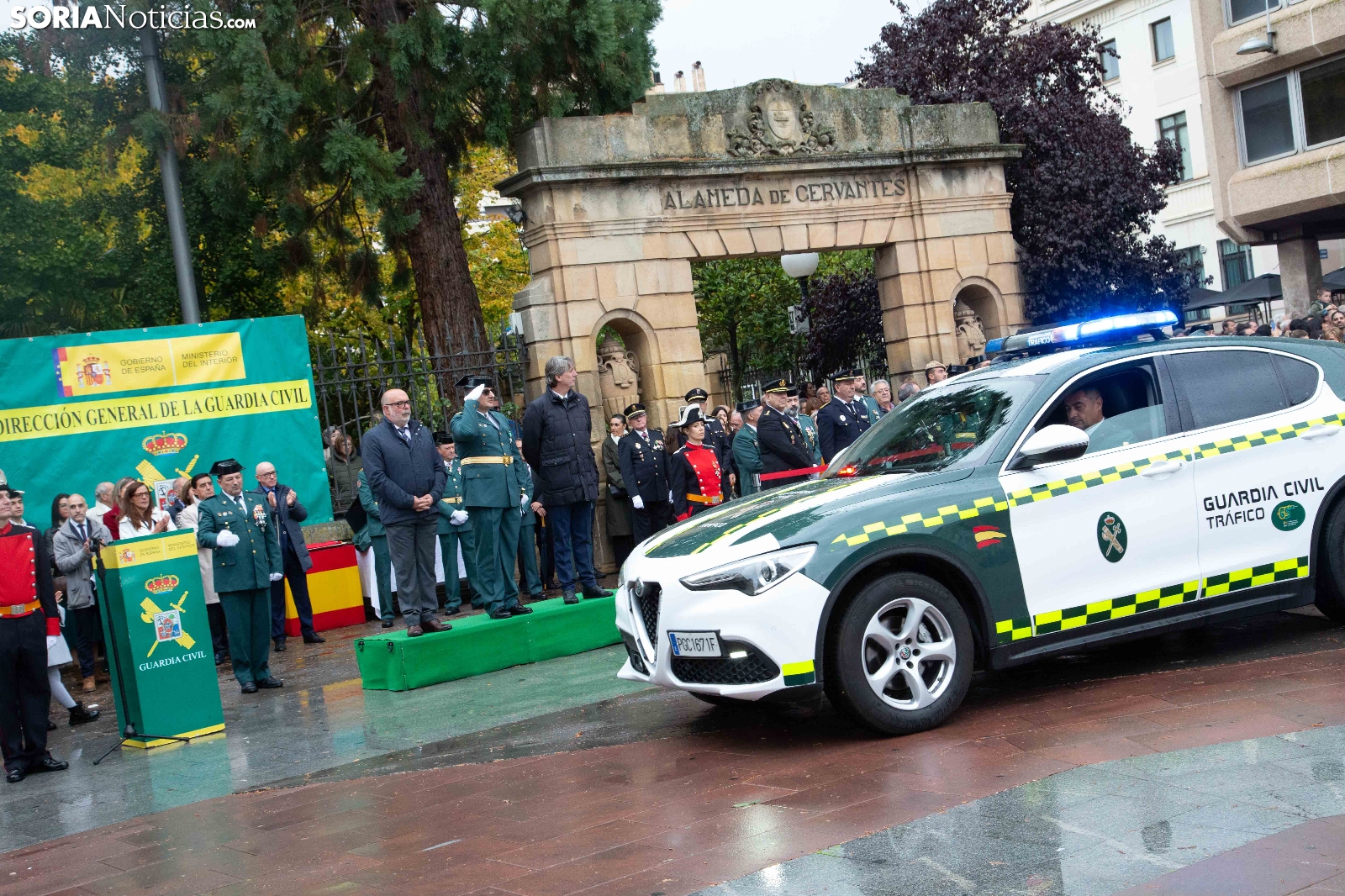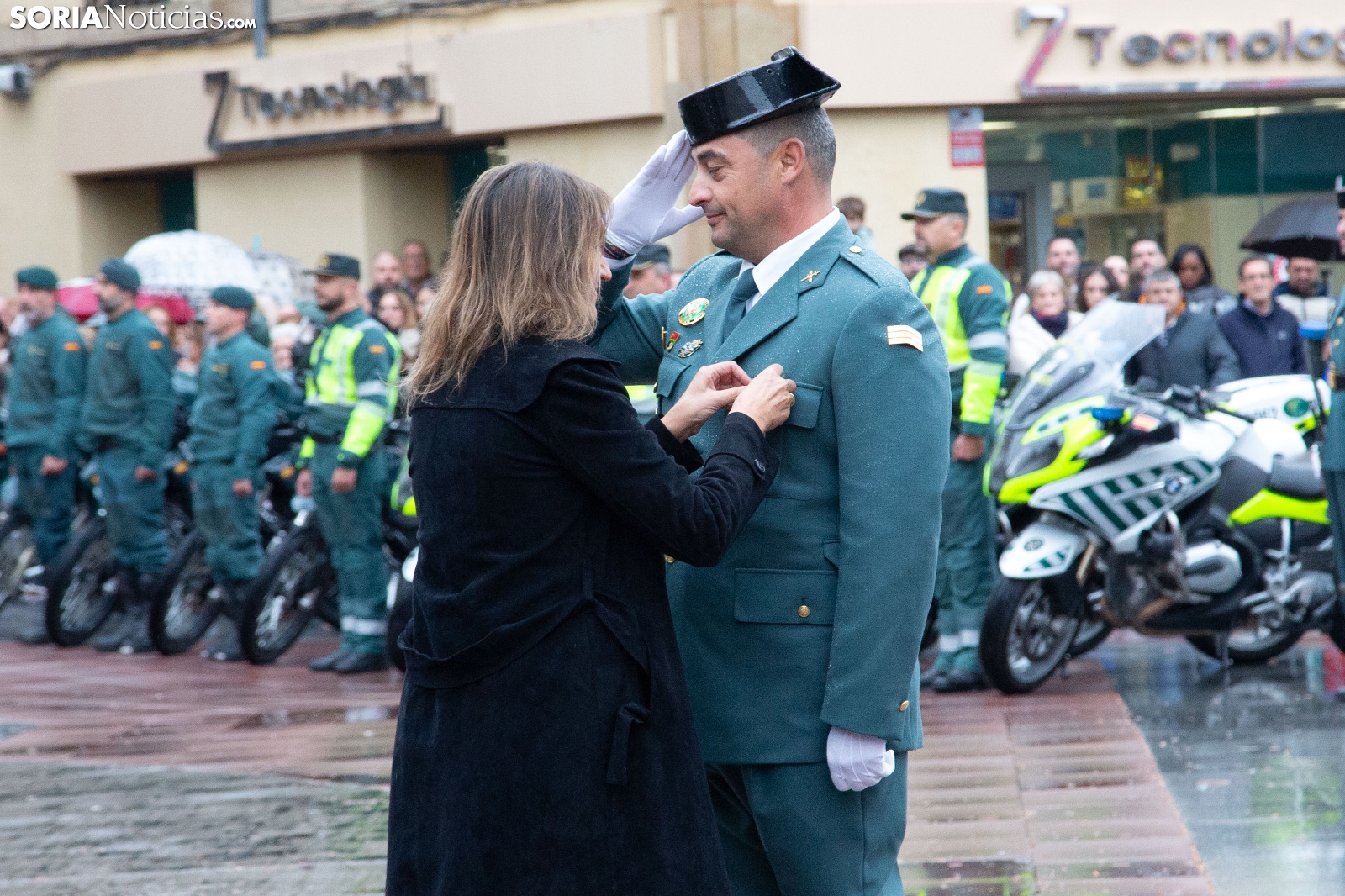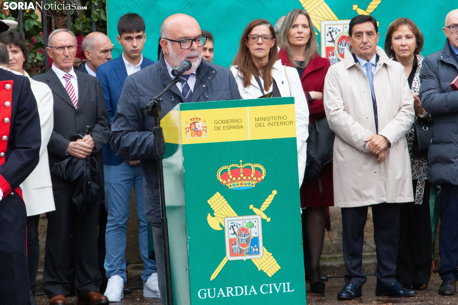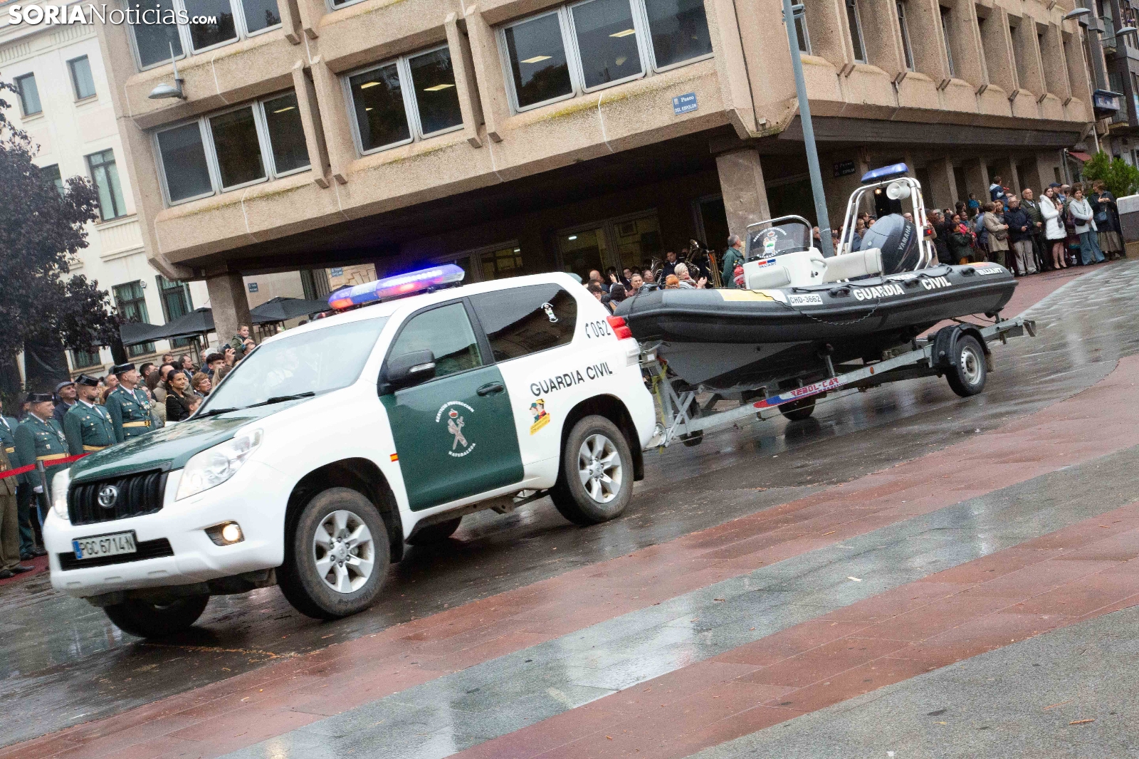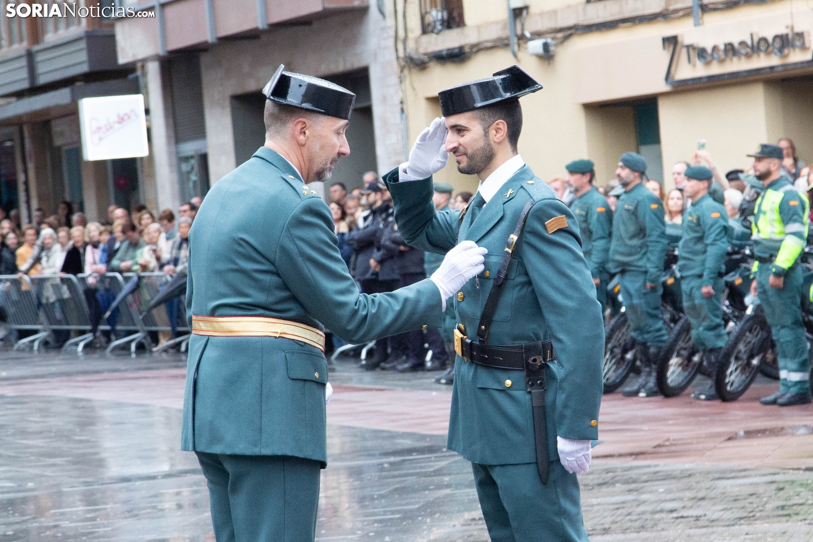 La Plaza Mariano Granados de la capital ha sido el epicentro de los actos de celebración del 12 de octubre en Soria. Representantes políticos de distintas instituciones se han reunido para honrar a la patrona de la Guardia Civil y homenajear a los que dieron su vida en un acto de servicio. El tiempo lo ha puesto difícil, pero los sorianos no han querido perderse el evento.