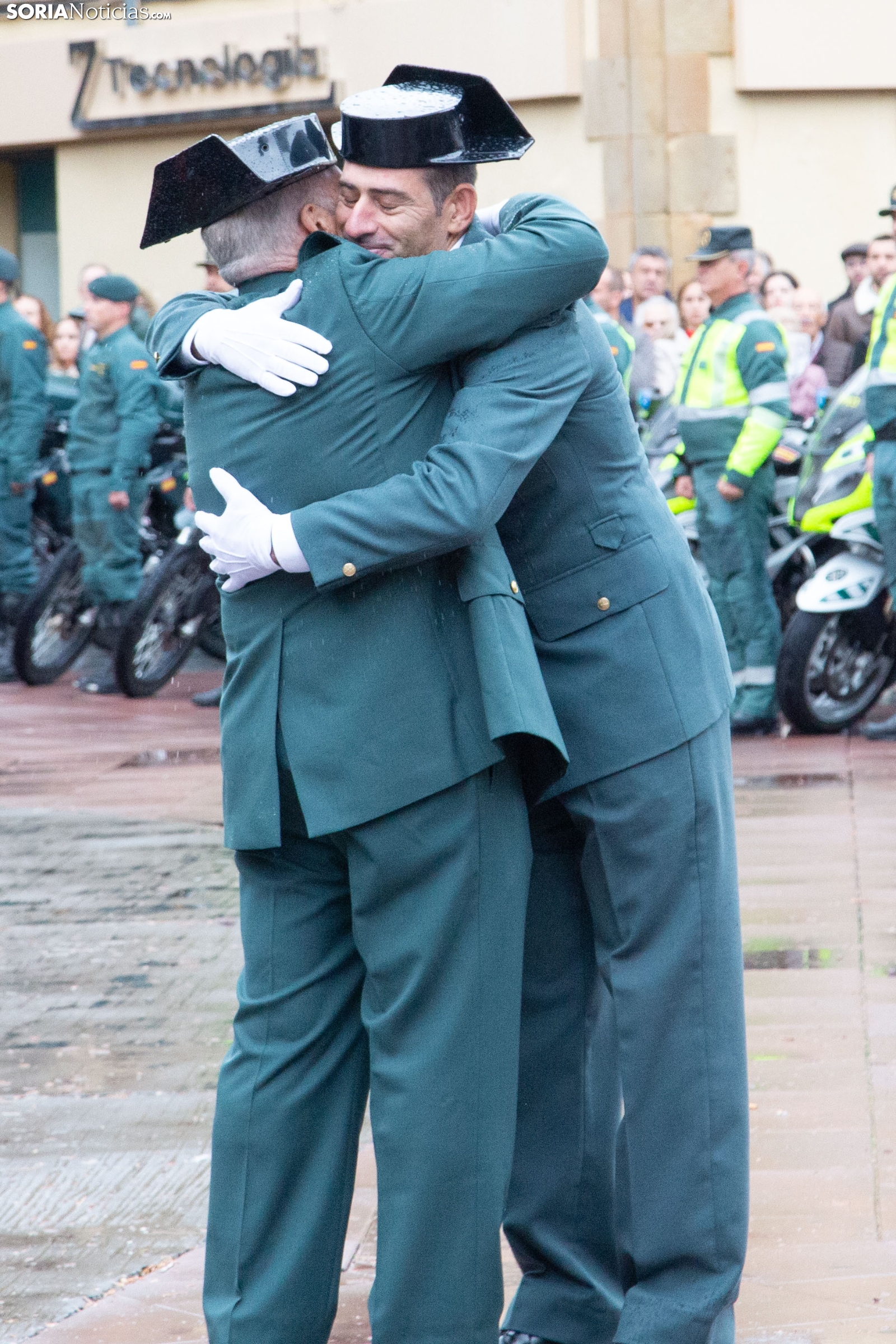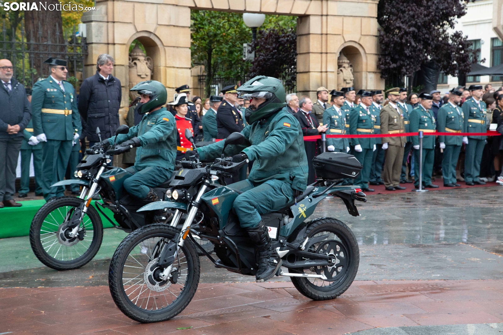 La Plaza Mariano Granados de la capital ha sido el epicentro de los actos de celebración del 12 de octubre. Representantes políticos de distintas instituciones se han reunido para honrar a la patrona de la Guardia Civil en un evento en el que la Diputación ha otorgado a este cuerpo la Medalla de Oro de la Provincia. Cientos de sorianos han acudido a presenciar el acontecimiento en una primaveral mañana.
