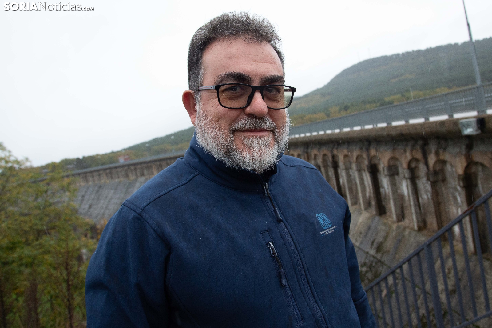 Alejandro es el director técnico de la Confederación Hidrográfica del Duero y acompaña, junto a la soriana María Jesús Lafuente Molinero, presidenta actual de la CHD, y a los trabajadores de la presa a Soria Noticias en este recorrido. Juntos intercambian datos, recuerdan cómo han cambiado los sistemas de comunicación y control y comparten un sentimiento de orgullo por una presa casi centenaria pero que sigue muy viva.