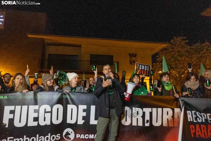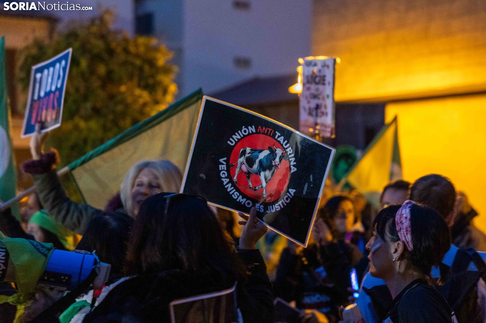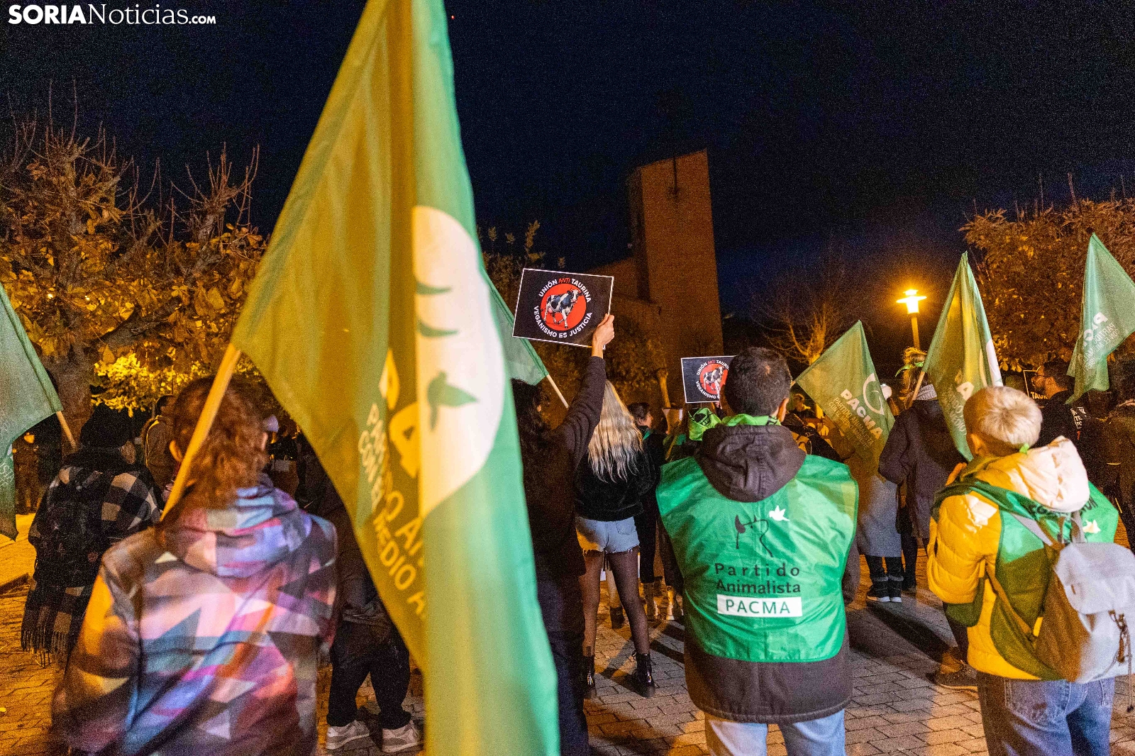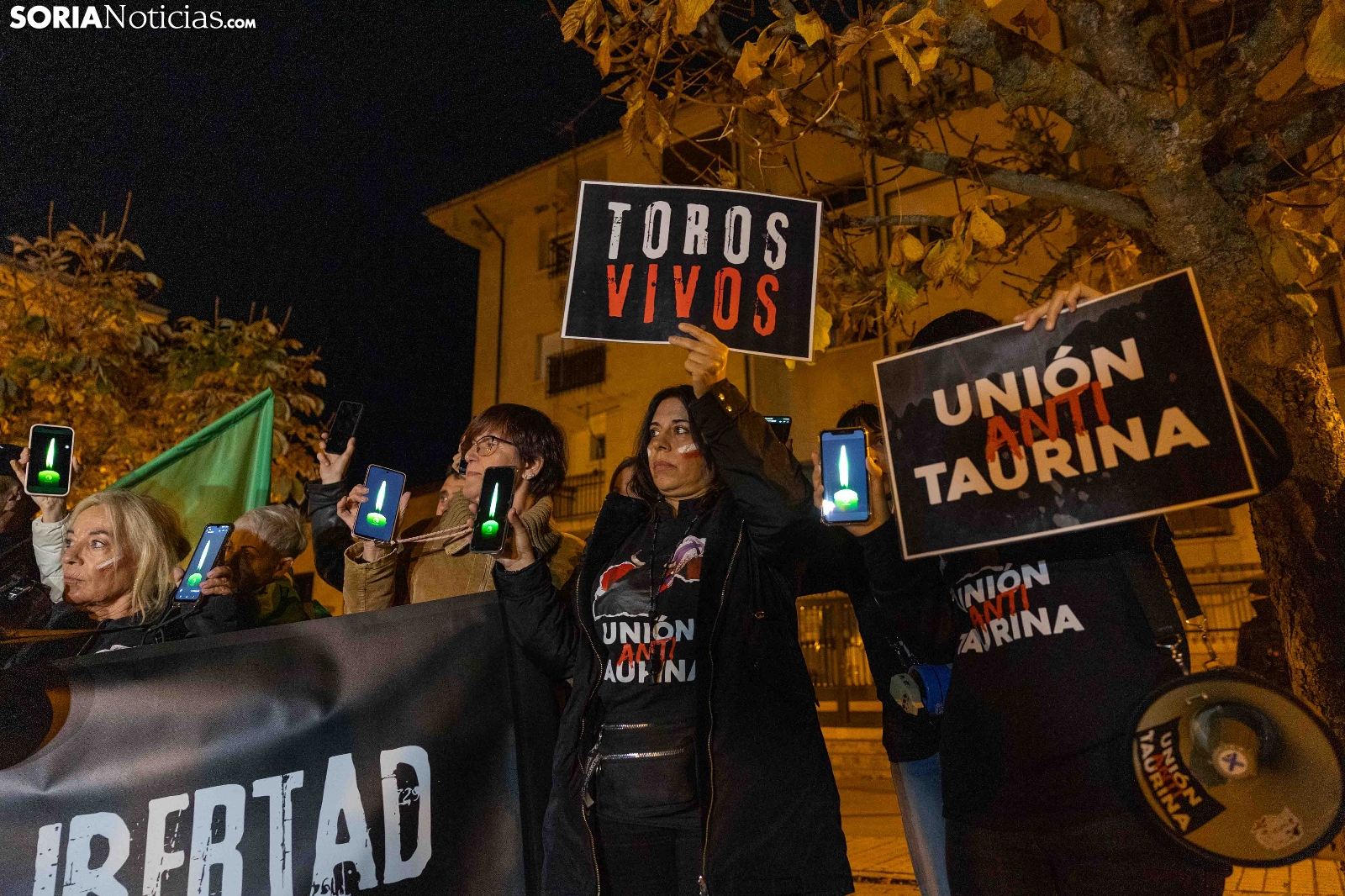 Al grito de “Nosotros no matamos, aquí estamos”, “Medinaceli, libre de maltrato”, “Ninguna tradición por encima de la razón”, “No es cultura, es asesinato” o “Toro, hermano, aquí estamos” han desembarcado los manifestantes en el Consistorio del pueblo, acompañados de un gran despliegue policial.