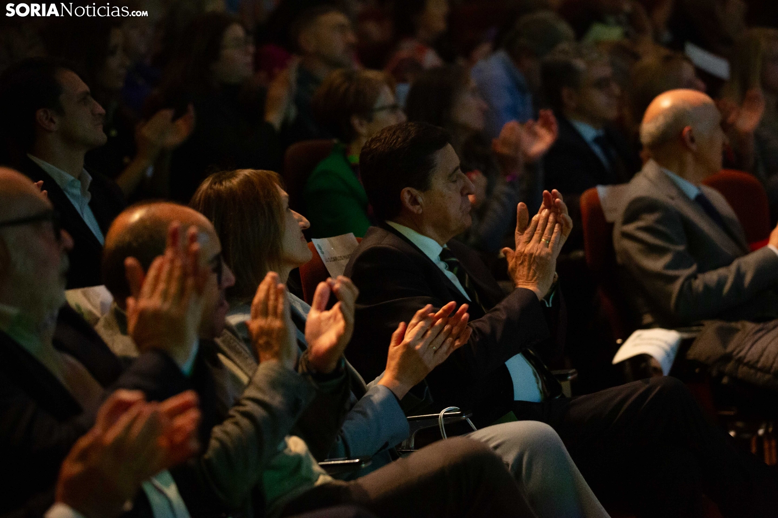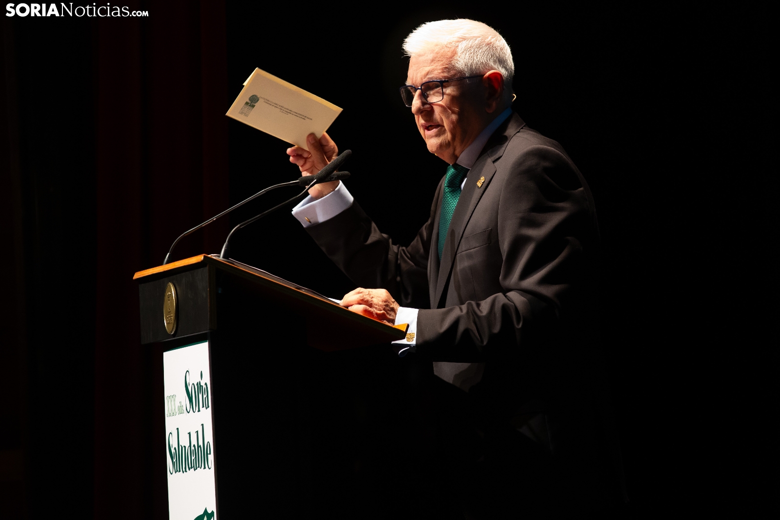 El doctor Juan Manuel Ruiz Liso ha recibido hoy un caluroso y merecido homenaje de la sociedad soriana, con la entrega del premio ‘Valores Humanos y Soria Saludable’, en un Palacio de la Audiencia que se ha quedado pequeño. “He preparado un sobre con el nombre de más de 100 personas que me han ayudado en este largo camino. Tengo una sensación agridulce, ya que alguno ya no está con nosotros", señala Juanma. La clausura del Soria Saludable 2024, a cargo de la divulgadora Elsa Punset, ha servido para poner el broche de oro a 30 años de la Fundación Científica de Caja Rural de Soria cuya actividad pasará a integrarse en la gran fundación que prepara la Caja.