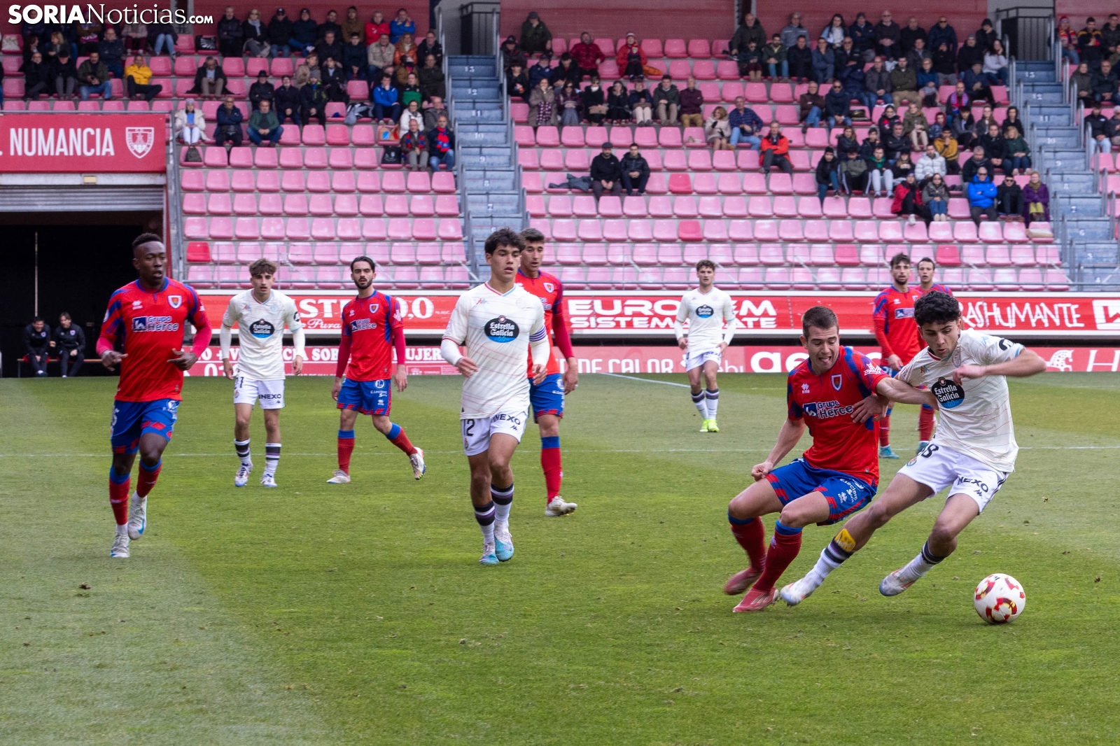 El Numancia se ha despedido de Los Pajaritos este año con una enorme victoria frente al Real Valladolid Promesas. Los rojillos se han llevado los tres puntos después de completar el mejor partido de los últimos meses. Dani Fernández, el jugador más destacado de los sorianos, Góngora y De Frutos han sido los autores de los goles.