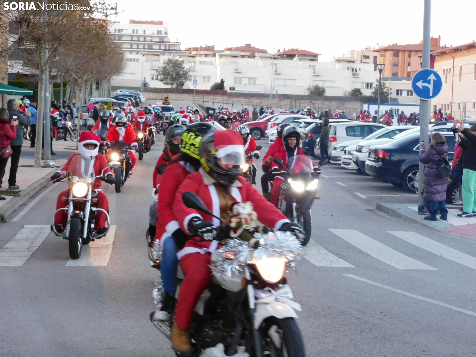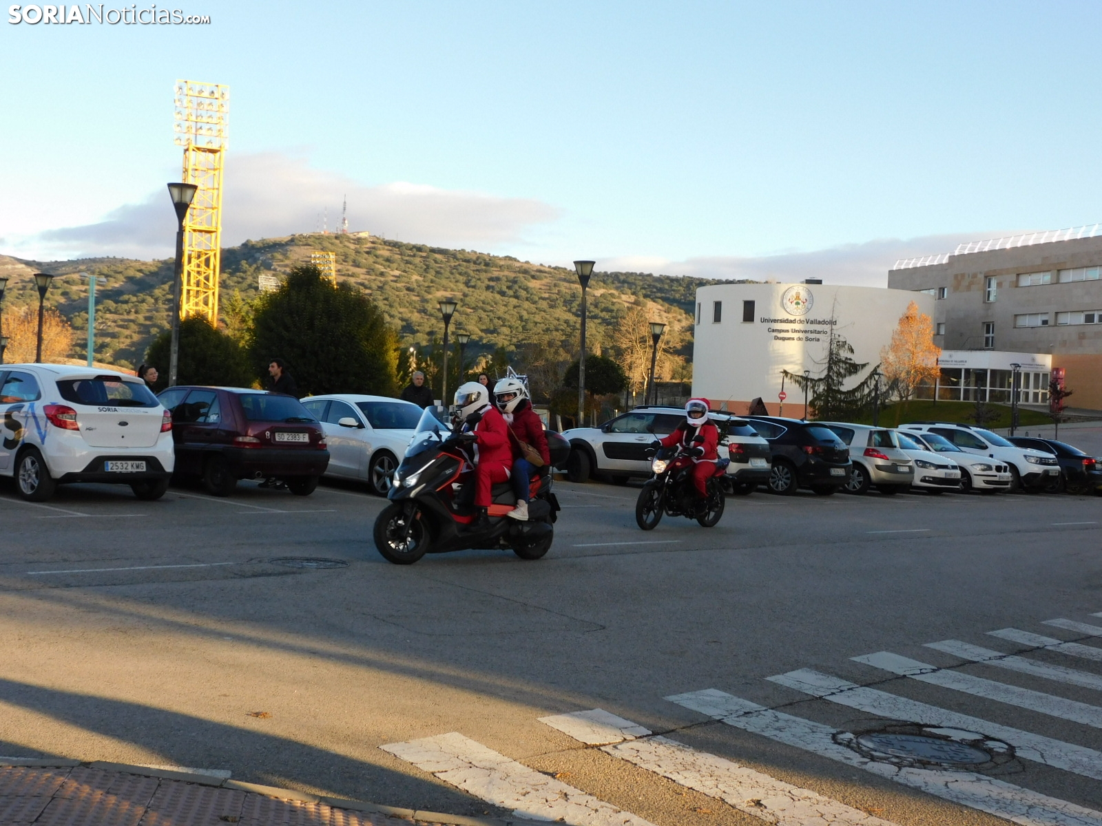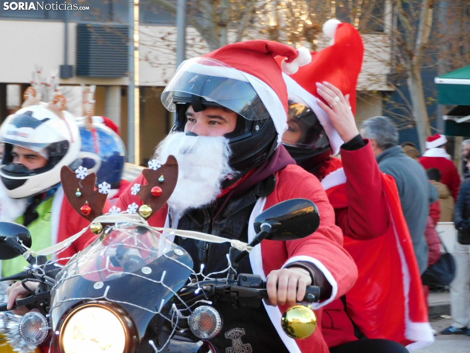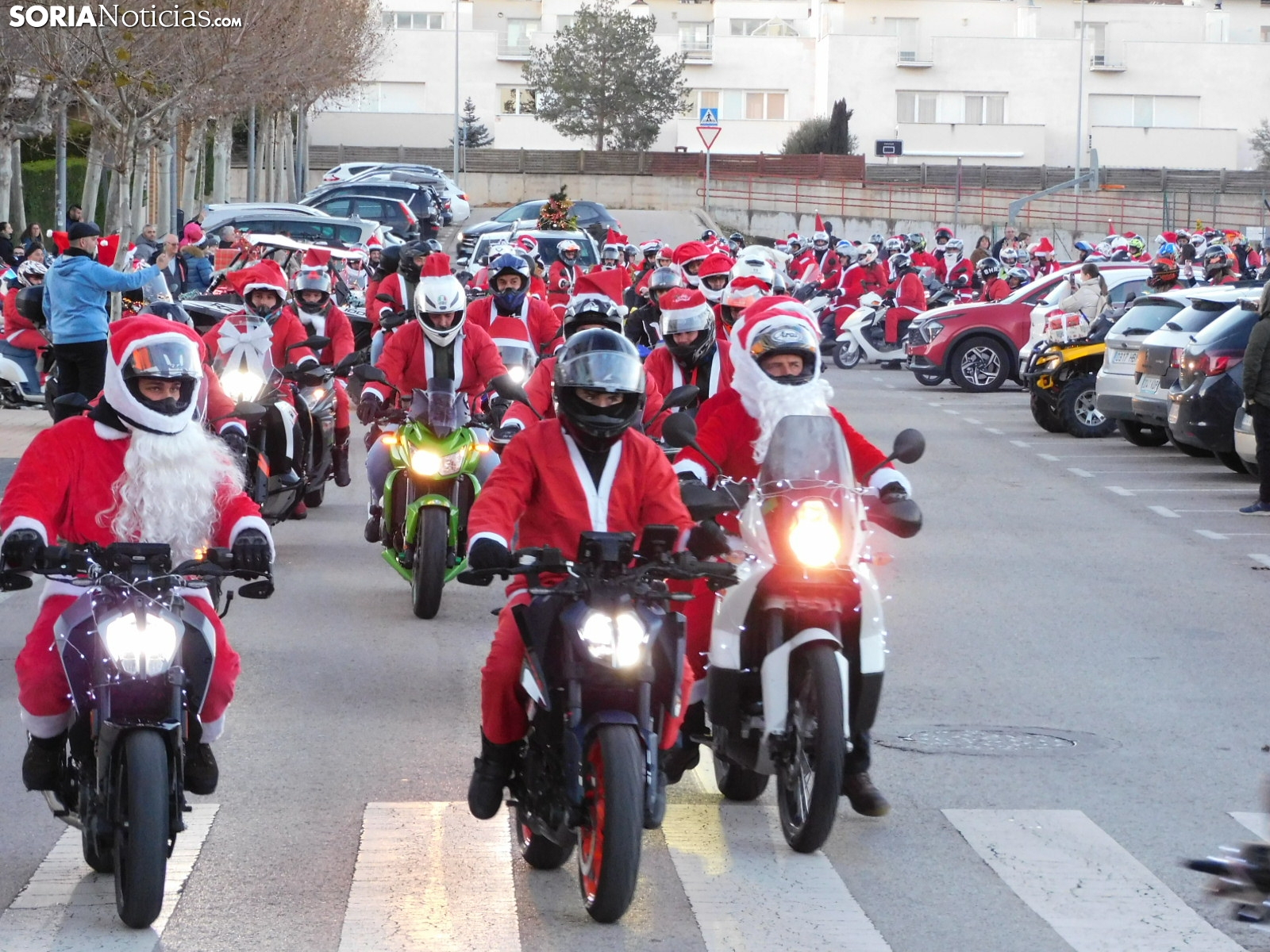 Decenas de 'Santa Claus' han cambiado el trineo por la moto para recorrer las las calles de Soria y Camaretas en una nueva edición de la 'Papanoelada'. Con esta original iniciativa, el motoclub NumanRiders ha dado su particular bienvenida a la Navidad, ofreciendo un espectáculo colorido y llamativo para los sorianos.