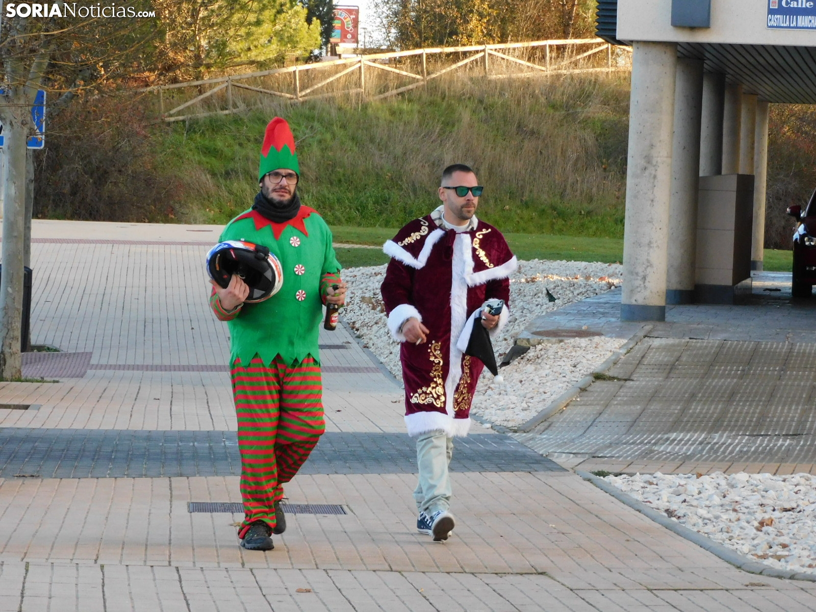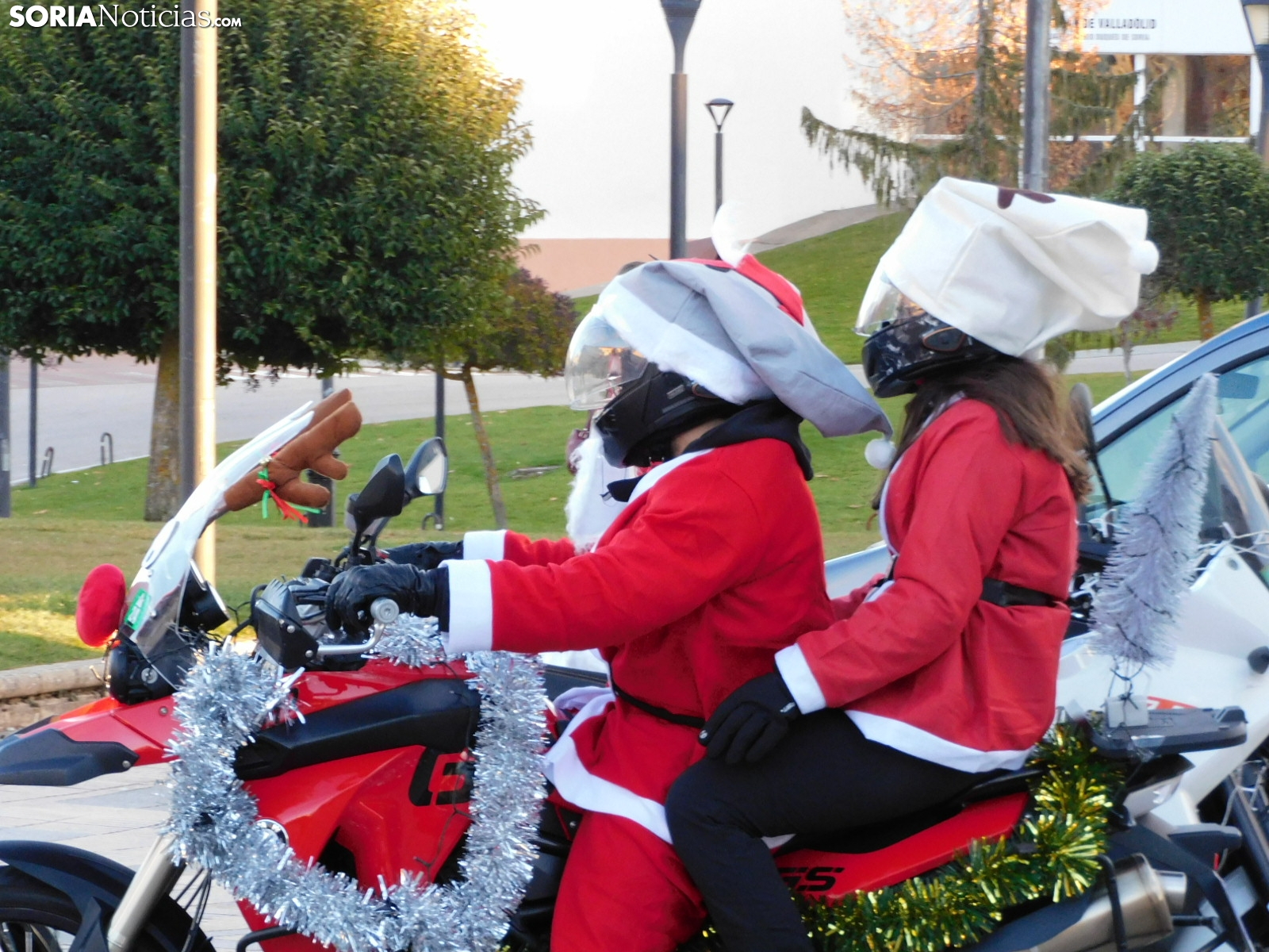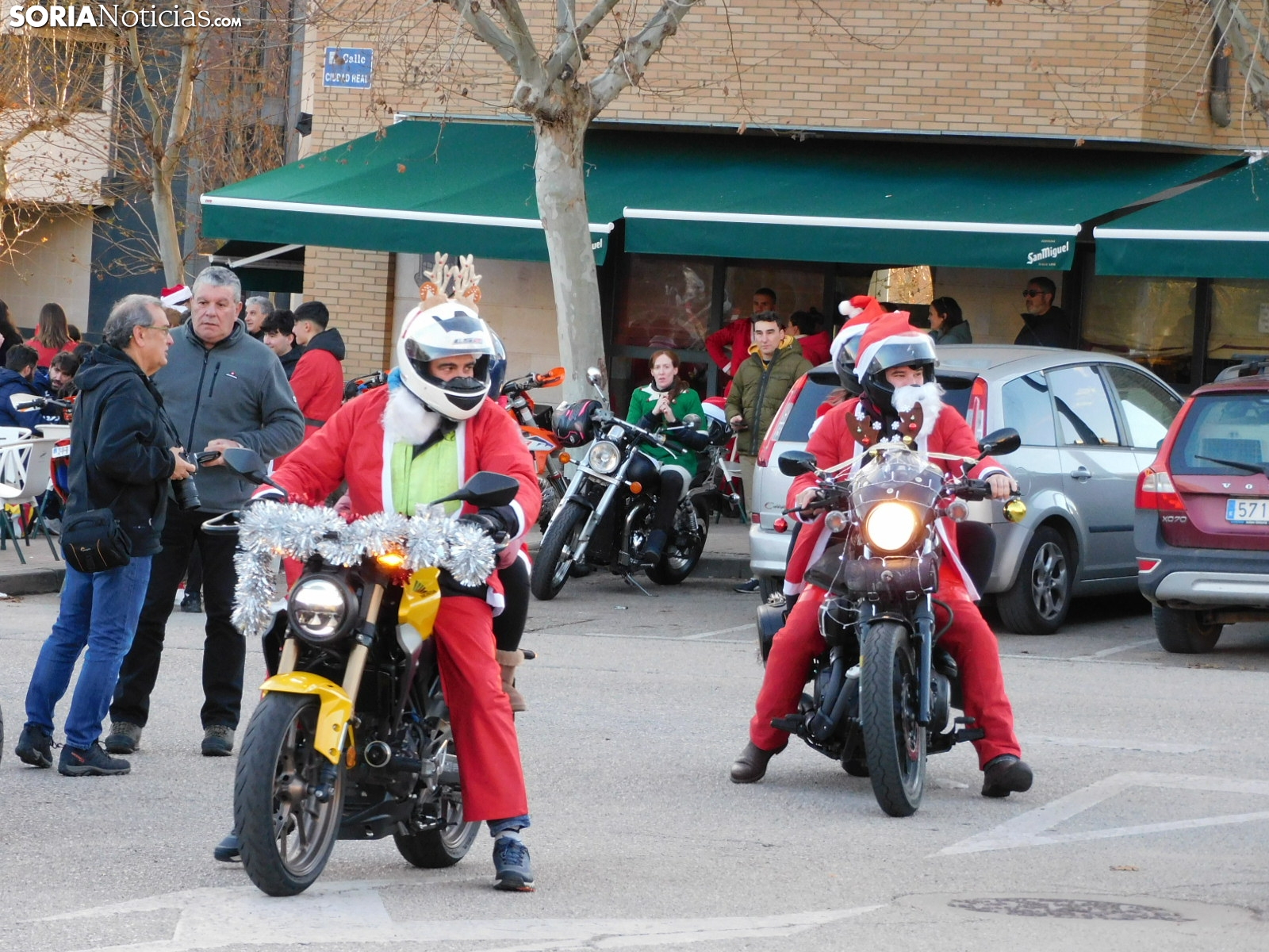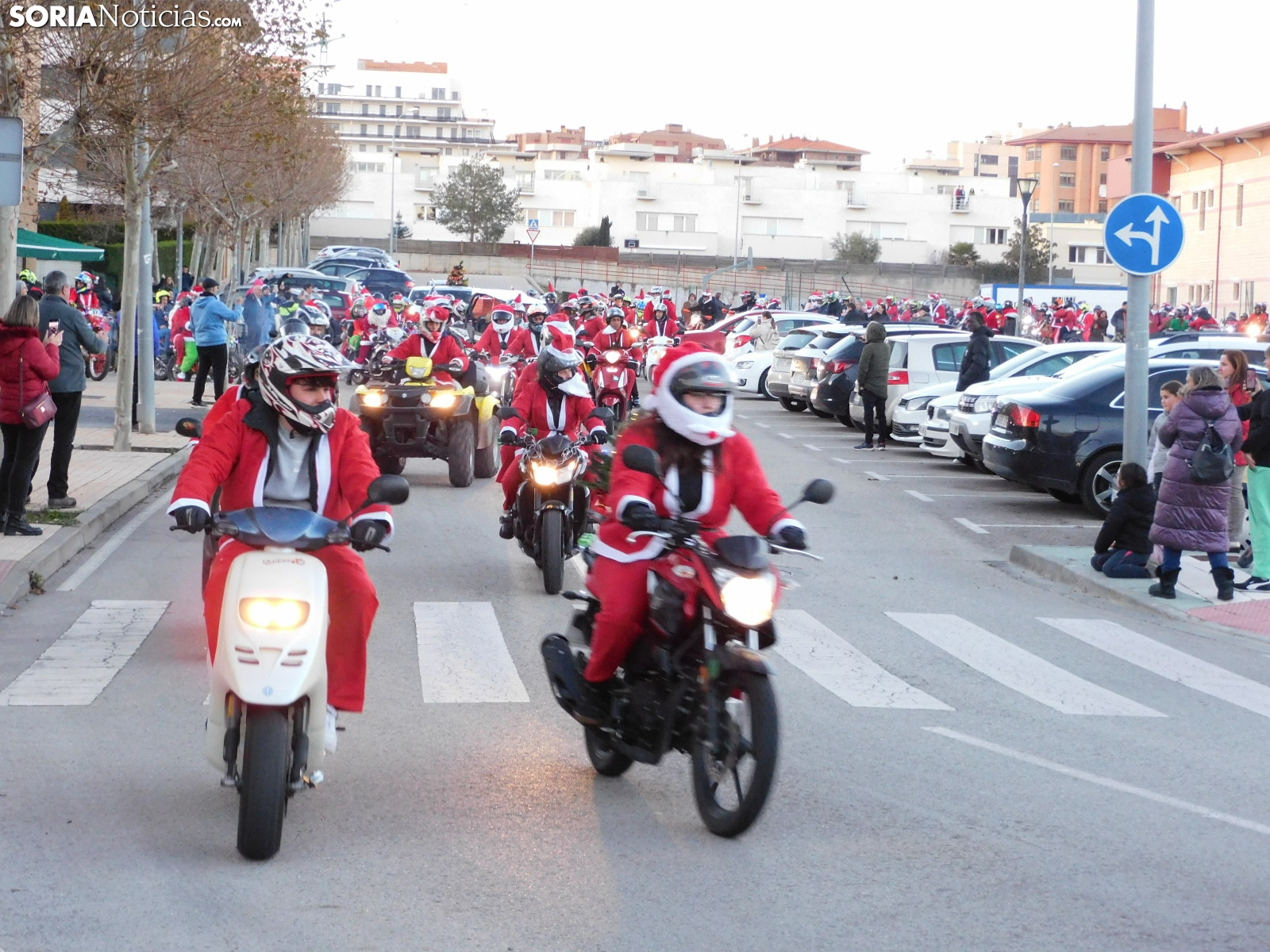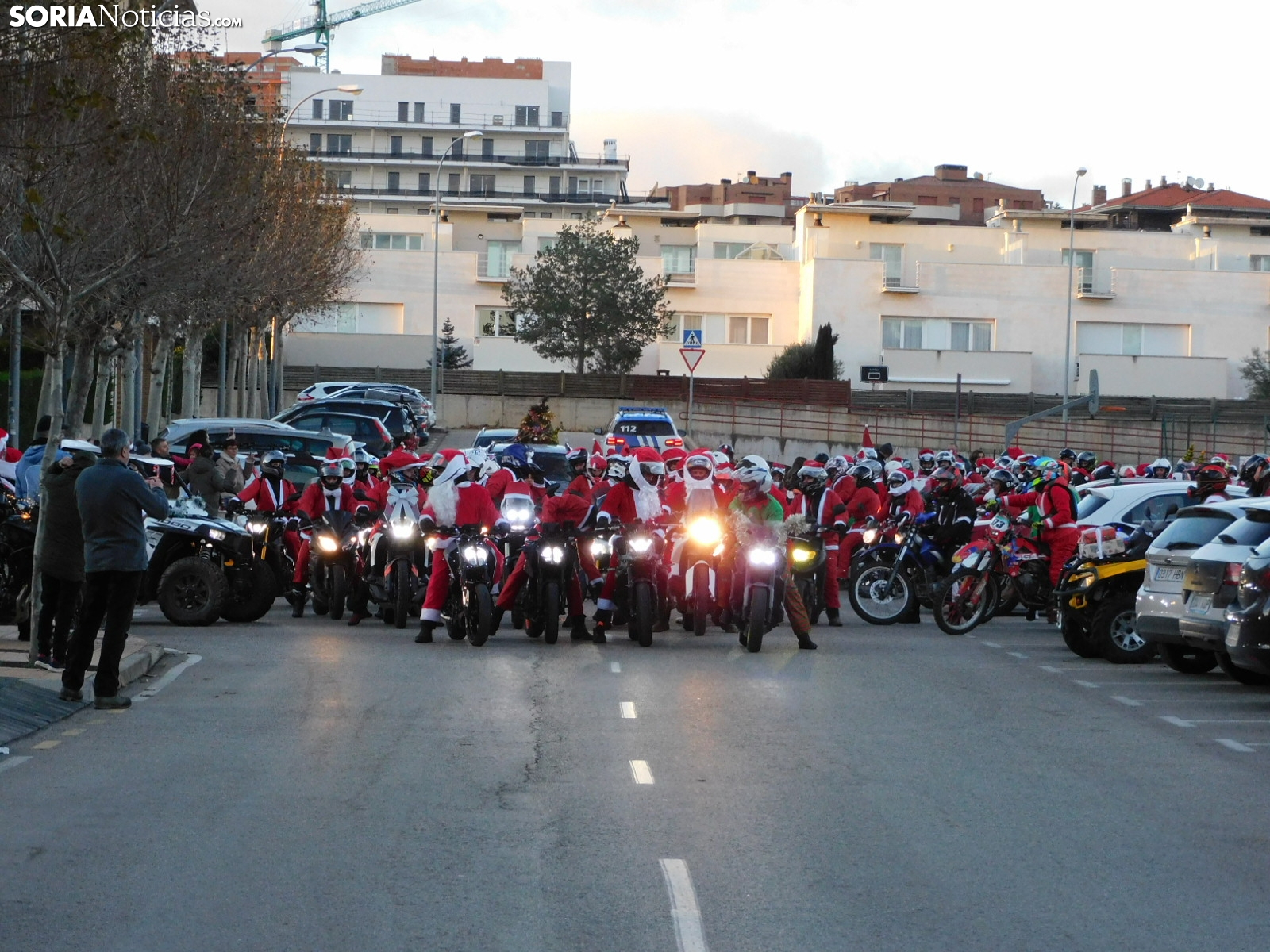 Decenas de 'Santa Claus' han cambiado el trineo por la moto para recorrer las las calles de Soria y Camaretas en una nueva edición de la 'Papanoelada'. Con esta original iniciativa, el motoclub NumanRiders ha dado su particular bienvenida a la Navidad, ofreciendo un espectáculo colorido y llamativo para los sorianos.