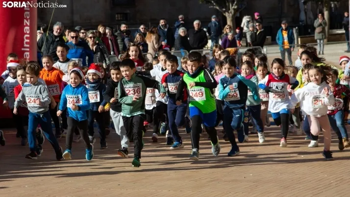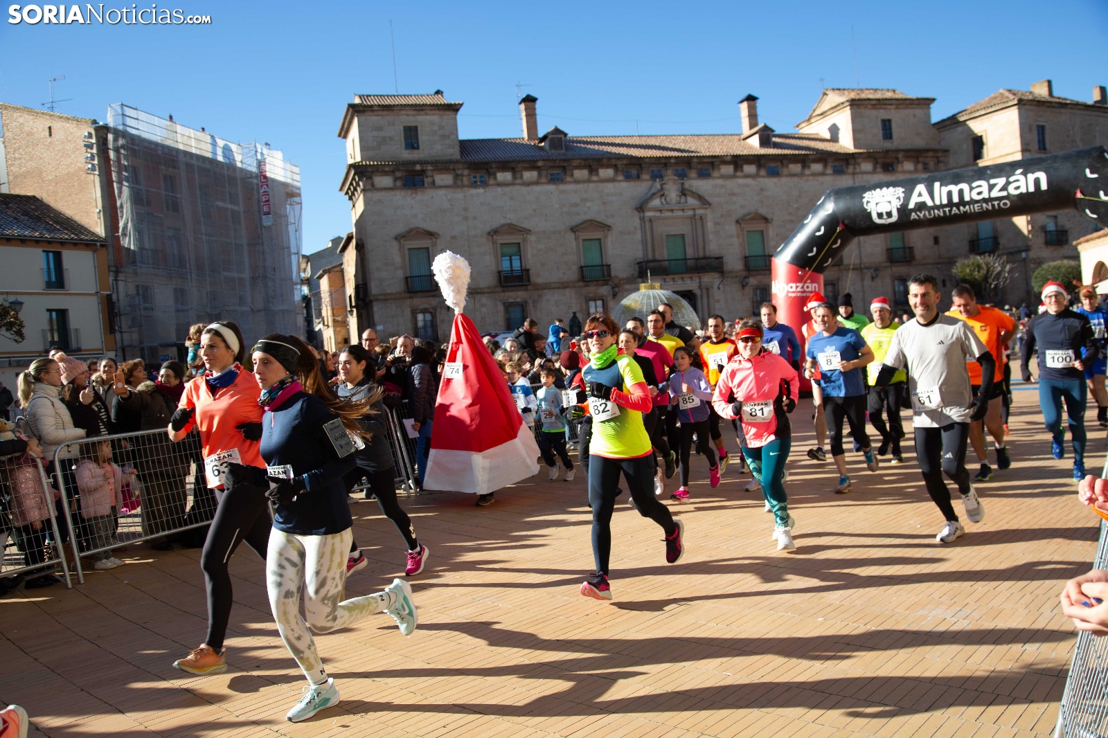 La Carrera de Navidad de Almazán ha congregado esta mañana a centenares de participantes. Los adnamantinos, que ayer también disfrutaron del 'Feliz Torrezno Nuevo' en su Plaza Mayor, se han echado a la calle para participar en una prueba habitual en estas fechas en su localidad. El buen ambiente y los disfraces no han faltado para despedir el 2024.