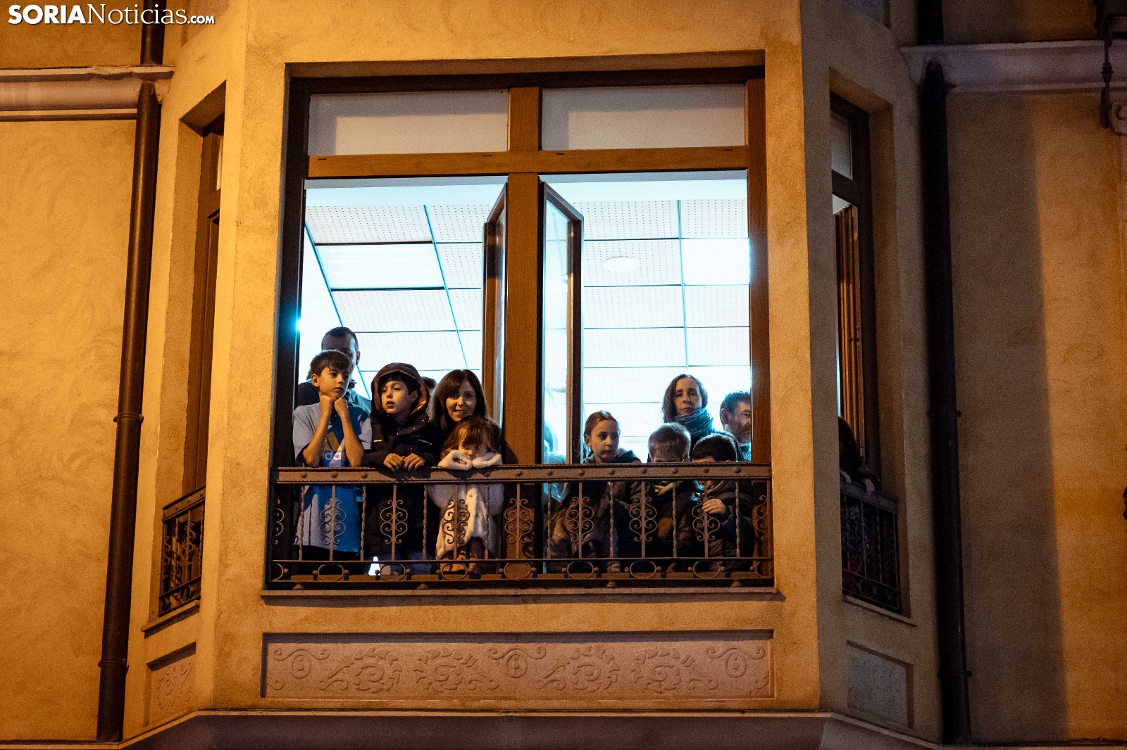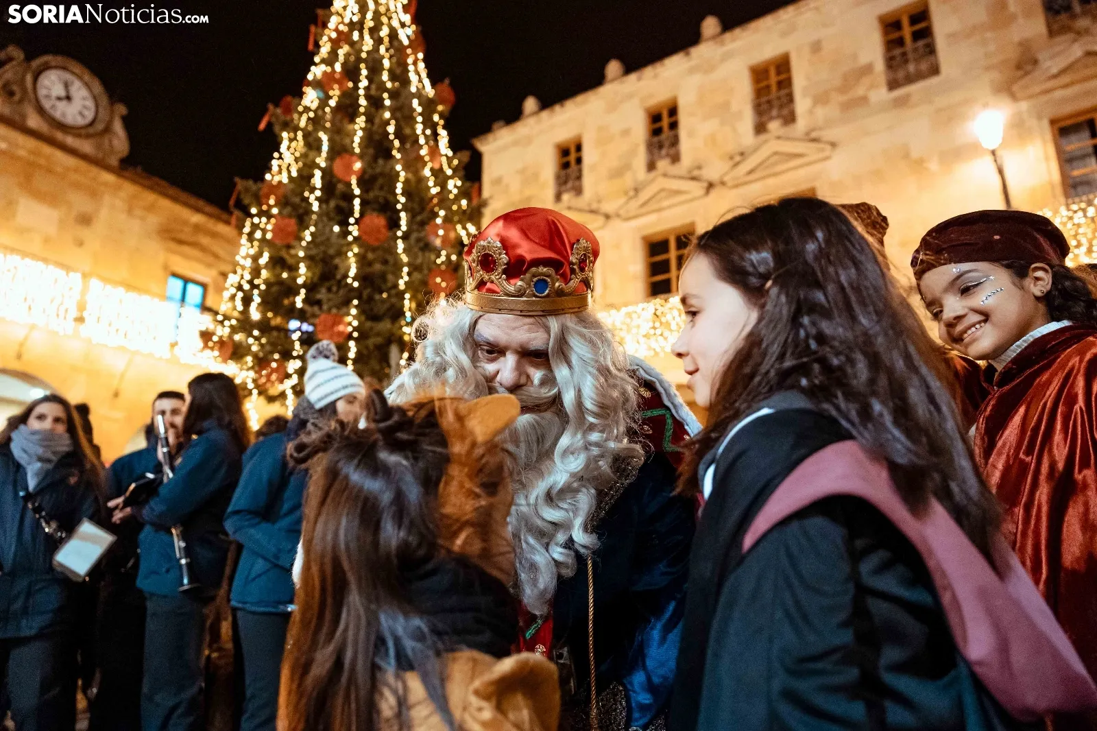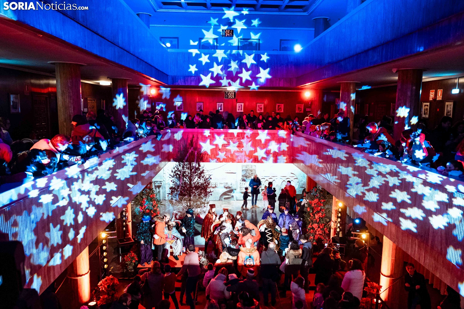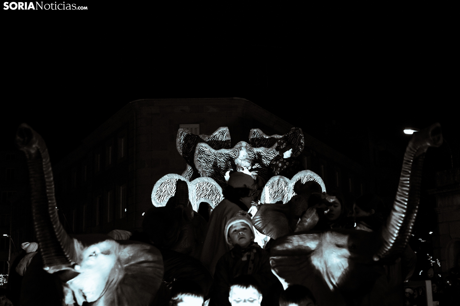 Seis carrozas, grupos de animación, animales, dulzainas, fuego, bomberos, clubs deportivos, la Banda Municipal de Música y cientos de niños a pie han formado la comitiva que ha dado la bienvenida a los Reyes Magos de Oriente en su llegada a Soria. Melchor, Gaspar y Baltasar han recorrido las prinicipales calles de la capital para llegar a la plaza Mayor donde han mostrado sus respetos y entregado sus presentes en el Belén. Por el camino, gritos, nervios, algún llanto y casi 3.000 kilos de caramelos han acompañado uno de los momentos más mágicos y emotivos del año. Ahora, todos a dormir y los Reyes a trabajar.