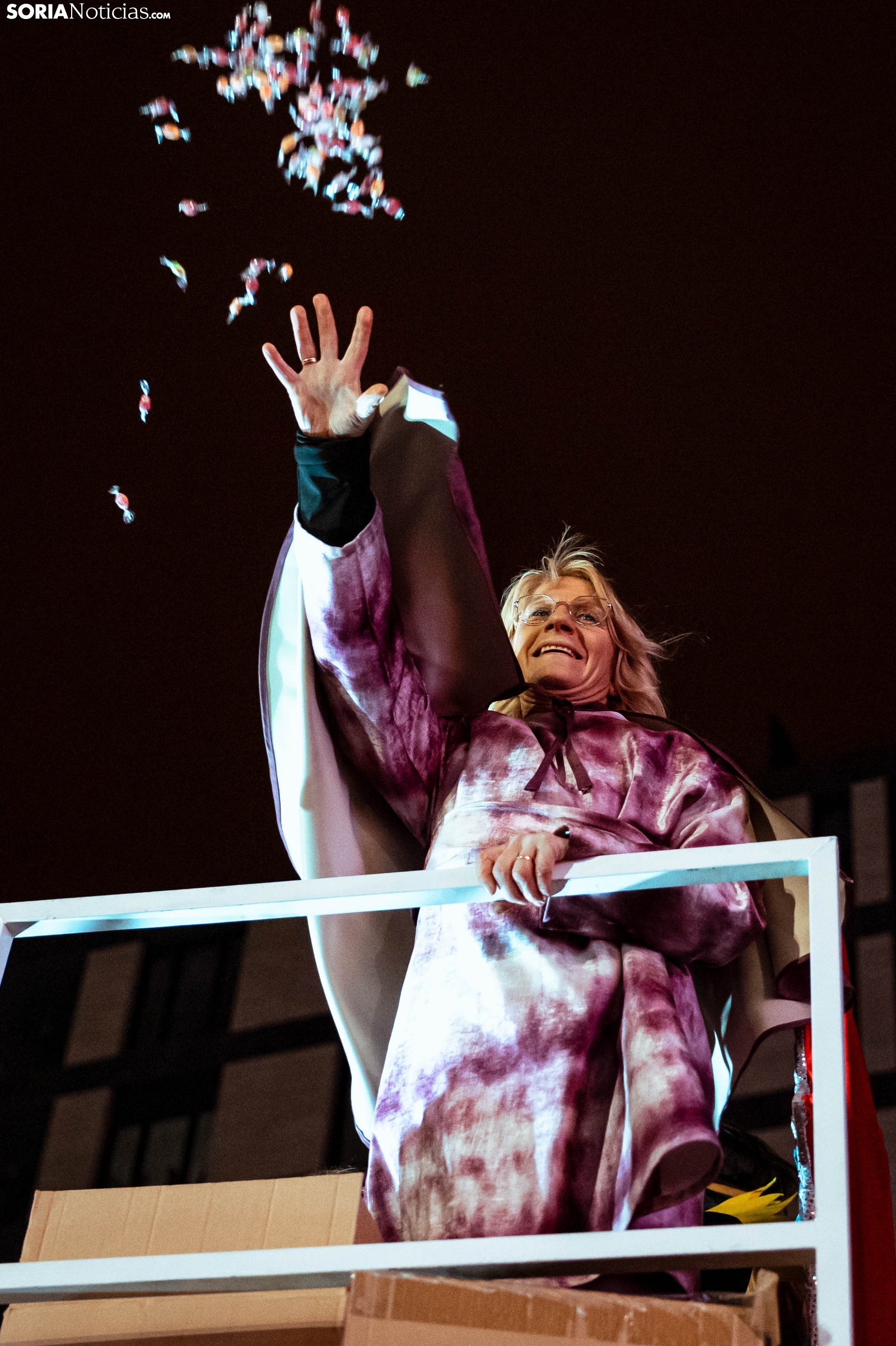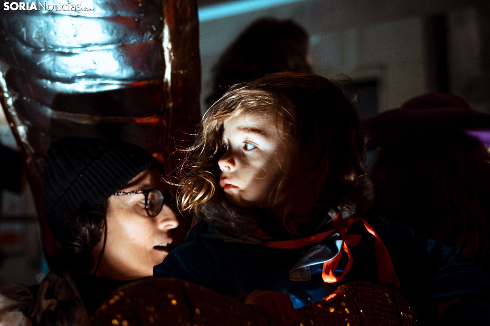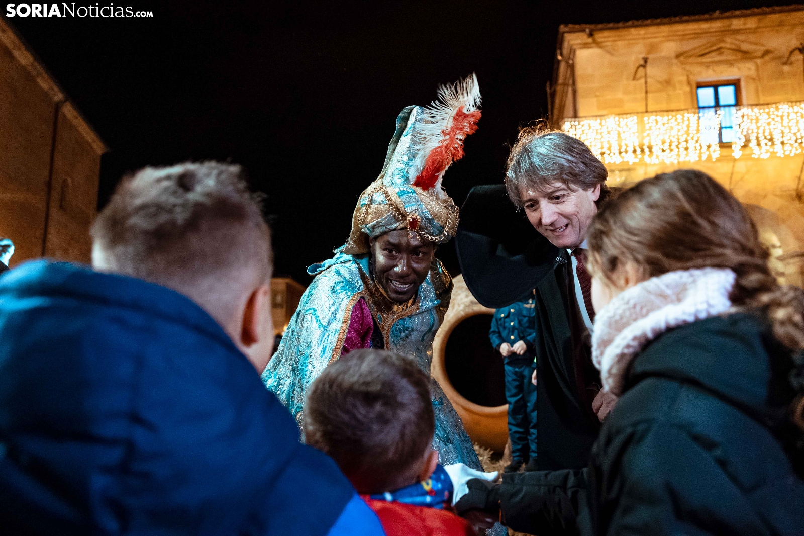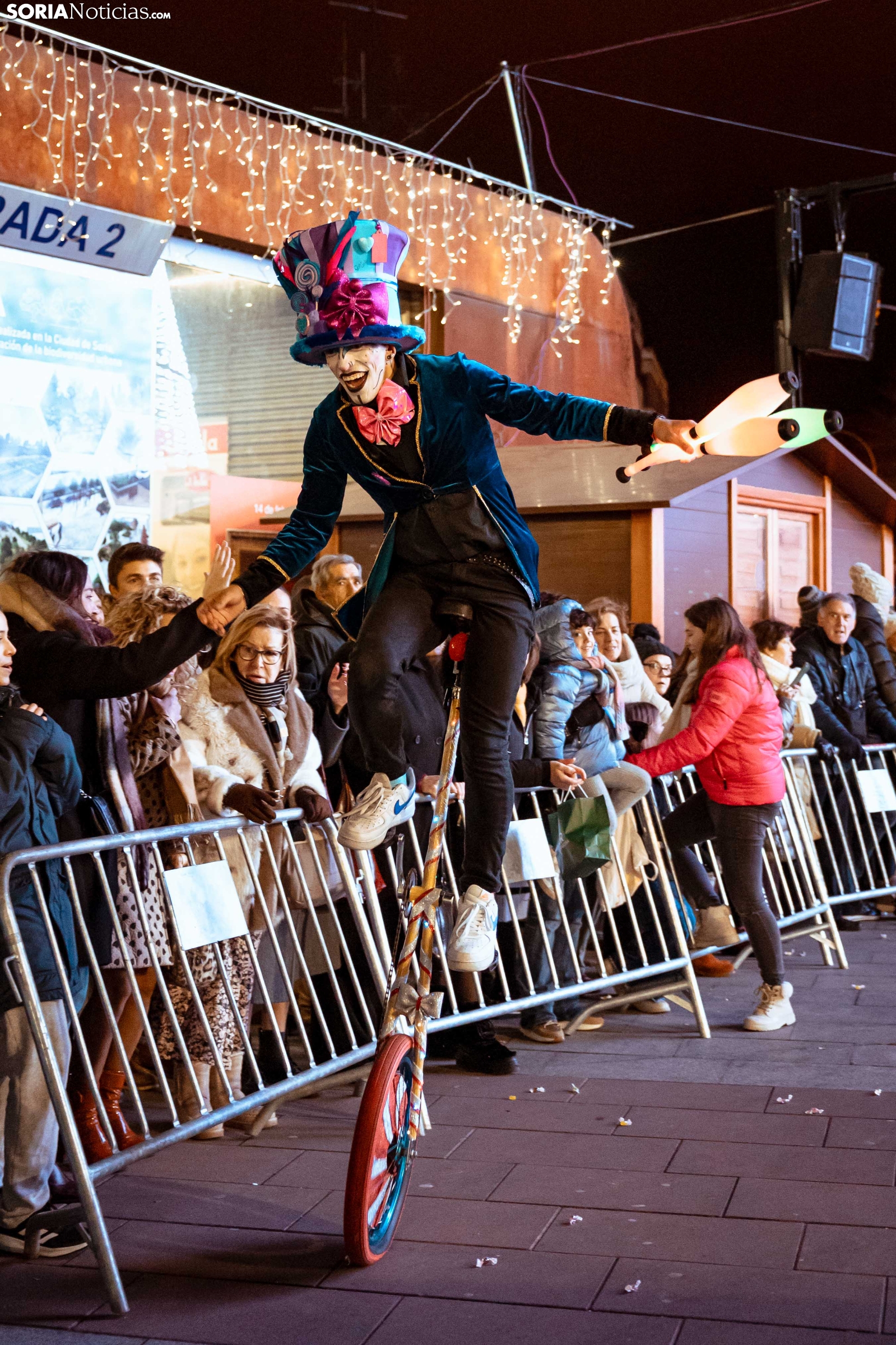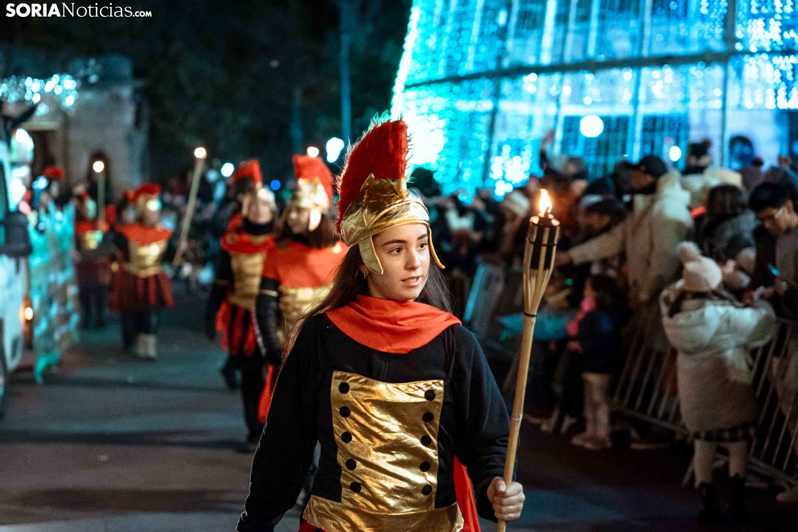 Seis carrozas, grupos de animación, animales, dulzainas, fuego, bomberos, clubs deportivos, la Banda Municipal de Música y cientos de niños a pie han formado la comitiva que ha dado la bienvenida a los Reyes Magos de Oriente en su llegada a Soria. Melchor, Gaspar y Baltasar han recorrido las prinicipales calles de la capital para llegar a la plaza Mayor donde han mostrado sus respetos y entregado sus presentes en el Belén. Por el camino, gritos, nervios, algún llanto y casi 3.000 kilos de caramelos han acompañado uno de los momentos más mágicos y emotivos del año. Ahora, todos a dormir y los Reyes a trabajar.