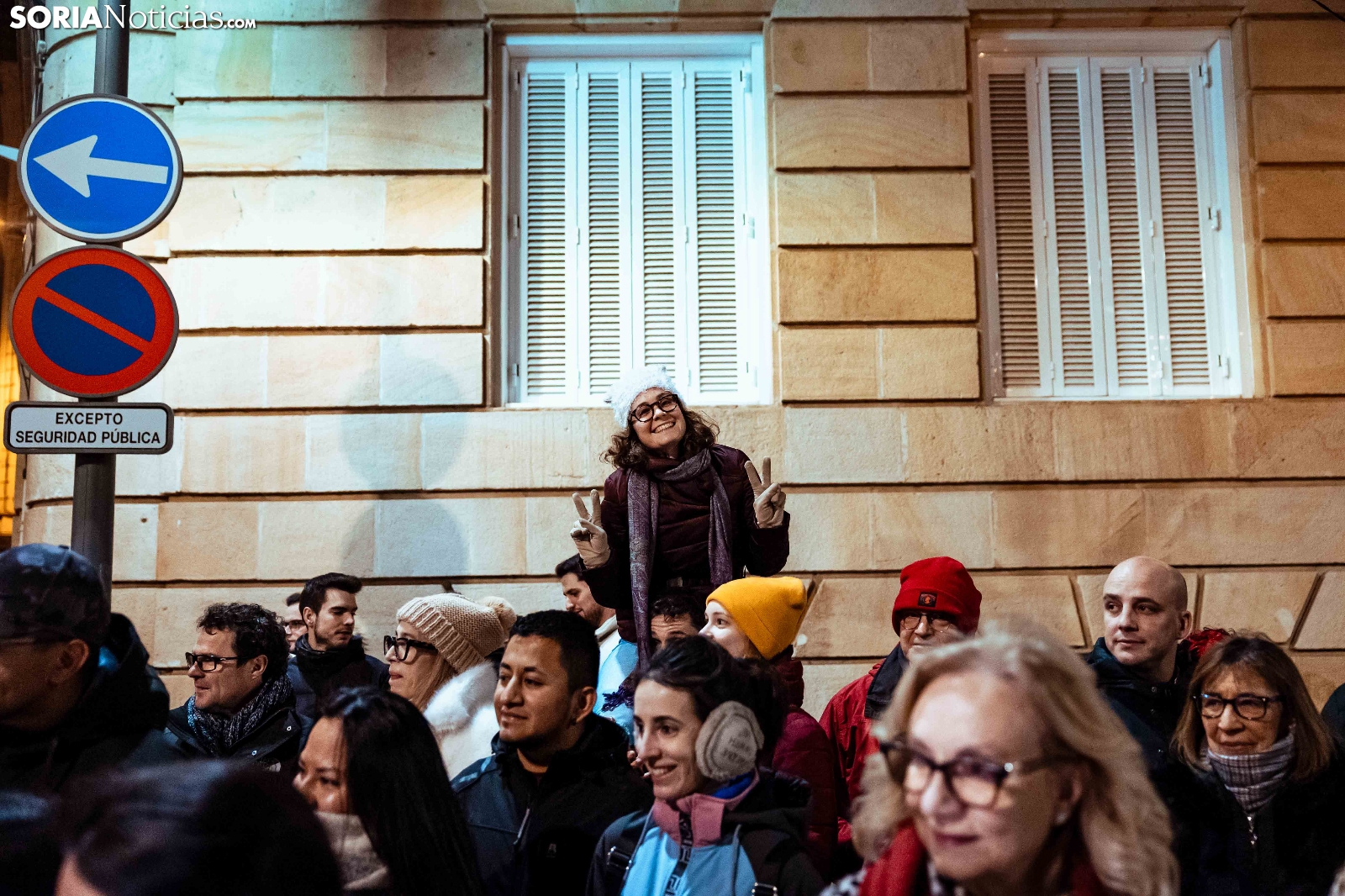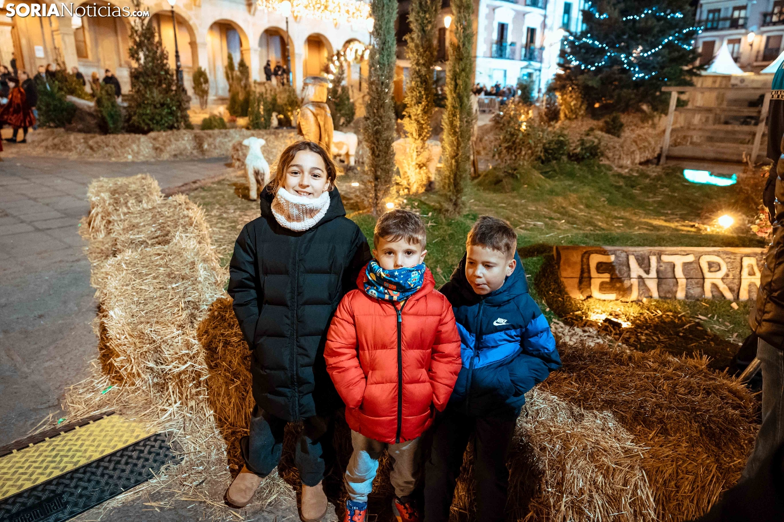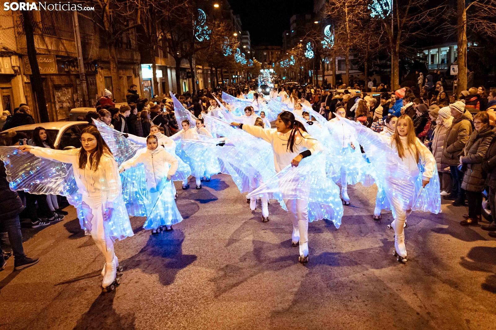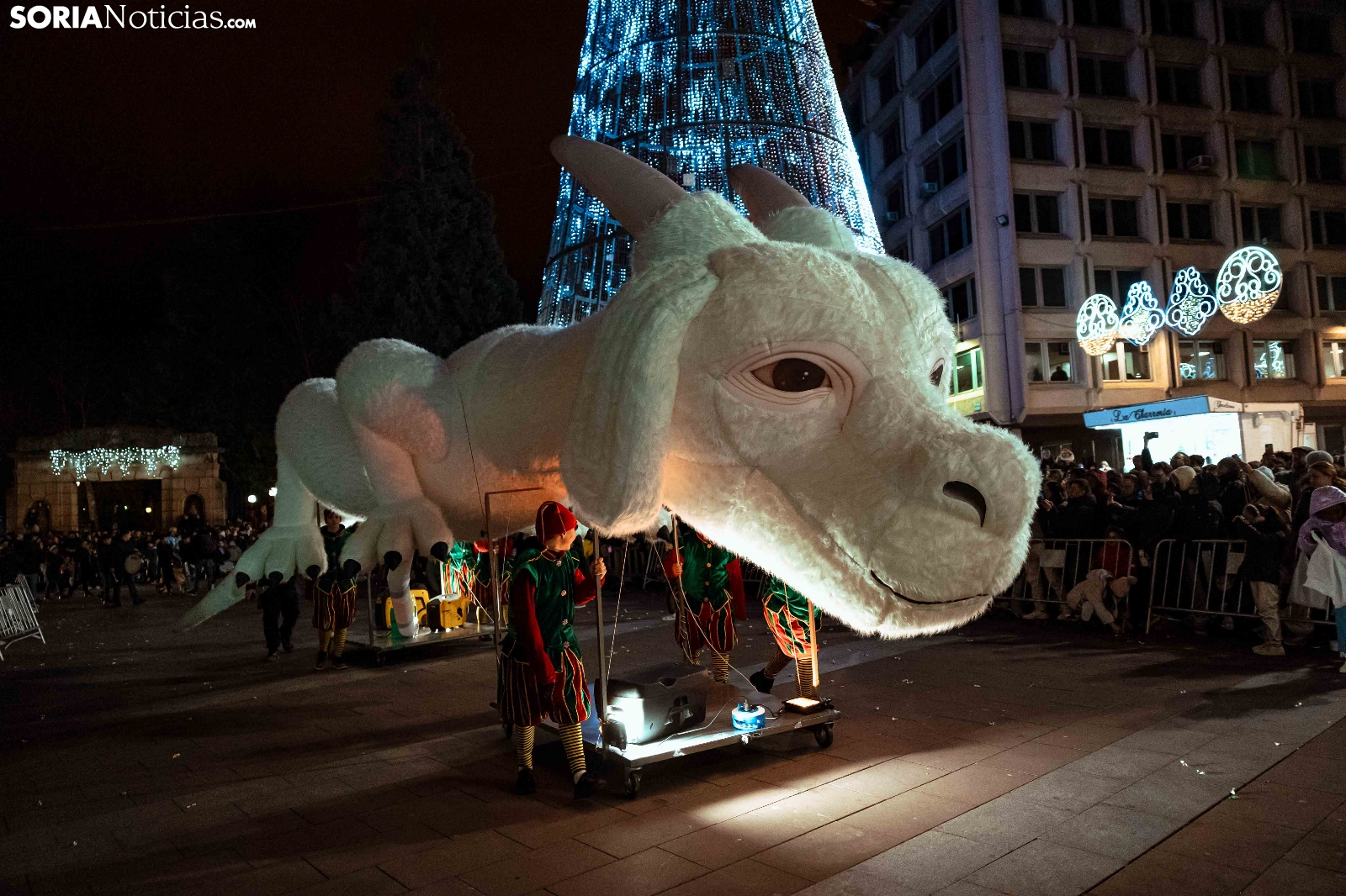 Seis carrozas, grupos de animación, animales, dulzainas, fuego, bomberos, clubs deportivos, la Banda Municipal de Música y cientos de niños a pie han formado la comitiva que ha dado la bienvenida a los Reyes Magos de Oriente en su llegada a Soria. Melchor, Gaspar y Baltasar han recorrido las prinicipales calles de la capital para llegar a la plaza Mayor donde han mostrado sus respetos y entregado sus presentes en el Belén. Por el camino, gritos, nervios, algún llanto y casi 3.000 kilos de caramelos han acompañado uno de los momentos más mágicos y emotivos del año. Ahora, todos a dormir y los Reyes a trabajar.