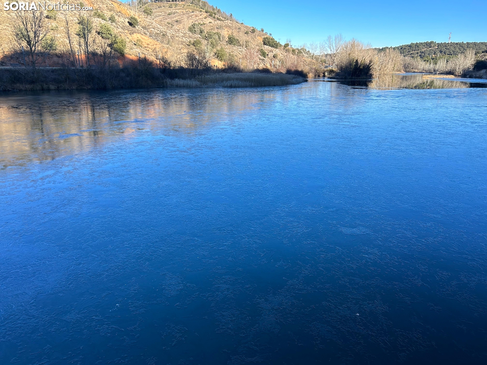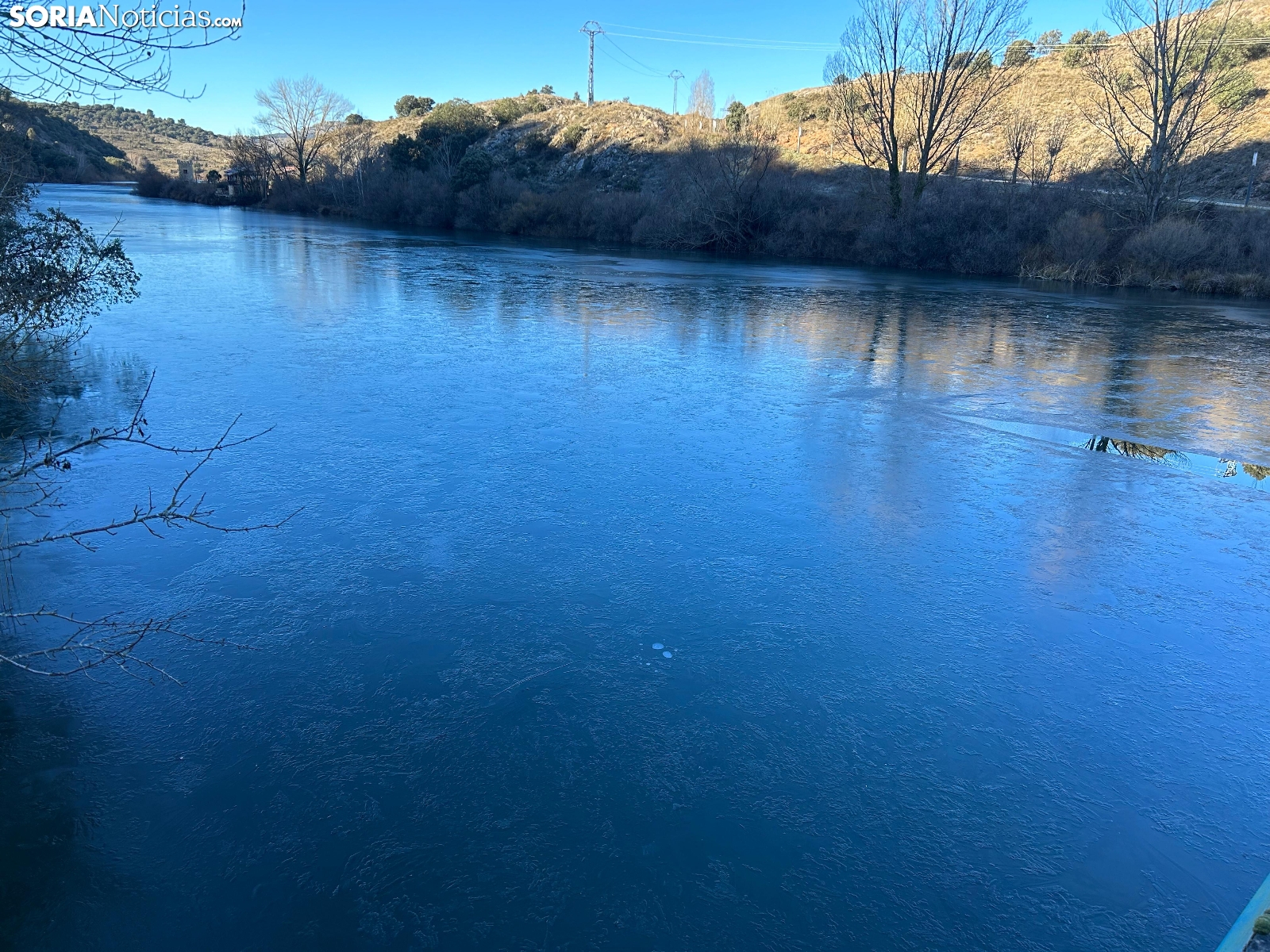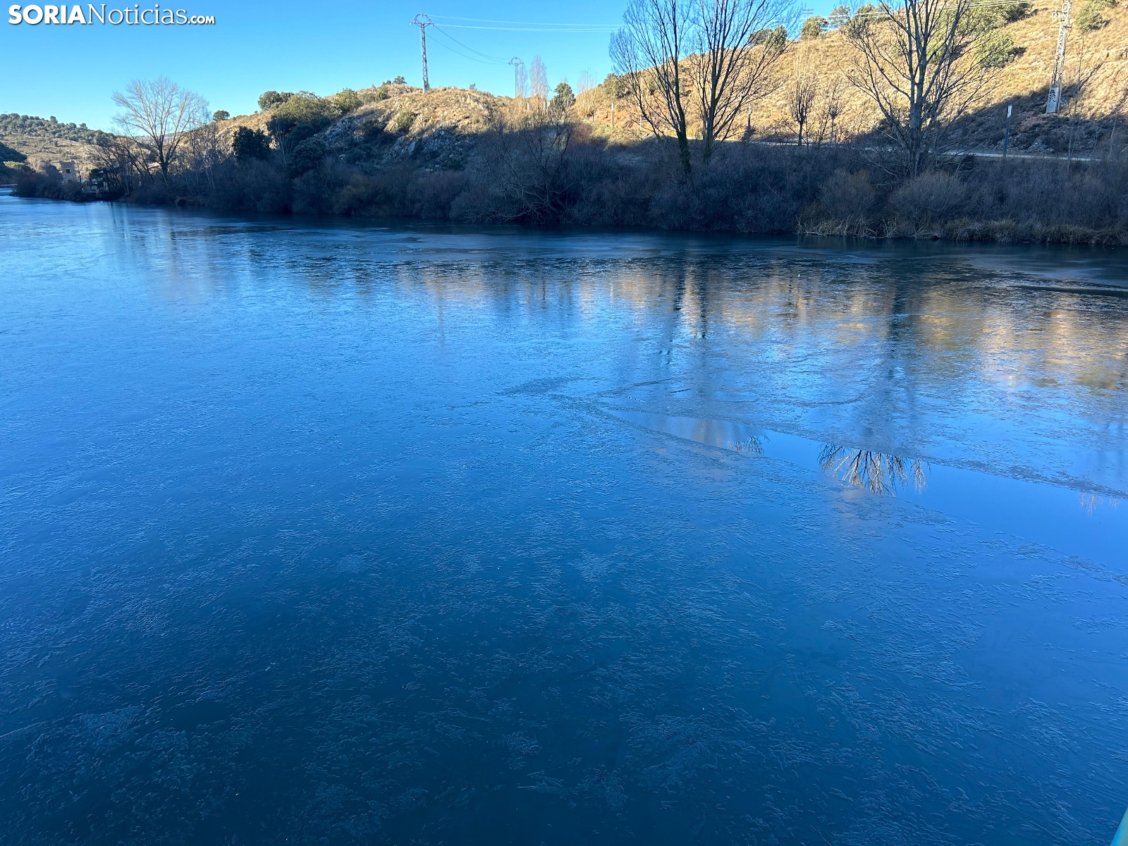 Las bajas temperaturas nocturnas y de madrugada que vive Soria capital, al igual que el resto de la provincia han hecho que el Duero a su paso por la ciudad muestre hoy su superficie helada, pese a que la mínima de hoy ha sido menor que la de días anteriores, con 3,4ºC.