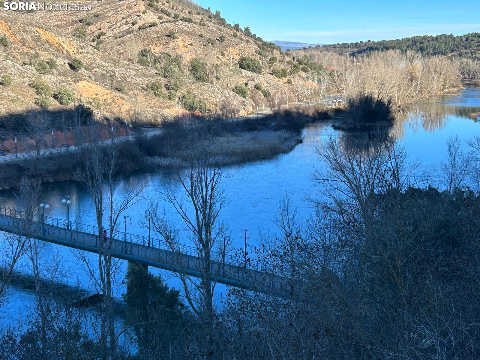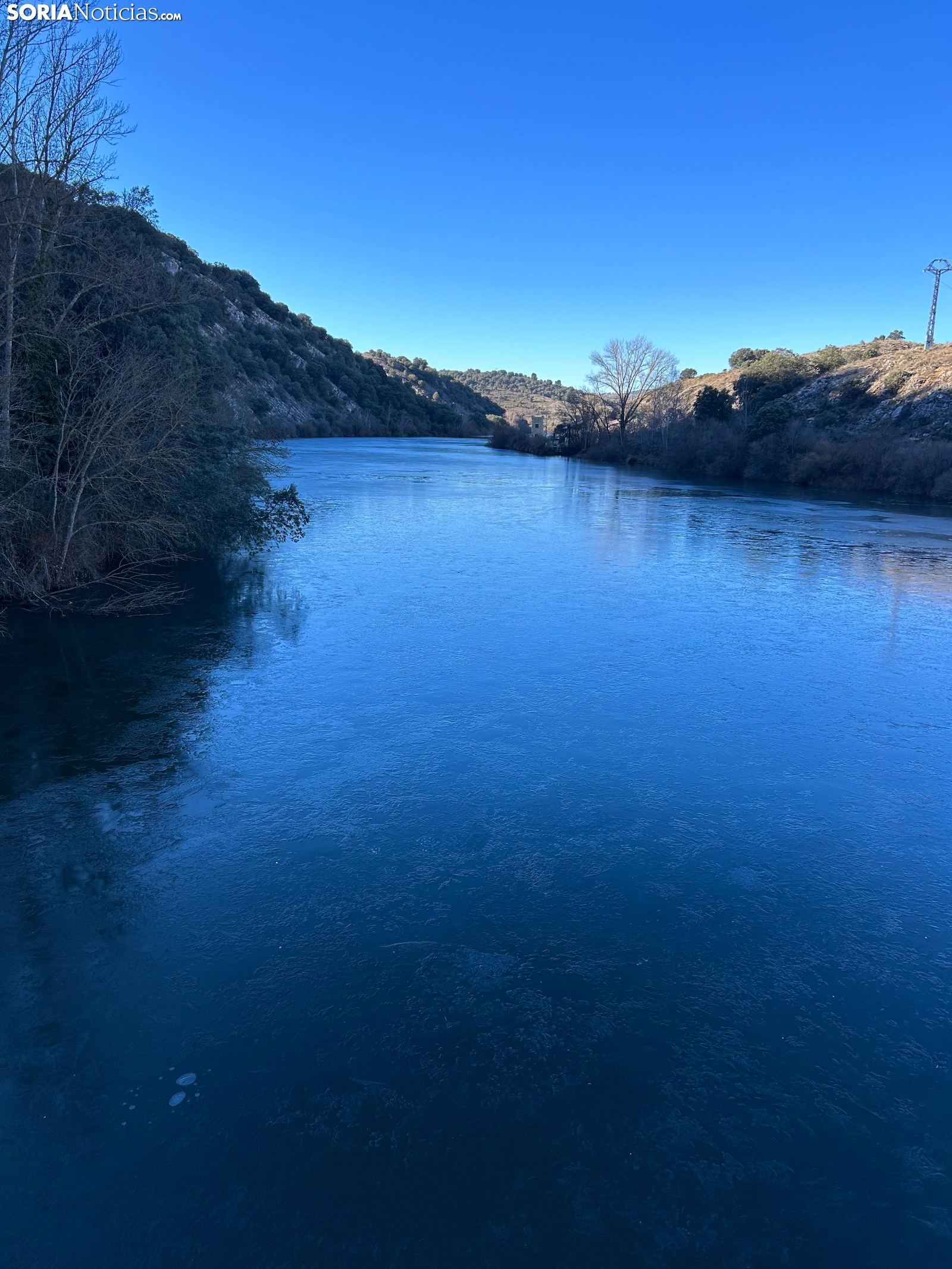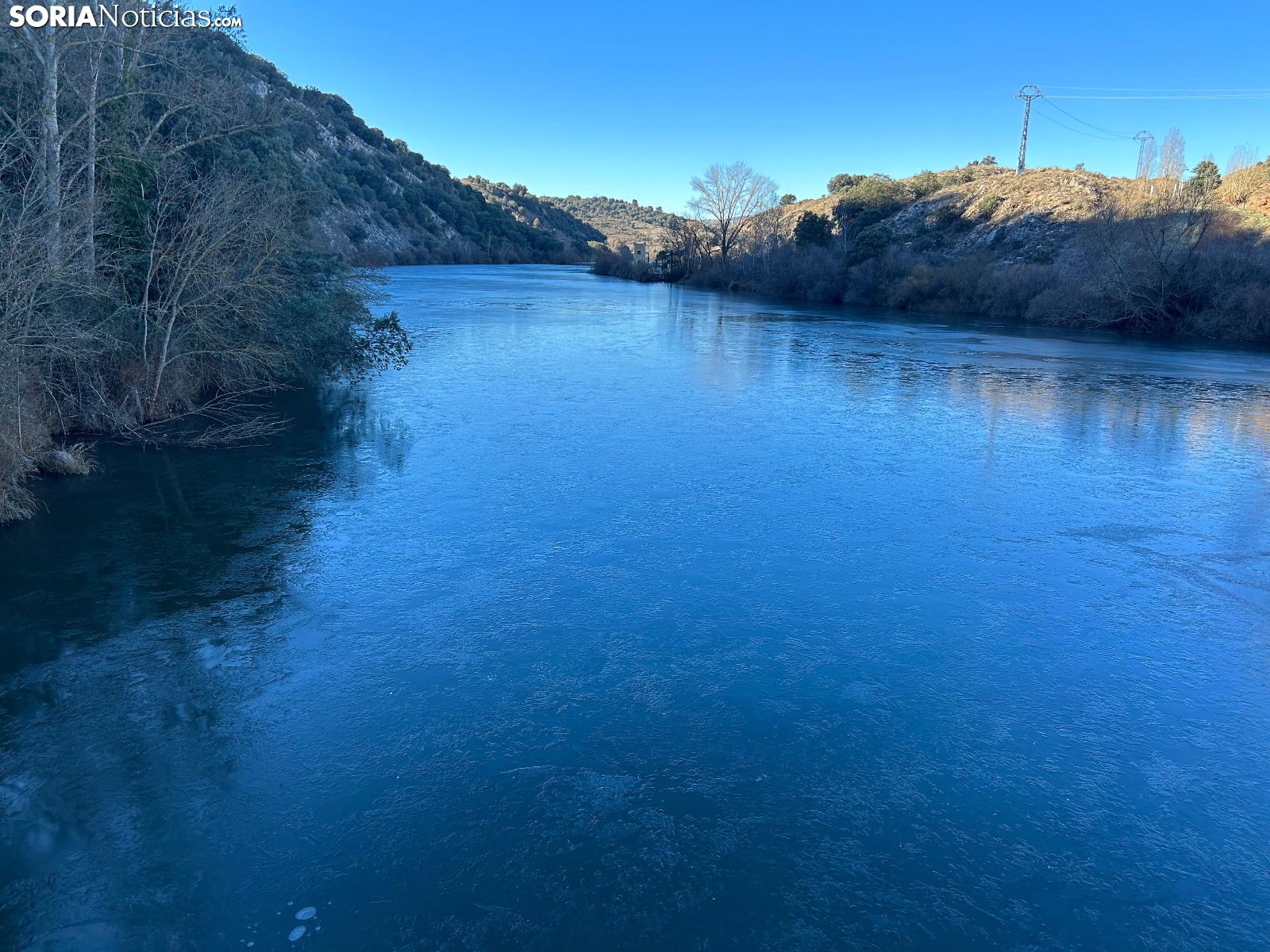 Las bajas temperaturas nocturnas y de madrugada que vive Soria capital, al igual que el resto de la provincia han hecho que el Duero a su paso por la ciudad muestre hoy su superficie helada, pese a que la mínima de hoy ha sido menor que la de días anteriores, con 3,4ºC.