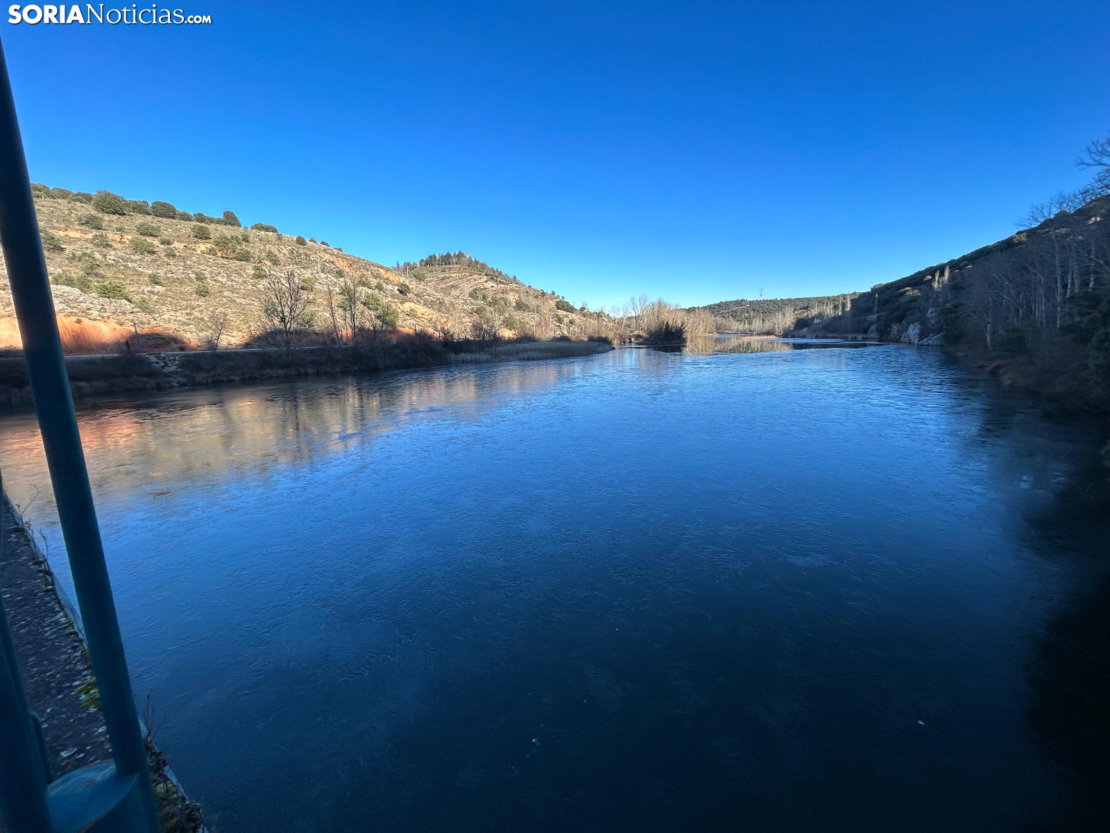 El lecho del río, al permanecer en su mayoría en zonas con sombra hace que el sol no llegue a calentar el paso del agua, lo que lleva a que ofrezca una imagen detenida, como un espejo azulado, jalonada por una vegetación escarchada en una buena parte de su cauce, como puede ser apreciado en las imágenes que acompañan a esta información.