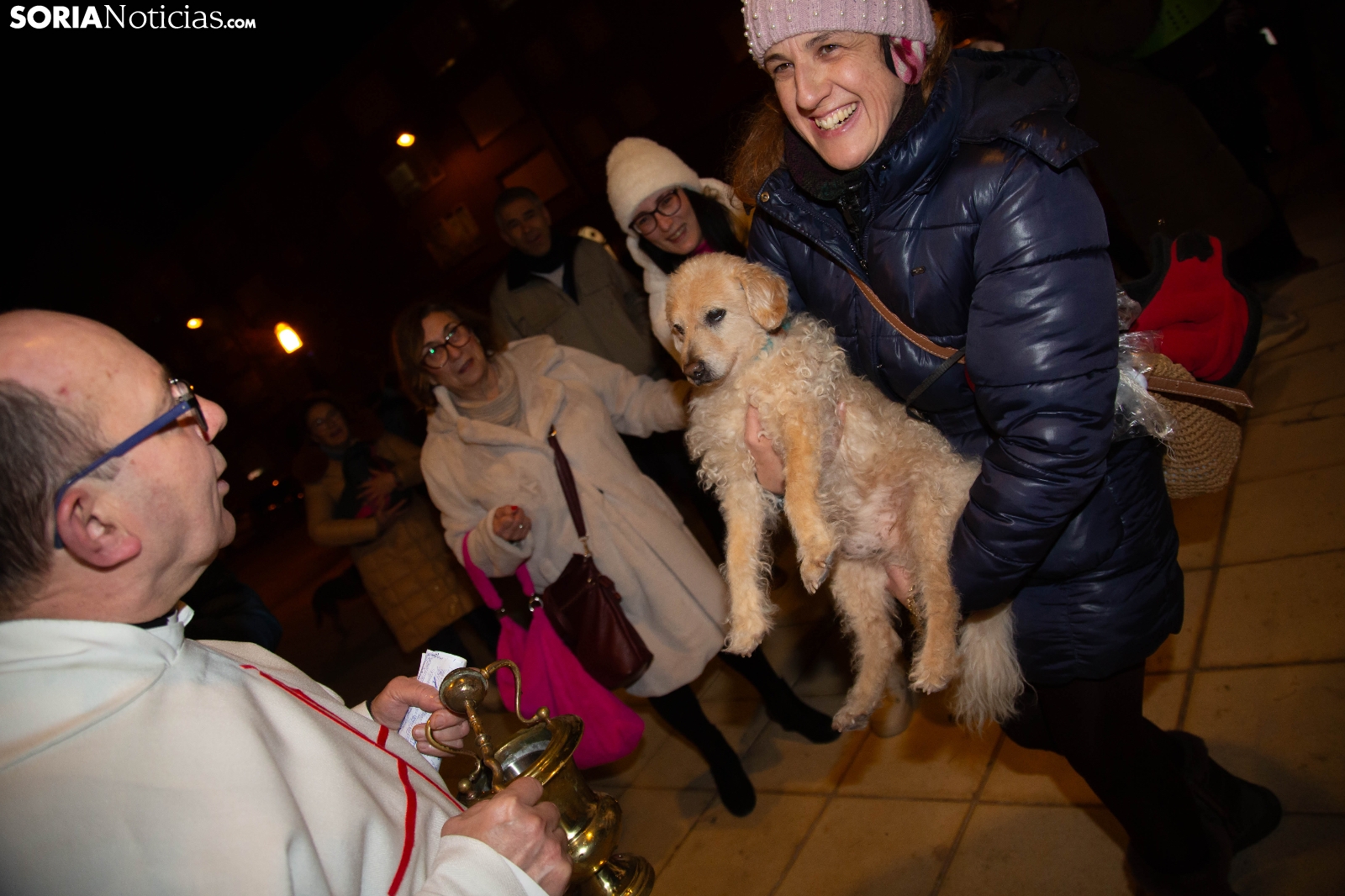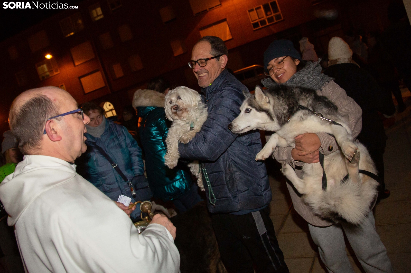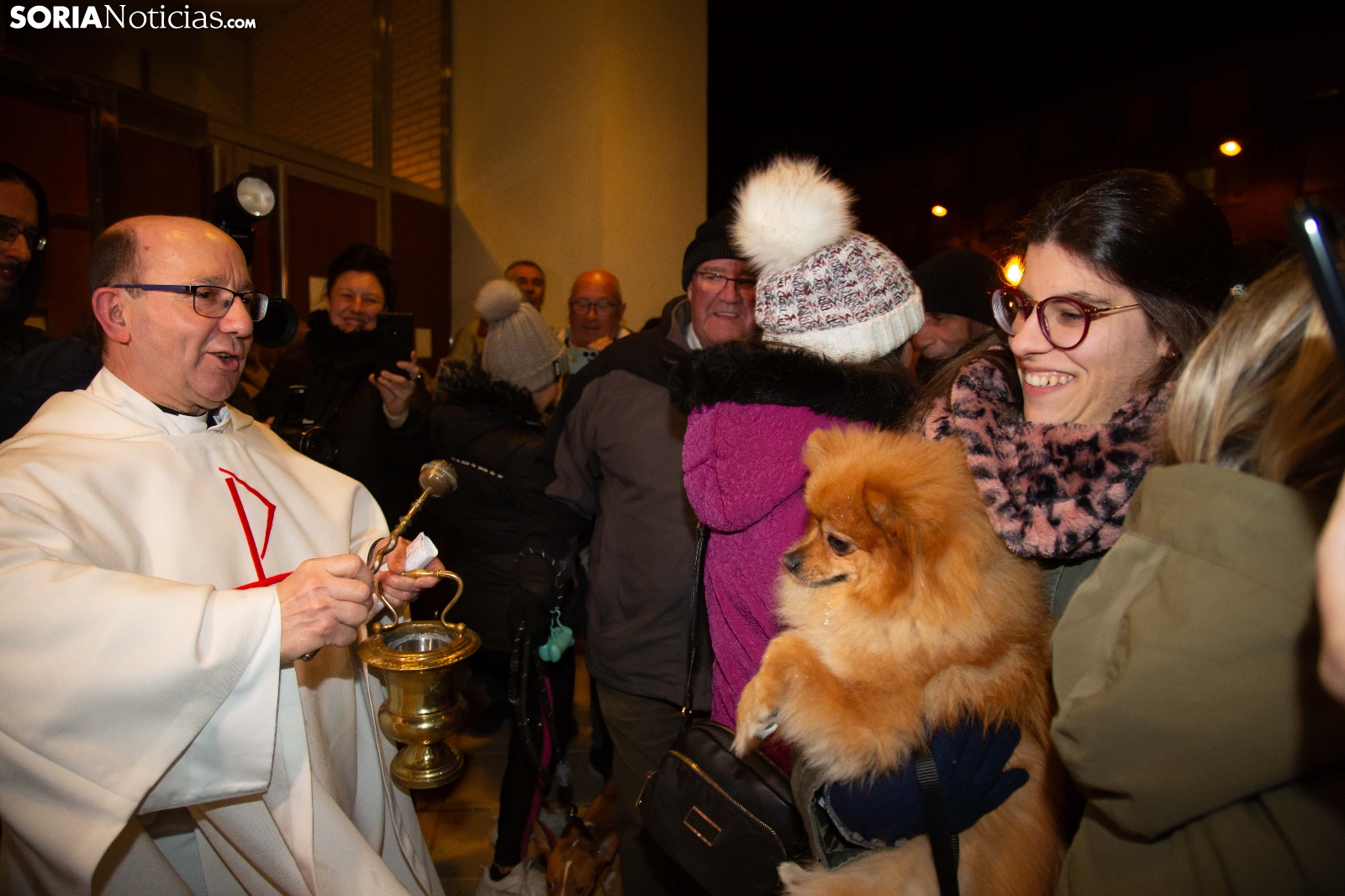 Decenas de sorianos han acudido hoy al entorno de la iglesia de Santa Bárbará para que el párroco de la misma bendijera a sus mascotas. En su mayoría perros, todos los animales de la ciudad estaban llamado a una festividad y una vieja tradición que se celebra en la jornada de San Antón, patrón de las mascotas.