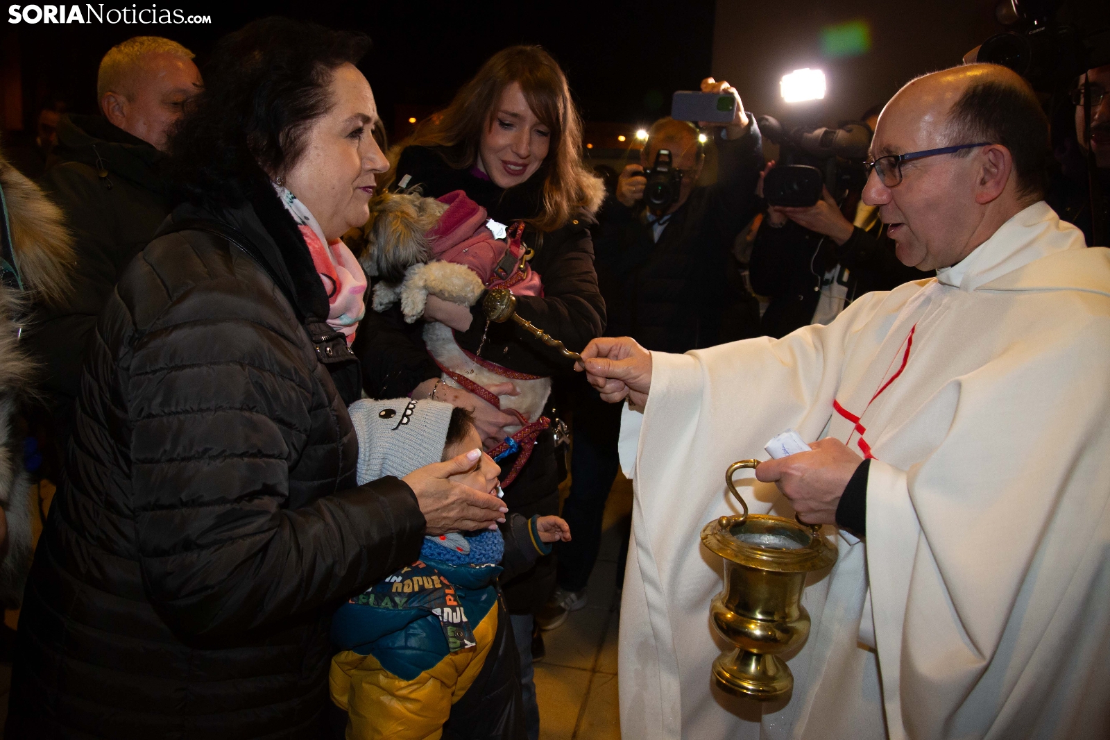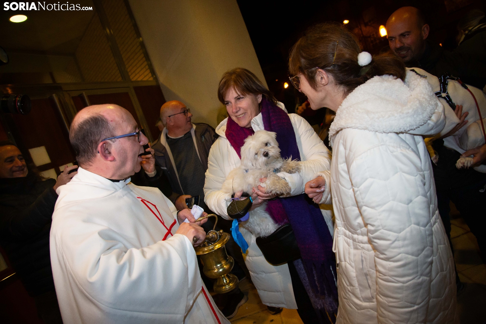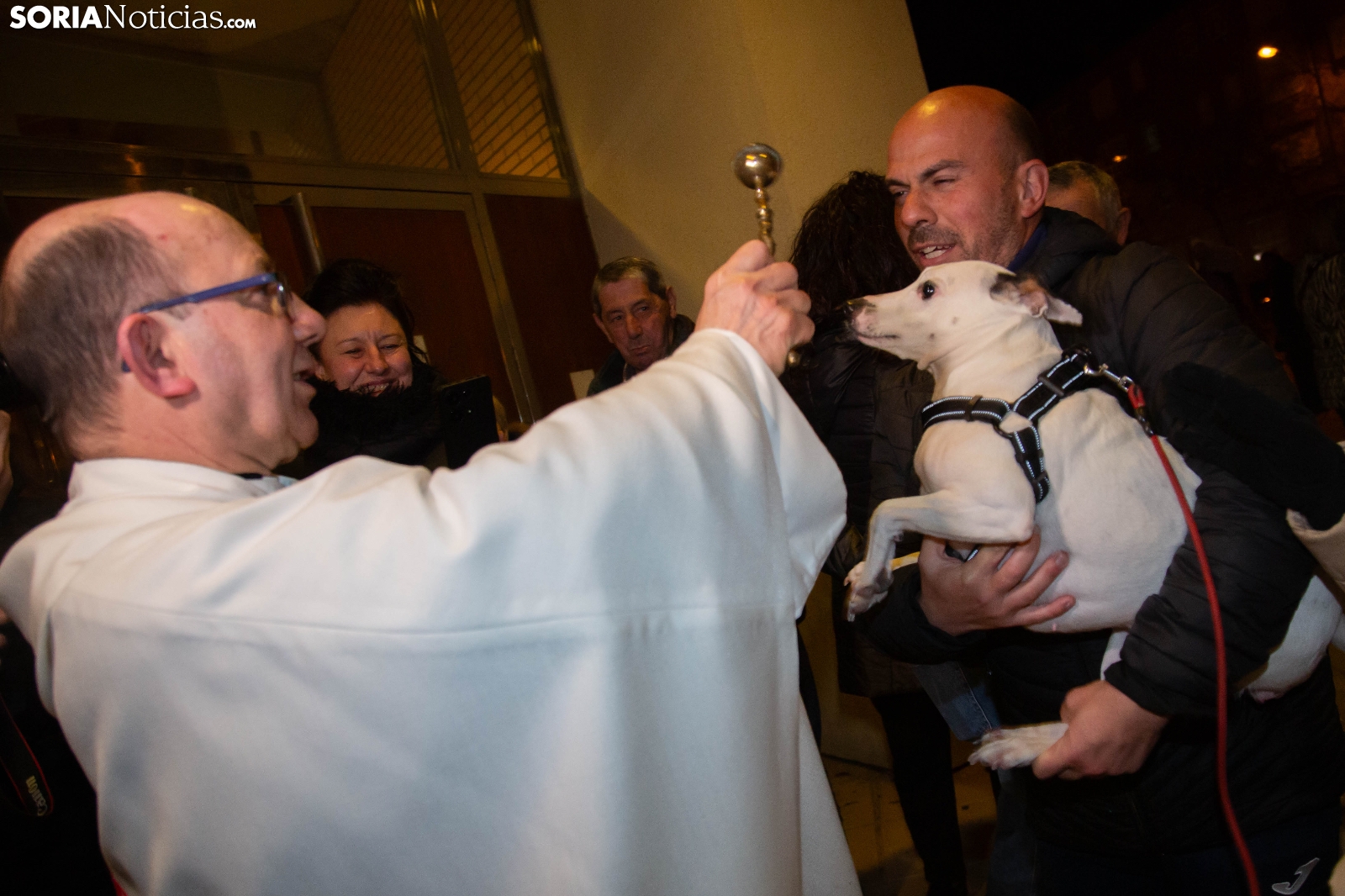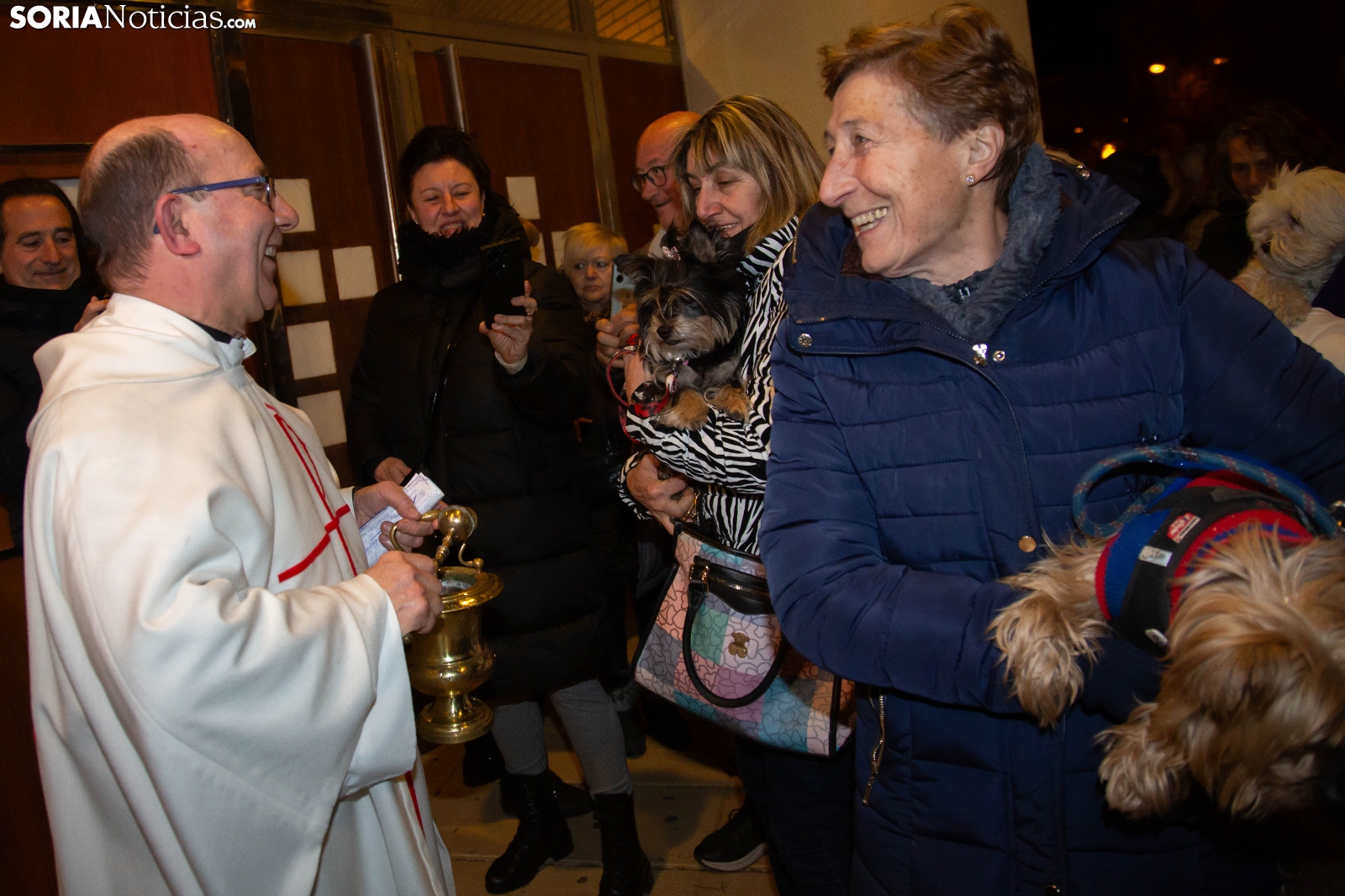Decenas de sorianos han acudido hoy al entorno de la iglesia de Santa Bárbará para que el párroco de la misma bendijera a sus mascotas. En su mayoría perros, todos los animales de la ciudad estaban llamado a una festividad y una vieja tradición que se celebra en la jornada de San Antón, patrón de las mascotas.