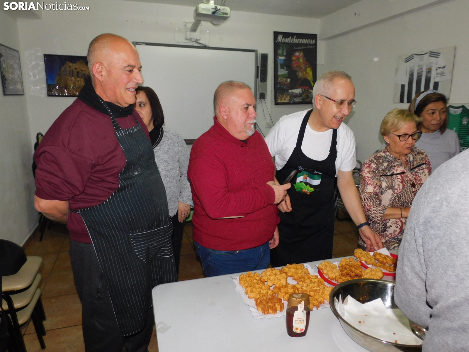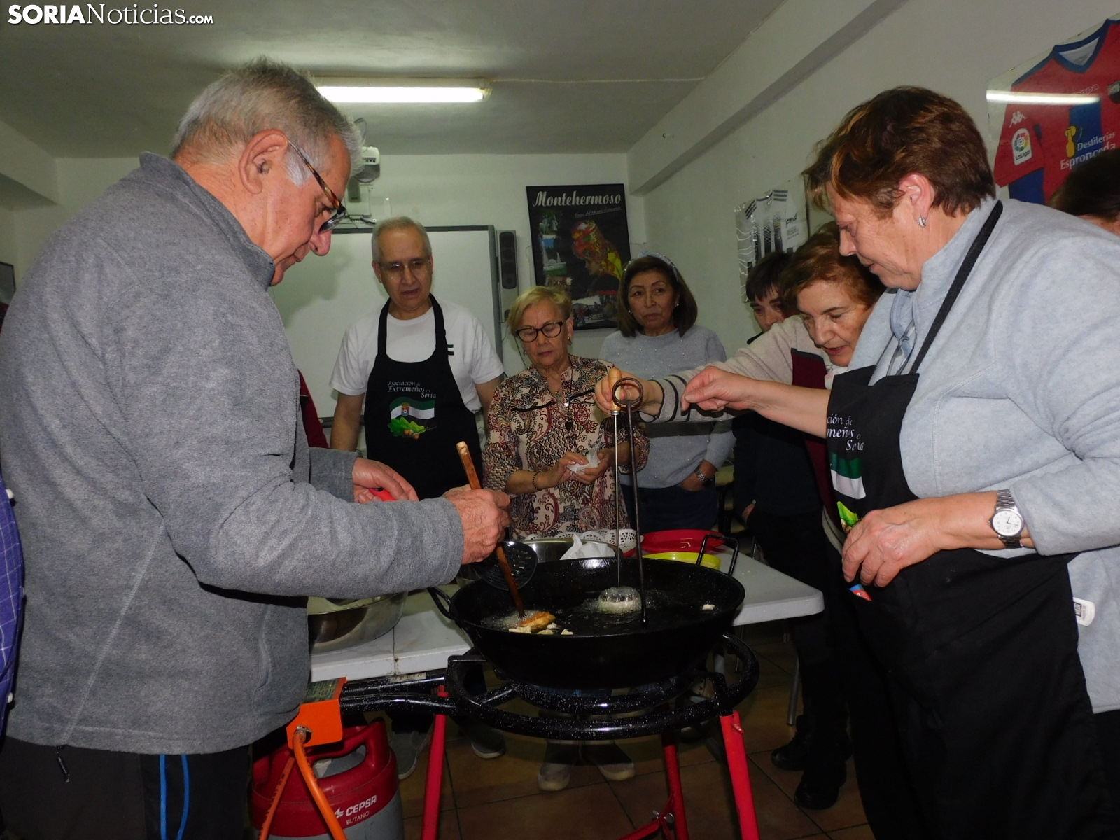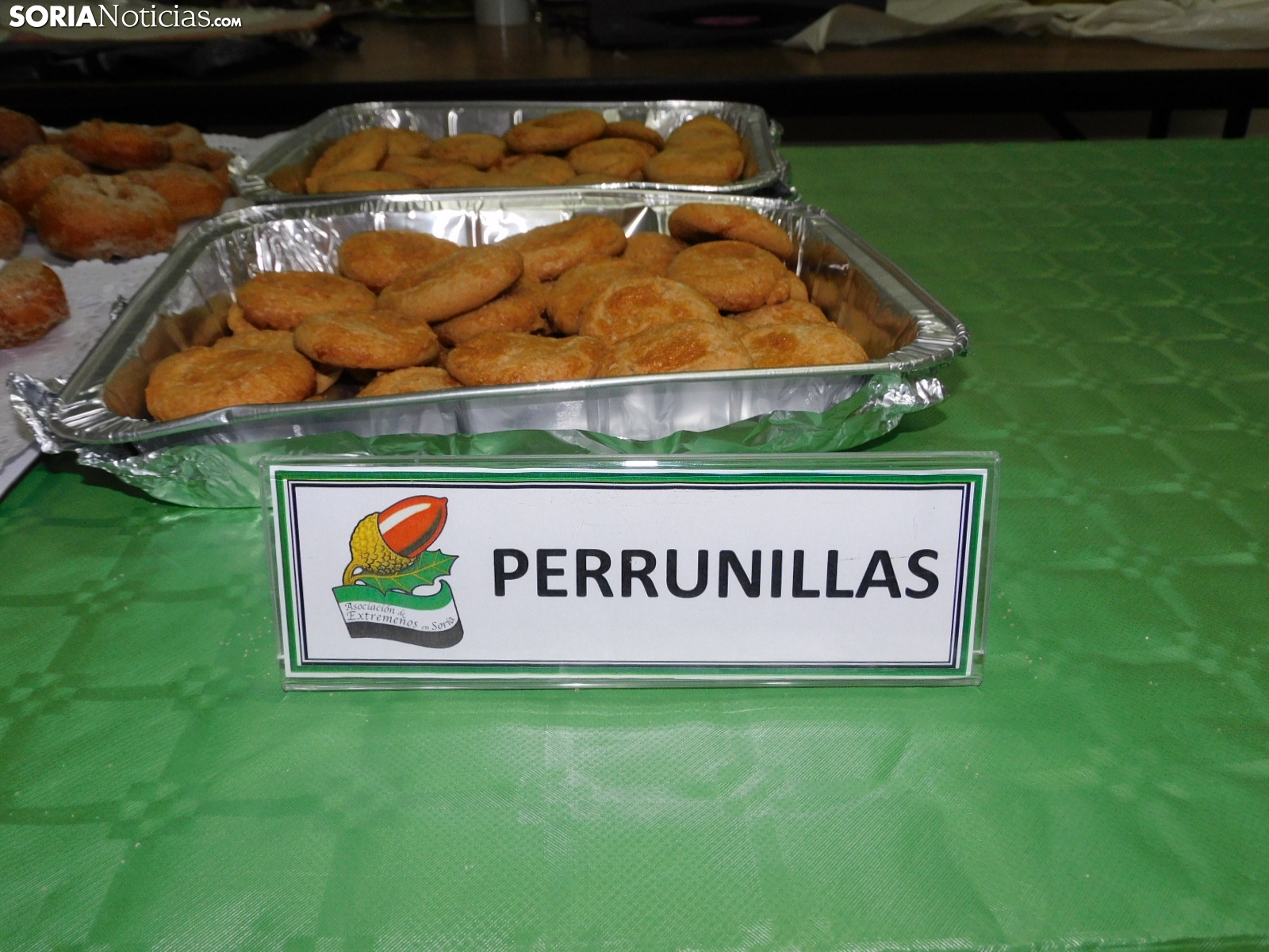 La Asociación de Extremeños en Soria ha celebrado esta tarde en su local una jornada de dulces extremeños. Varios de sus socios se han puesto el delantal para llevar a cabo diferentes tipos de elaboraciones como perrunillas, pestiños, tirabuzones o floretas. Gente de todas las edades no ha dudado en echar una mano con unos dulces que han conquistado a todos los sorianos que se han acercado hasta allí.