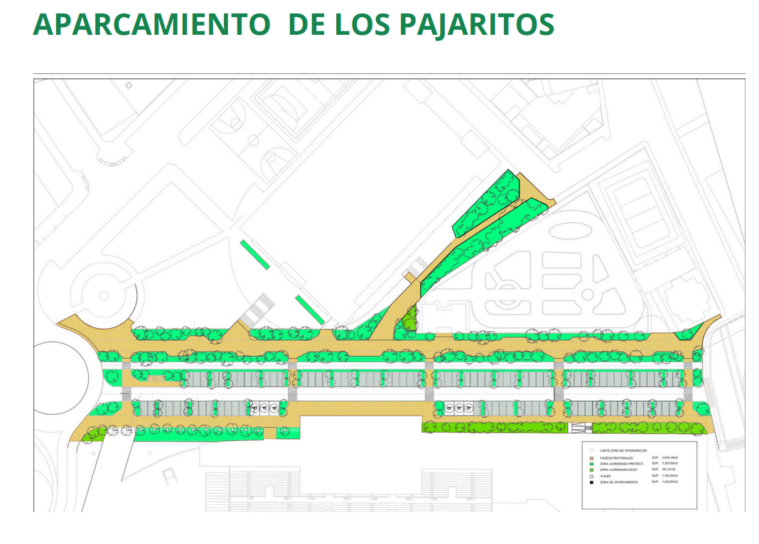 La renaturalización de Los Pajaritos permitirá “compatibilizar el uso de aparcamiento con el disfrute del espacio”, señala el alcalde. El objetivo es continuar con la trama urbana desde el parque hacia el pabellón, que también está inmerso en un proceso de ‘florecimiento’ de su fachada.