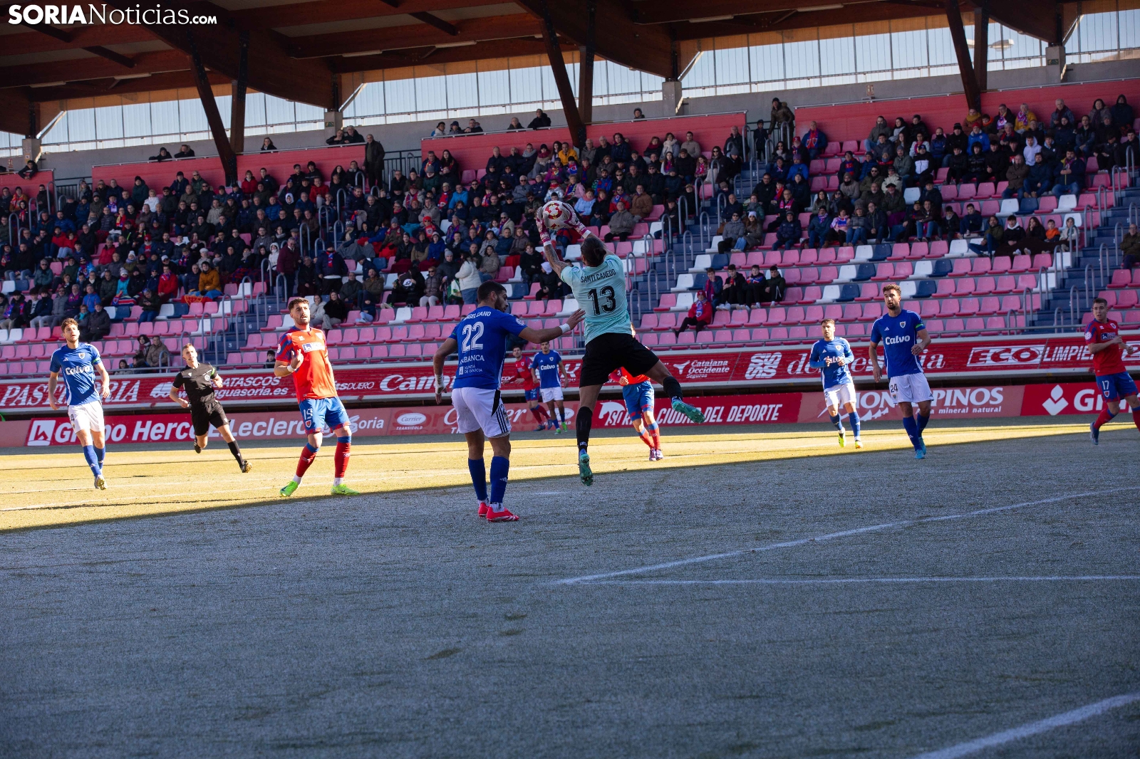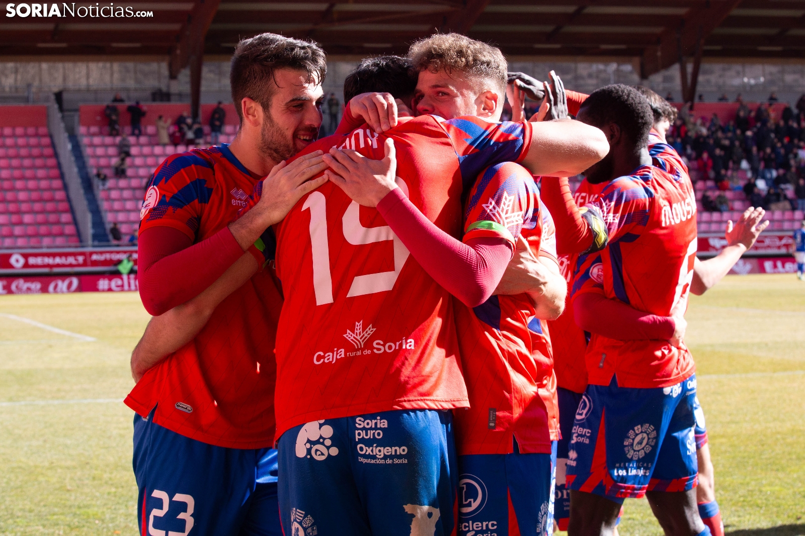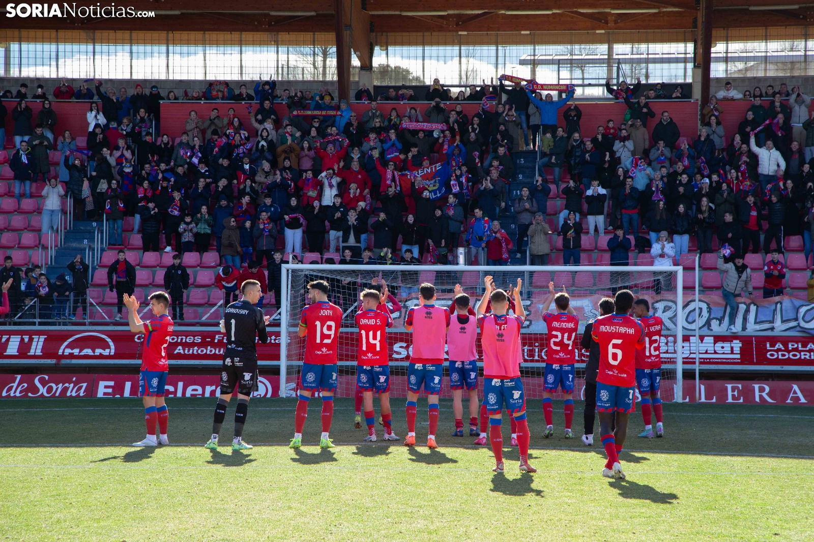 El Numancia ha vencido esta mañana al Bergantiños en un duelo muy igualado que se ha decidido en el tiempo de añadido. Jony ha hecho el 1-0 en el 90 con un gol de penalti que ha permitido a los rojillos asaltar el liderato de la clasificación tras la derrota del Pontevedra. Los 2276 espectadores que se han dado cita en Los Pajaritos han celebrado el triunfo por todo lo alto.