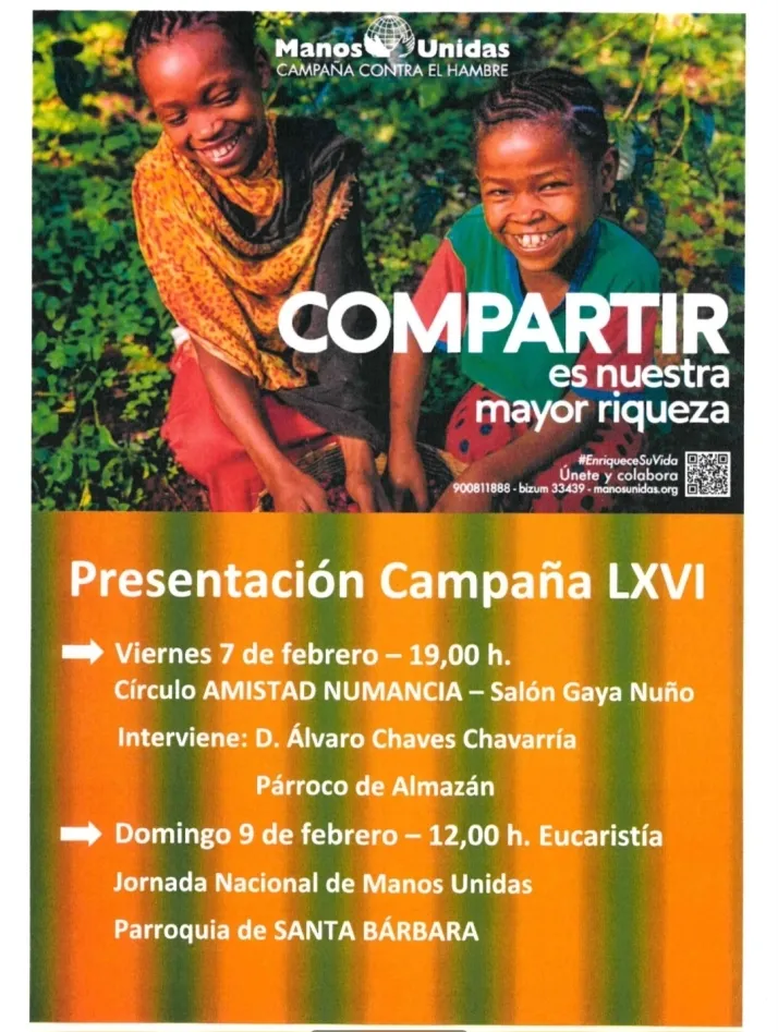 Este viernes, presentación de la campaña de Manos Unidas: 'Compartir es nuestra mayor riqueza'