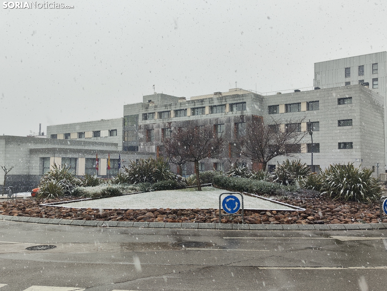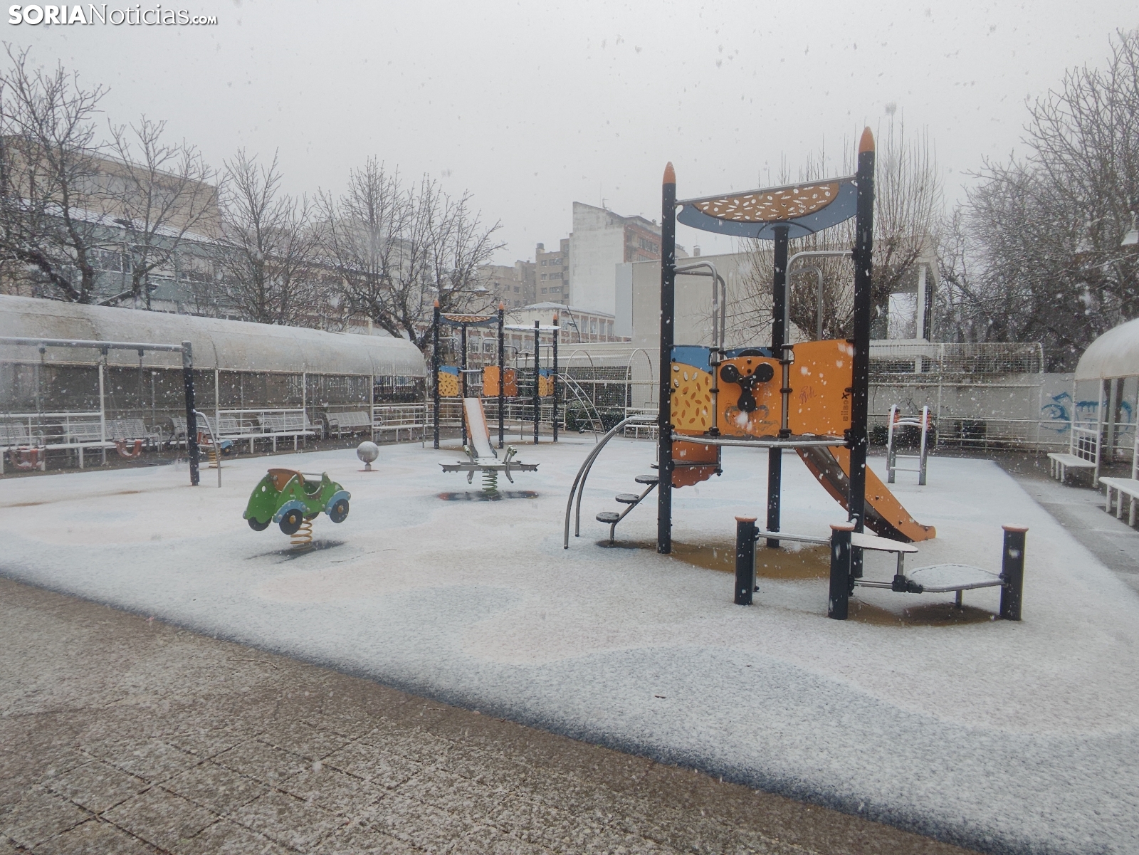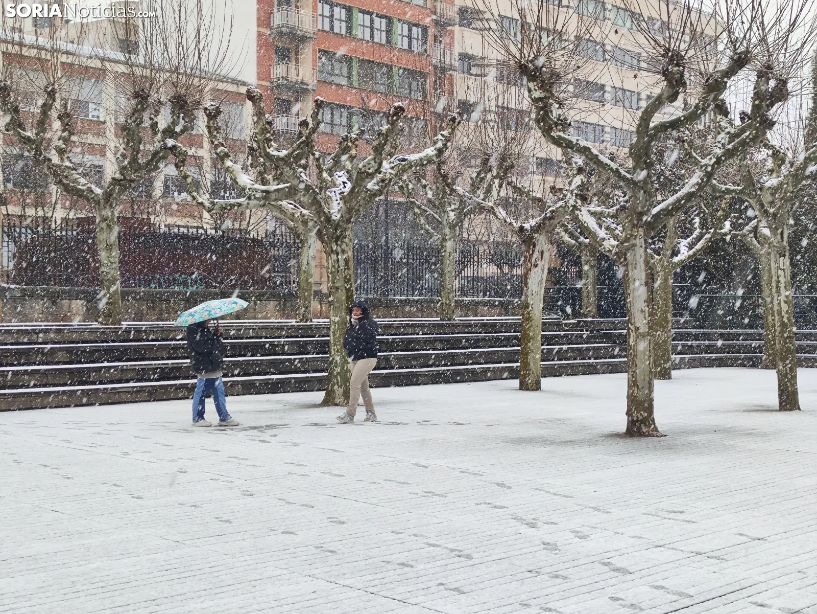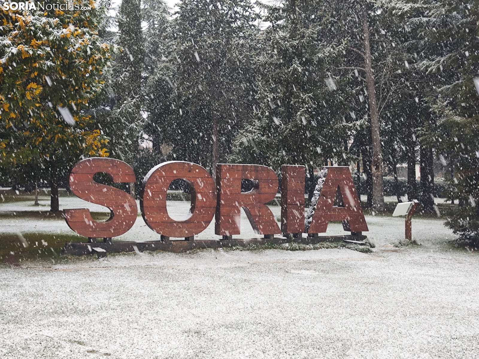 En el mediodía de este viernes 7 de febrero, la nieve que ya ha caído en algunos puntos de la provincia de Soria, especialmente en la zona de Pinares, también ha hecho presencia en Soria capital. A partir de las 14:00 los copos han comenzado a caer en la capital de manera copiosa y han cubierto tejados, vehículos y parques.