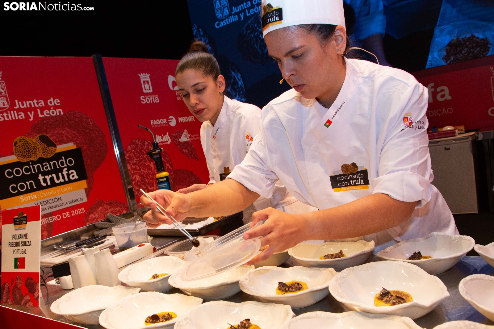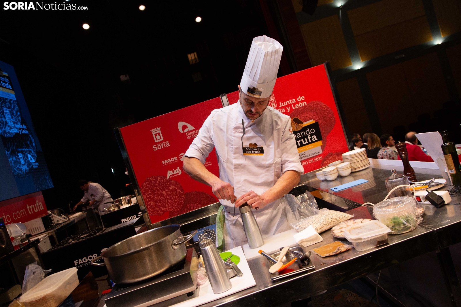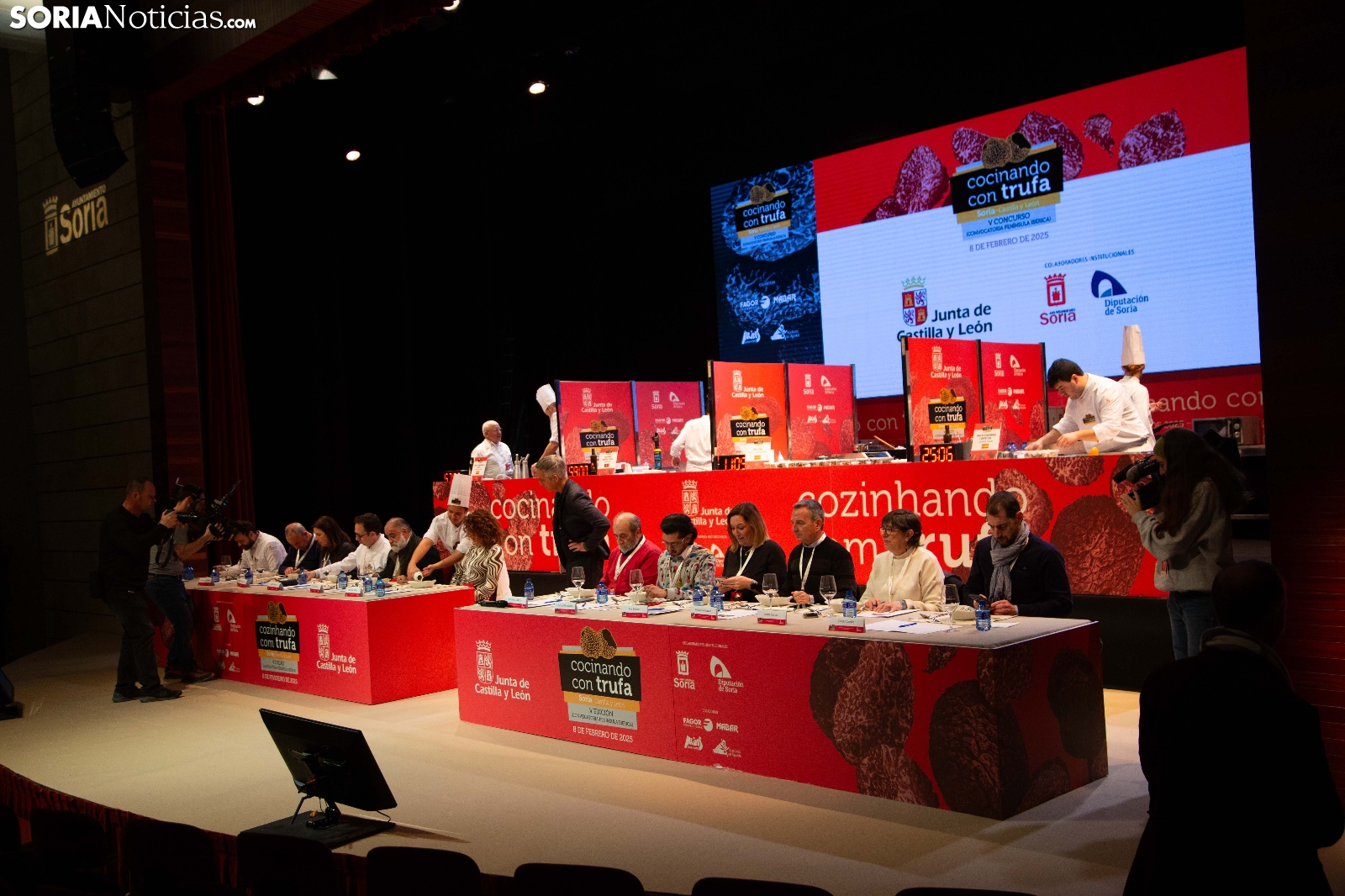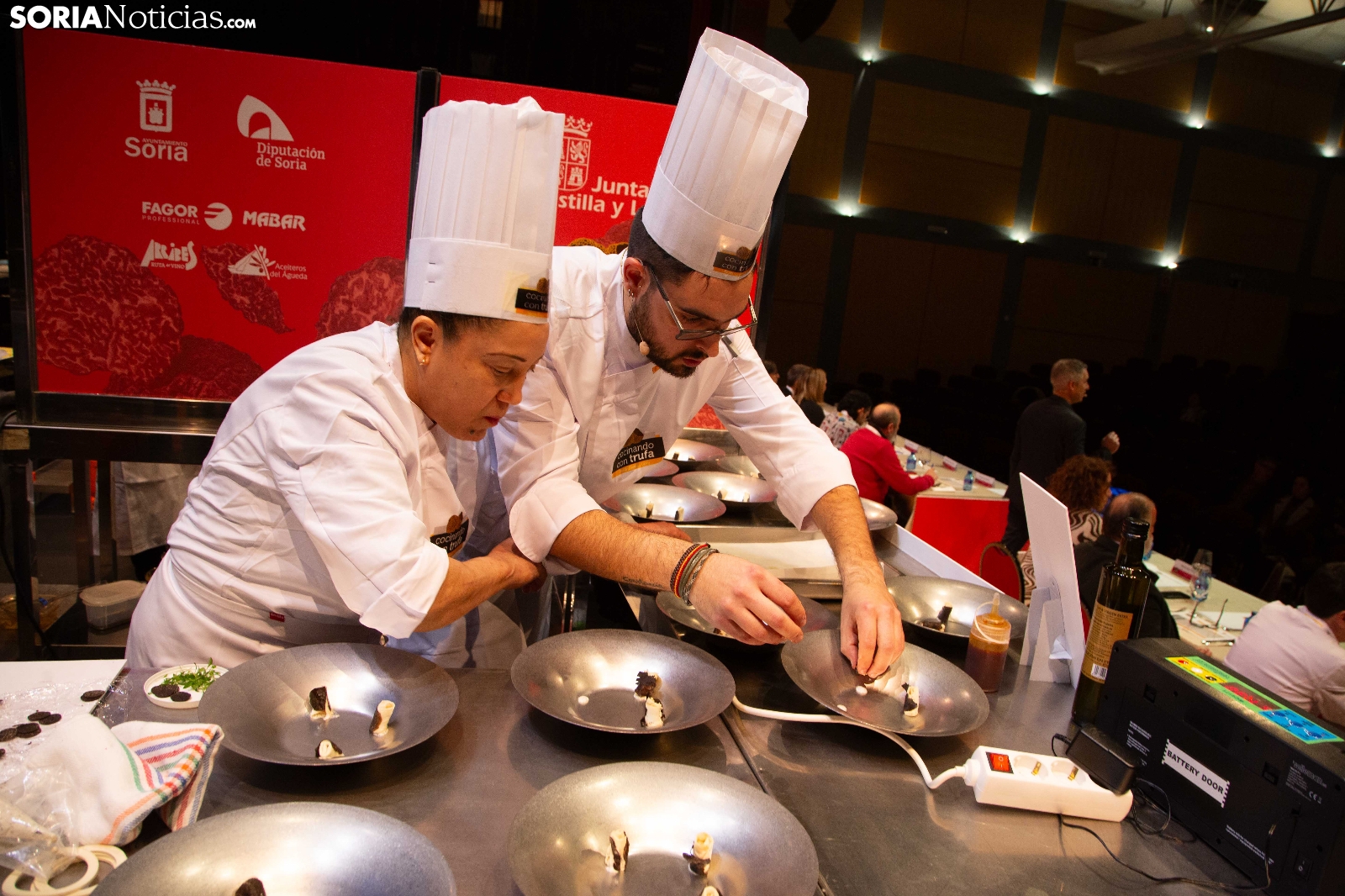 El Palacio de la Audiencia ha acogido durante la mañana y entrado el mediodía de este sábado la quinta edición del certamen culinario Cocinando con Trufa. Una cita que ha acogido a los mejores chefs que, apadrinados por ocho establecimientos del sector de la restauración en la provincia, han mostrado su habilidad en los fogones para cocinar la exquisitez que ofrece este hongo que crece en los montes sorianos. Diego Duarte, apadrinado por el restaurante Baluarte, de la capital soriana, ha sido el triunfador de esta cita, tras el veredicto del jurado. Reconocimientos también para Orianne Ribeiro (2º) y para Marcos Montabut (3º). La crónica, aquí.