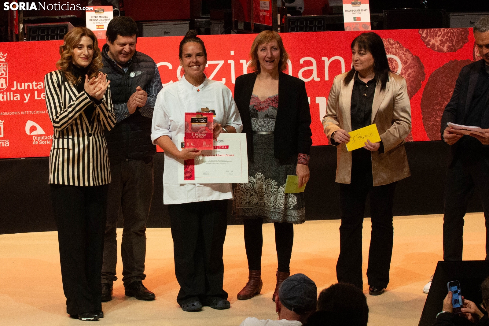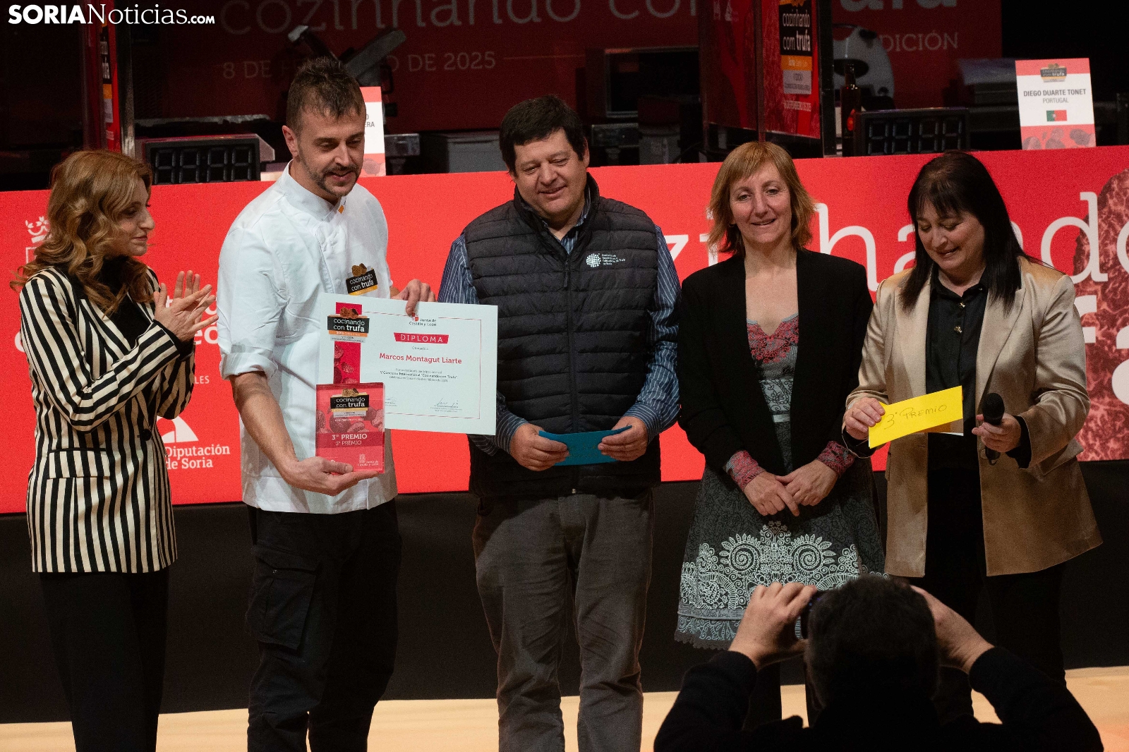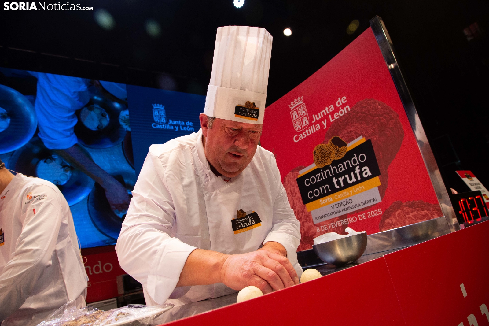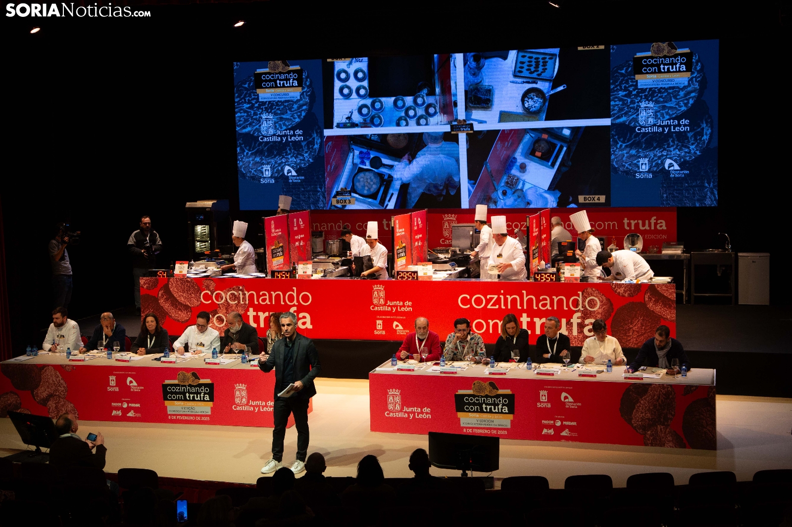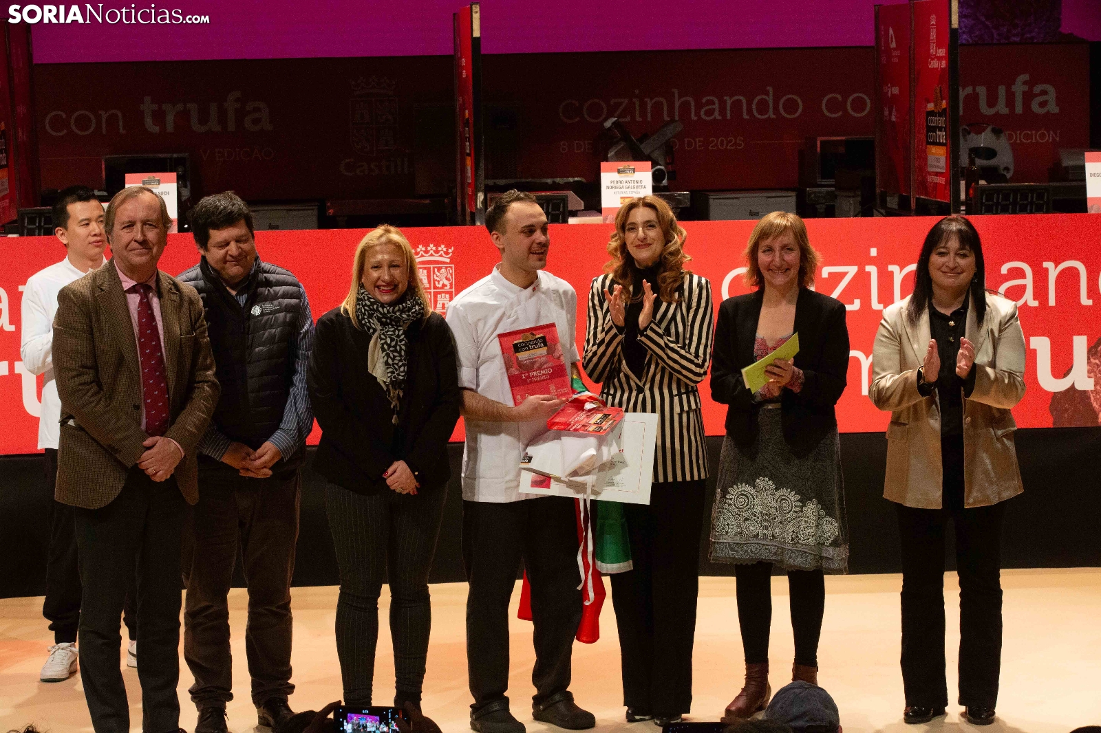 El Palacio de la Audiencia ha acogido durante la mañana y entrado el mediodía de este sábado la quinta edición del certamen culinario Cocinando con Trufa. Una cita que ha acogido a los mejores chefs que, apadrinados por ocho establecimientos del sector de la restauración en la provincia, han mostrado su habilidad en los fogones para cocinar la exquisitez que ofrece este hongo que crece en los montes sorianos. Diego Duarte, apadrinado por el restaurante Baluarte, de la capital soriana, ha sido el triunfador de esta cita, tras el veredicto del jurado. Reconocimientos también para Orianne Ribeiro (2º) y para Marcos Montabut (3º). La crónica, aquí.